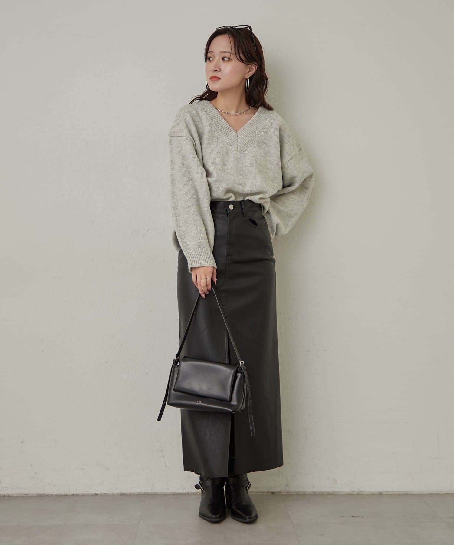 ・ボリューム感のあるデザインのため、細身のスカート合わせで女性らしいスタイリングに。