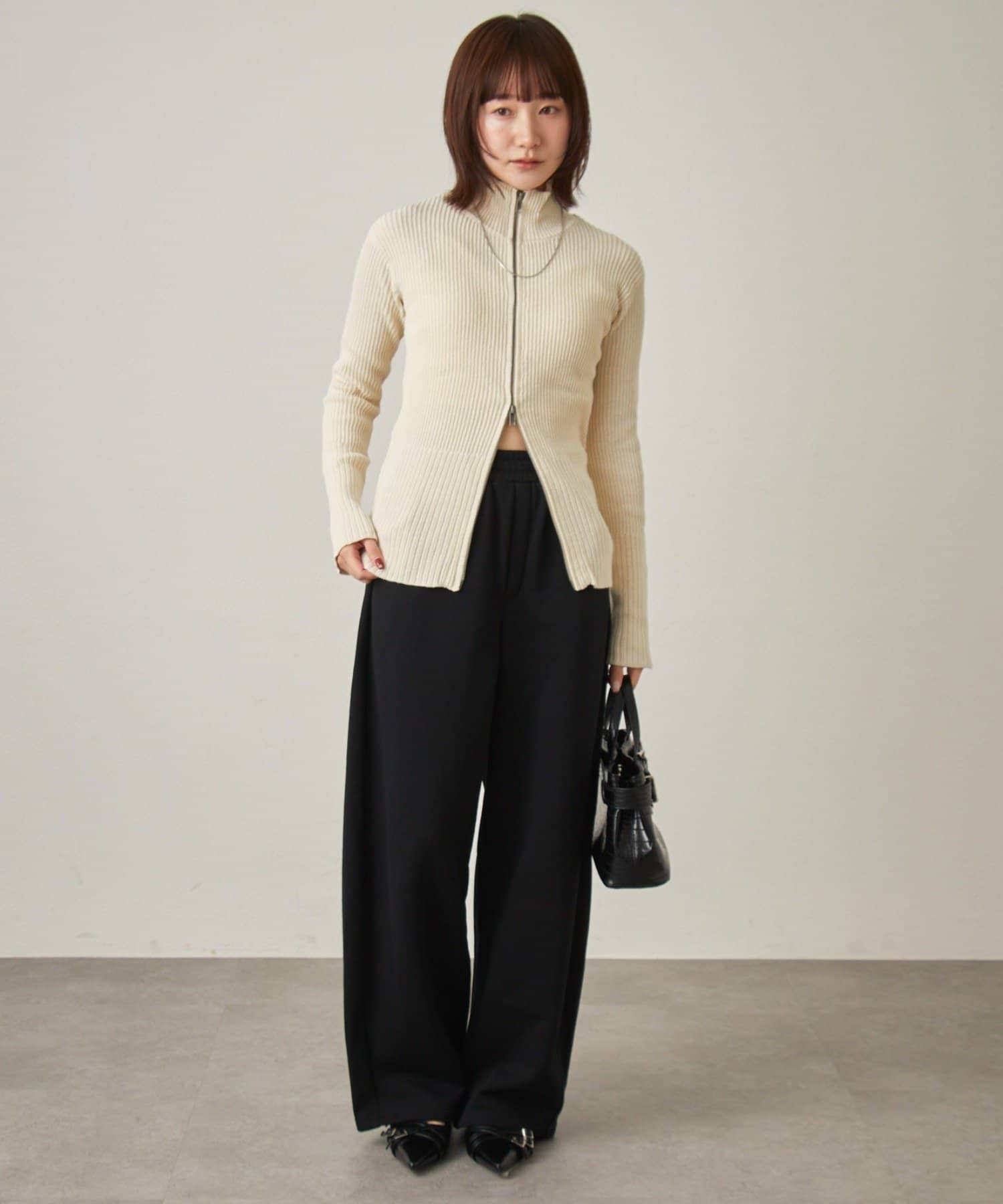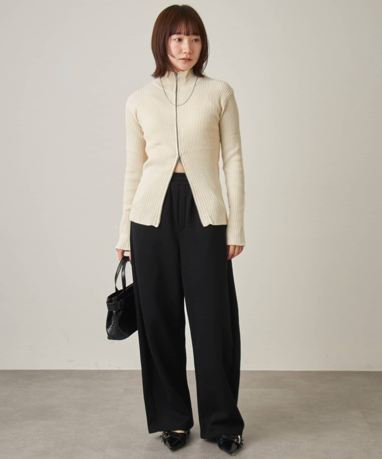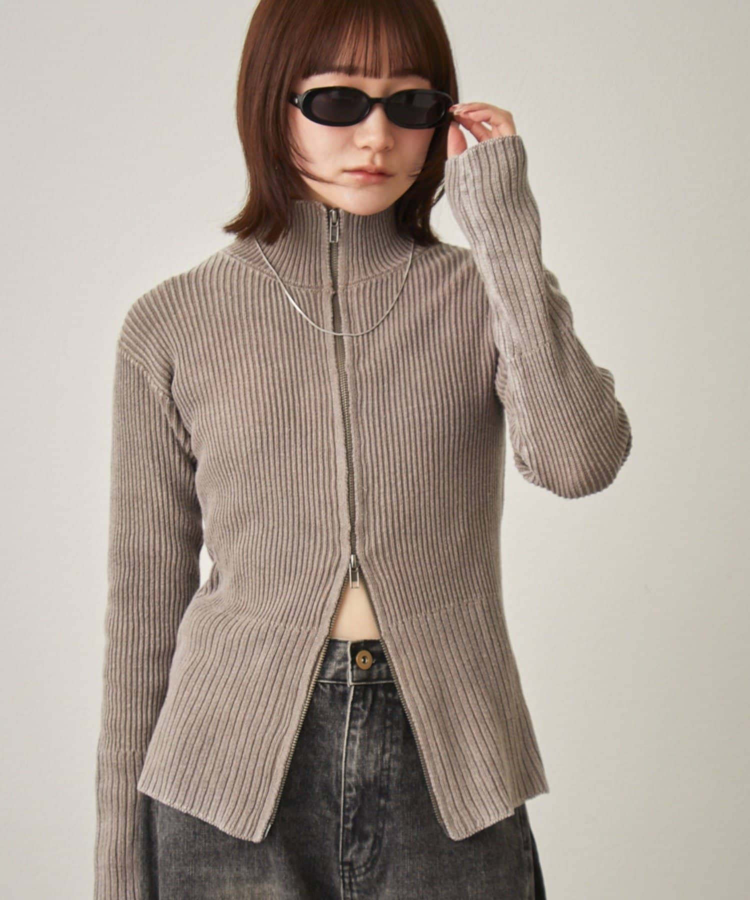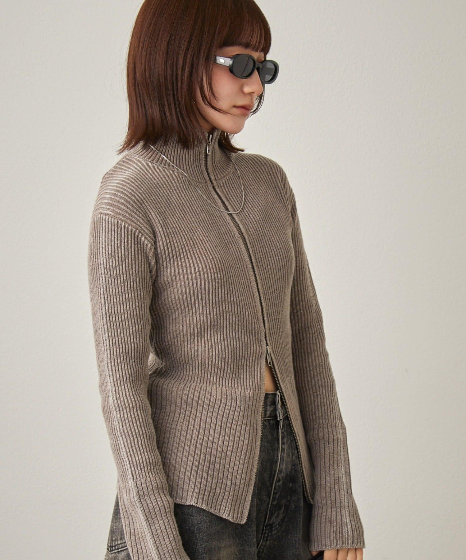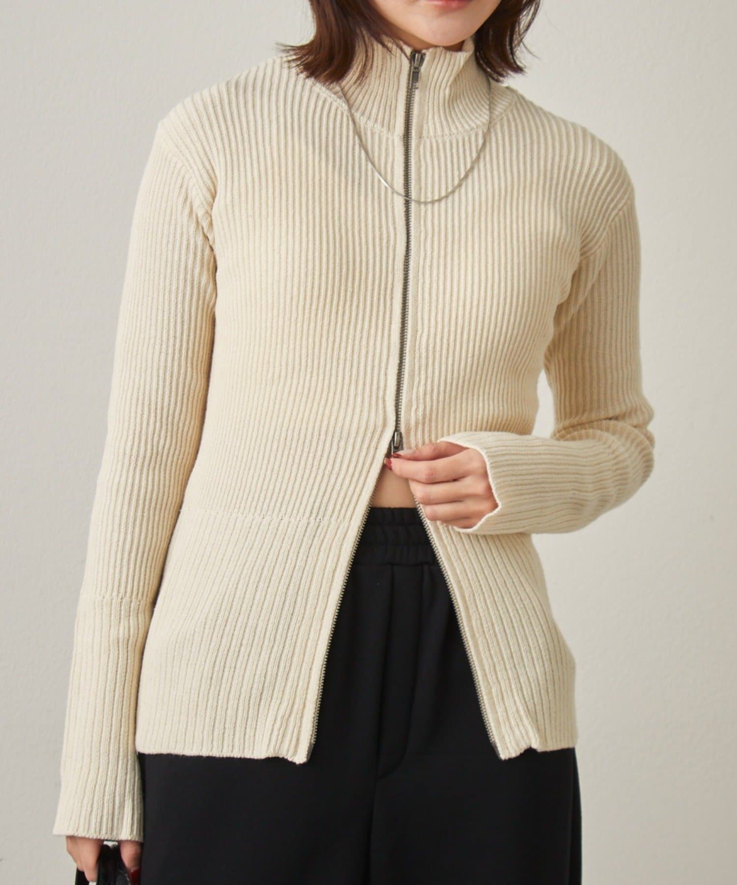 [mline]ダブルZIPリブカーディガン