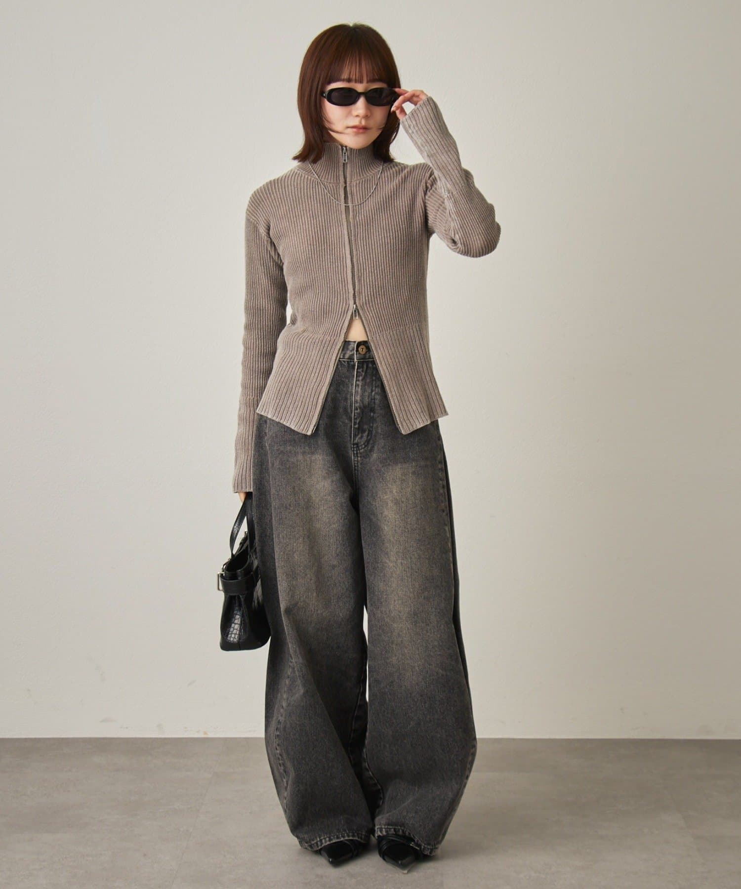 羽織にも使える◎ダブルジップリブカーデ