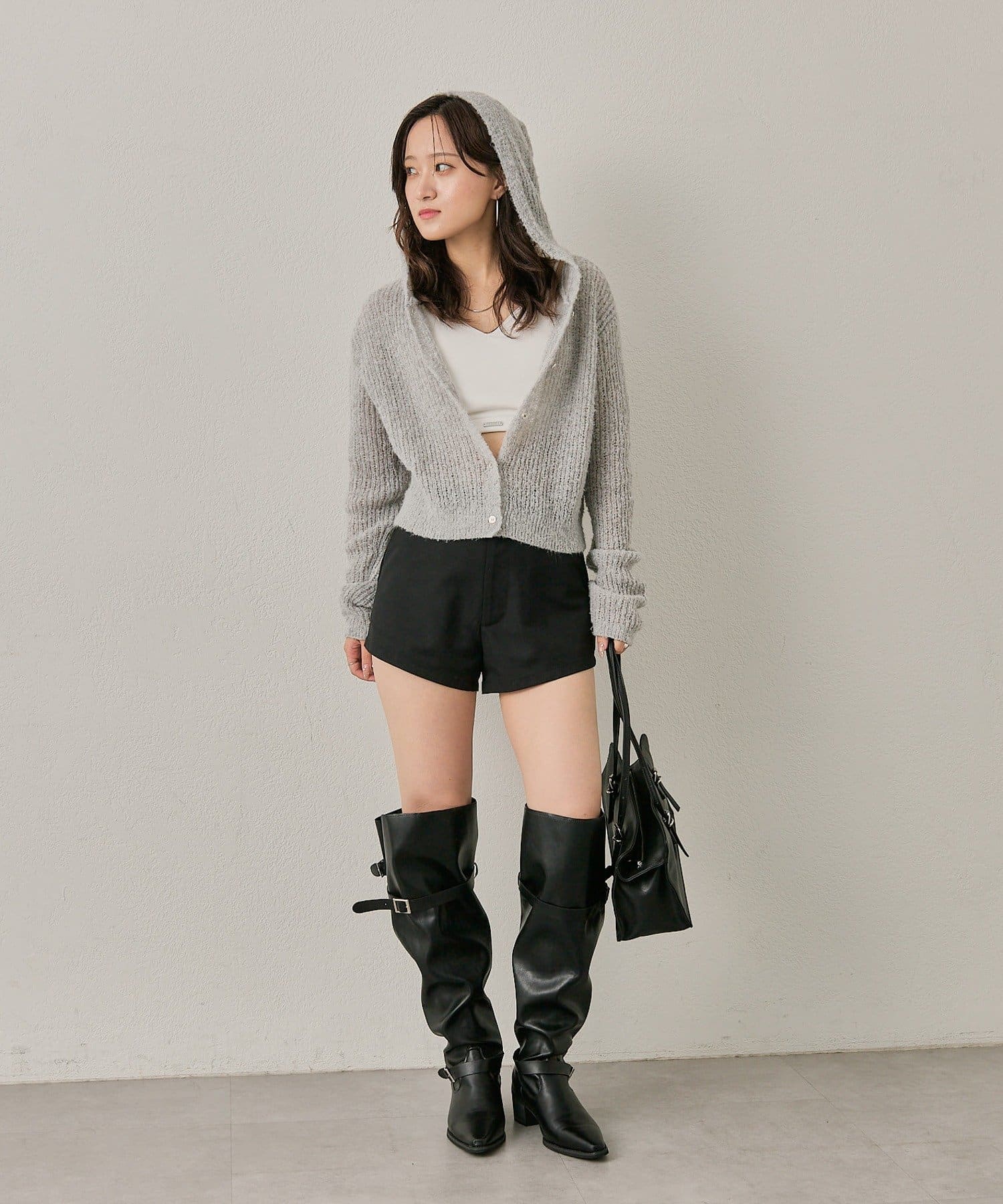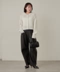 ・パンツ合わせに、ボタンを外してウエストラインを見せると抜け感◎