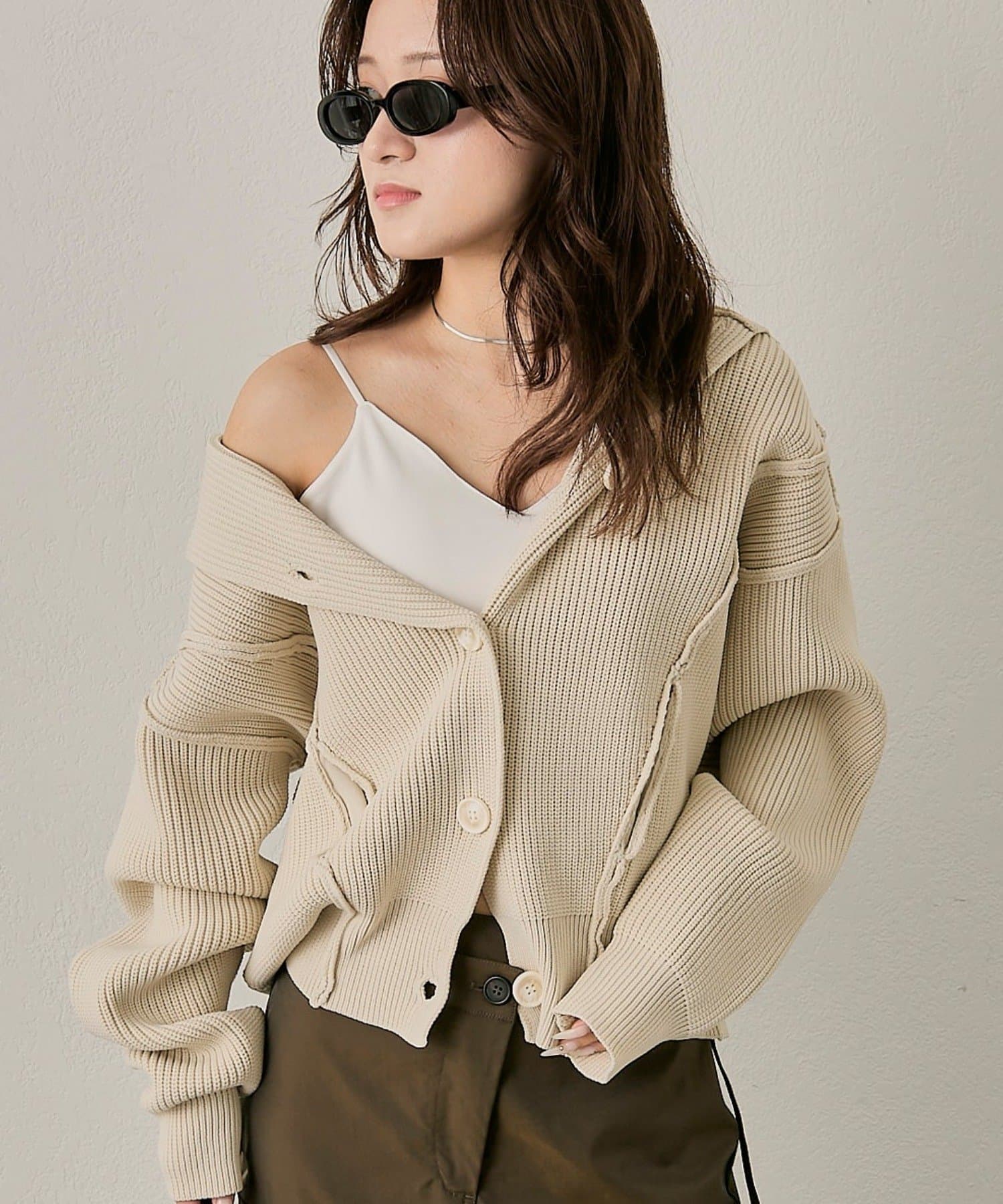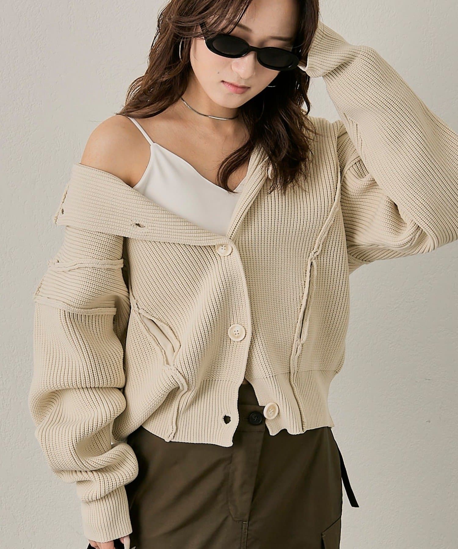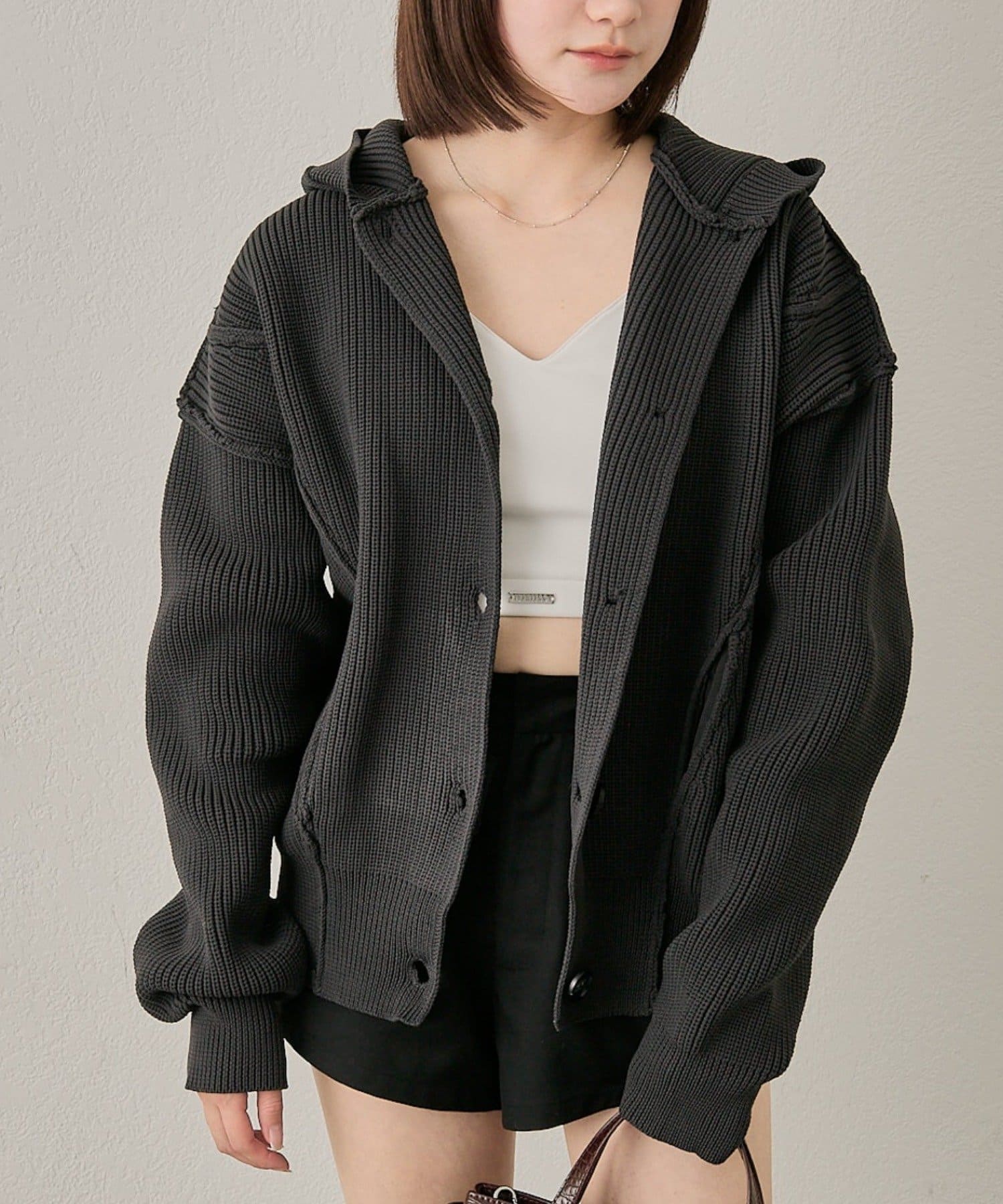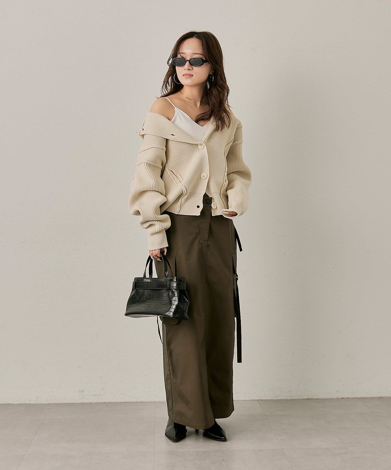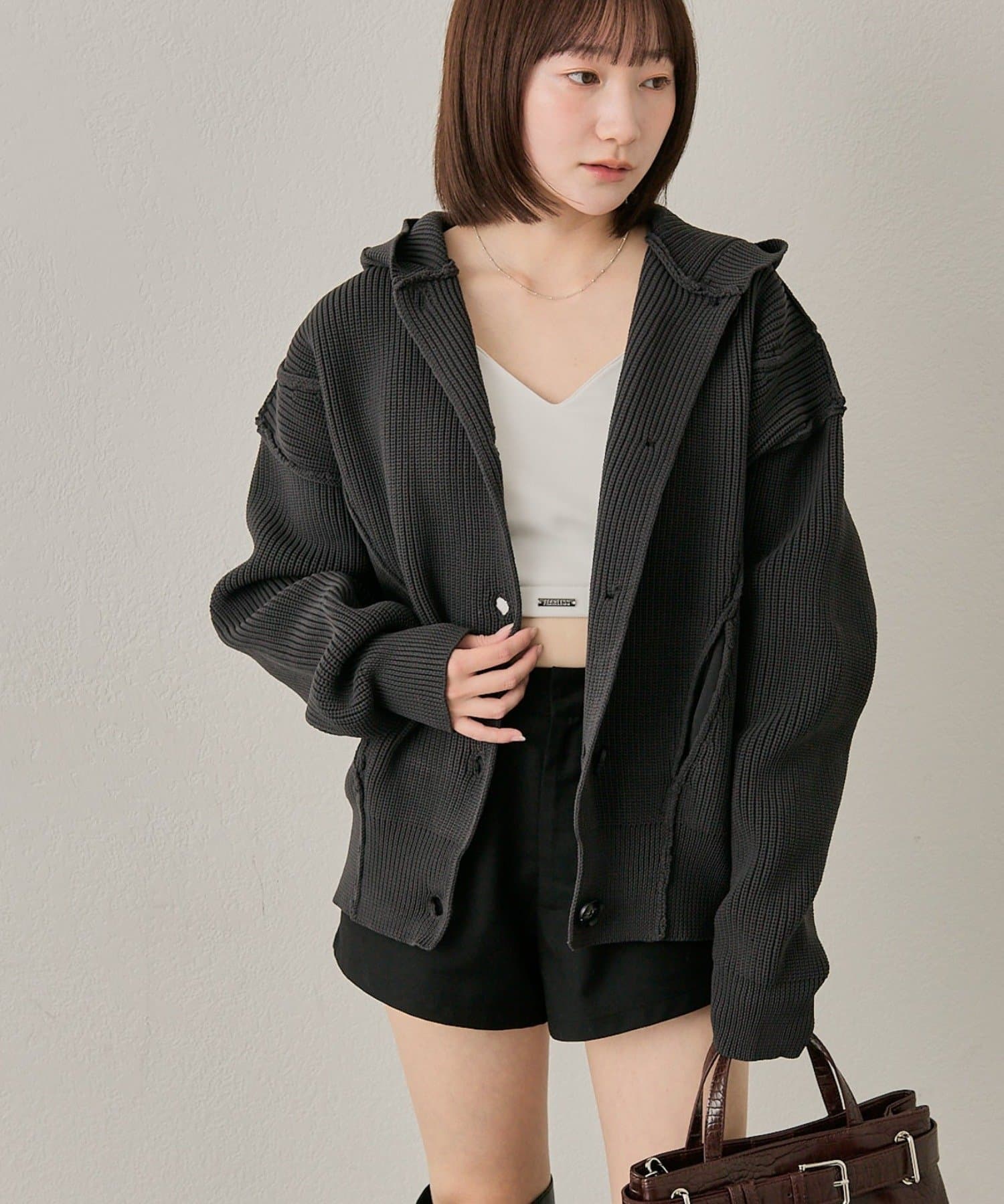 ・ショートパンツやロングブーツにゆるっと合わせたスタイリングがおすすめ。
