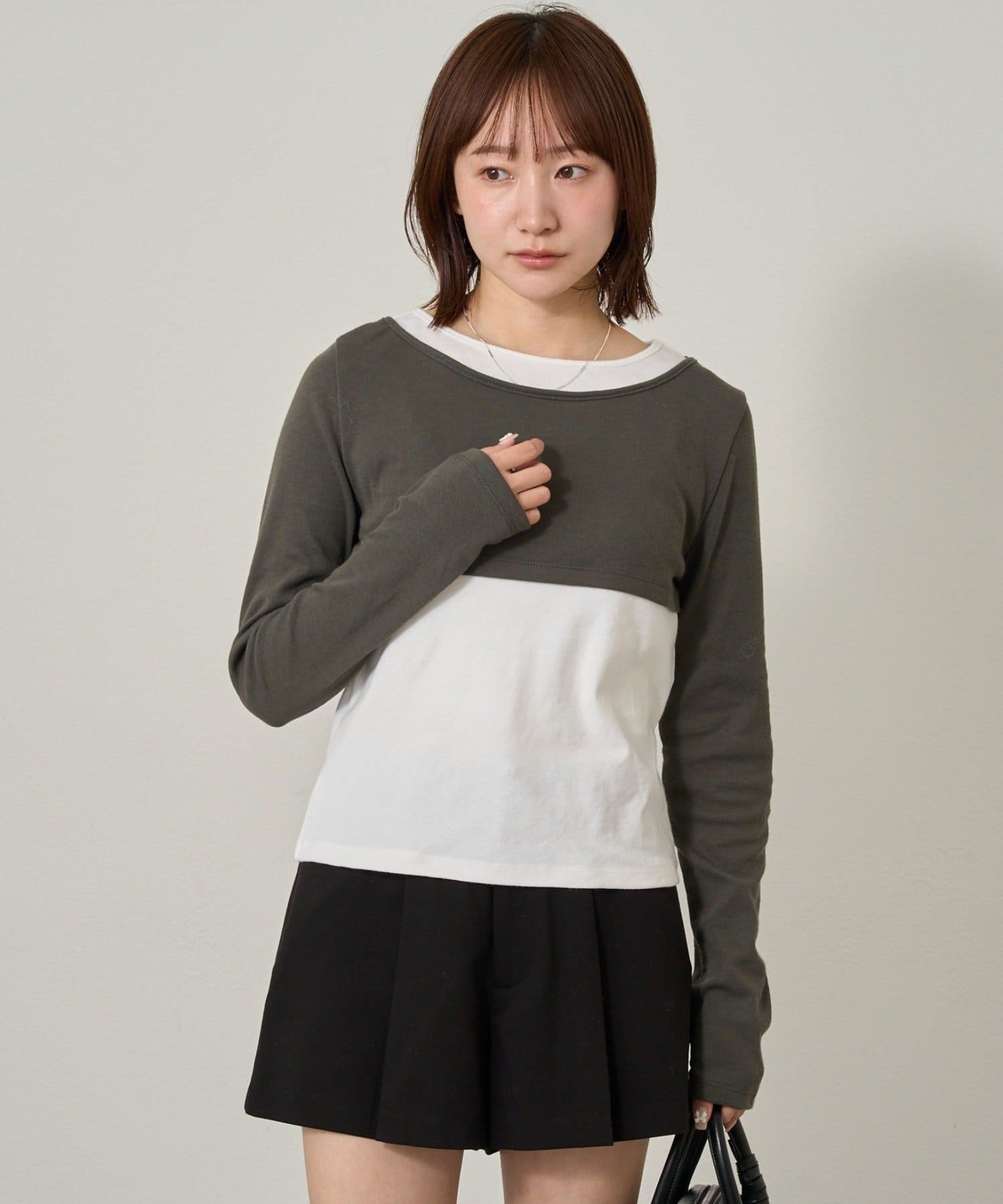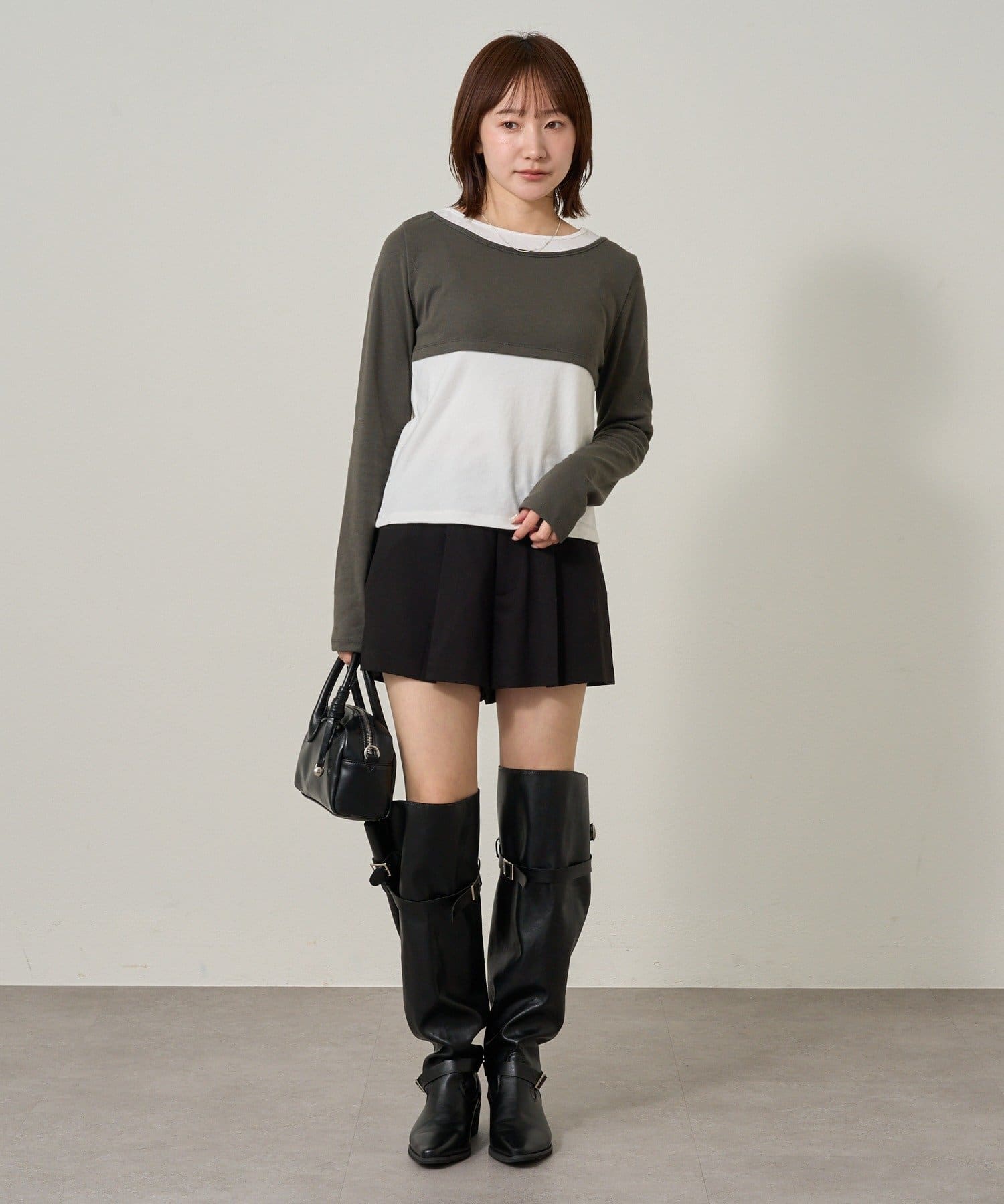 ・ショート丈トップスとのレイヤード風でスタイルアップが叶います◎