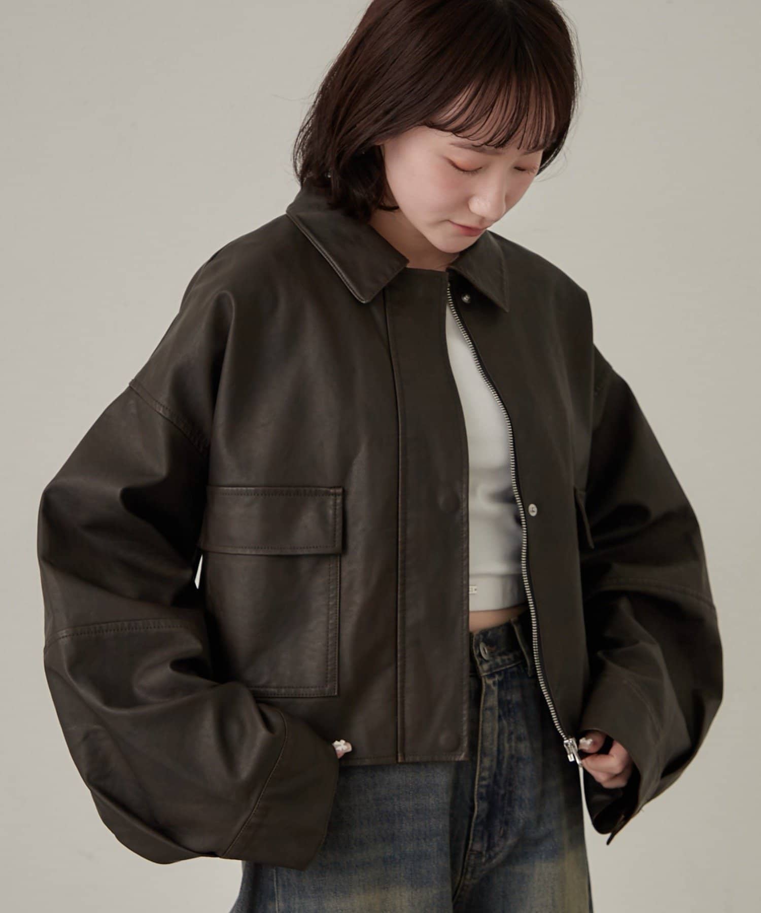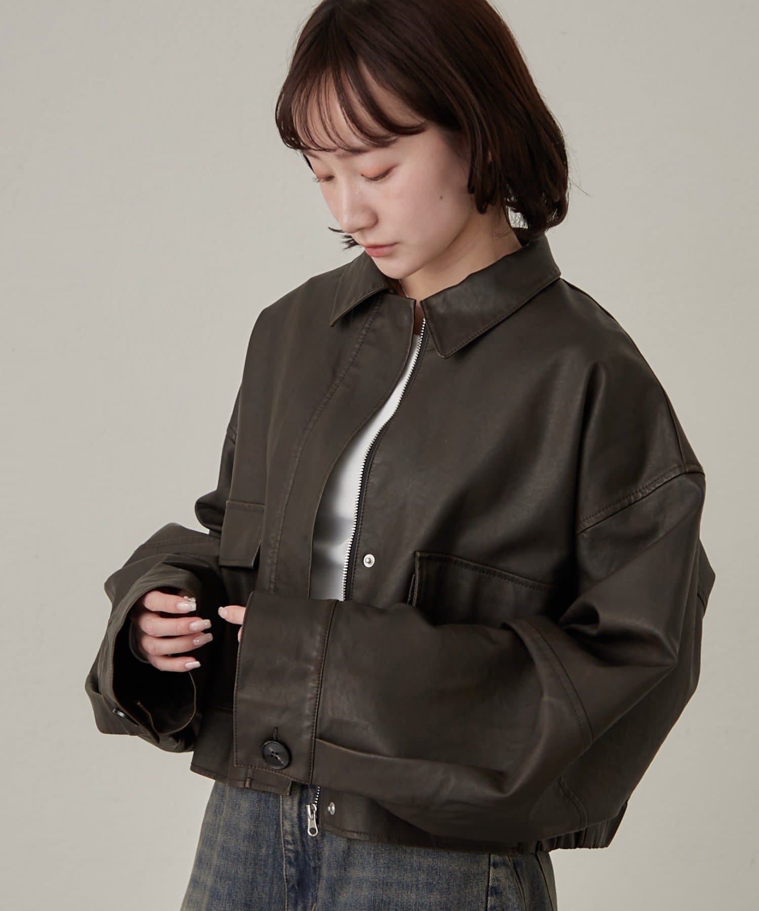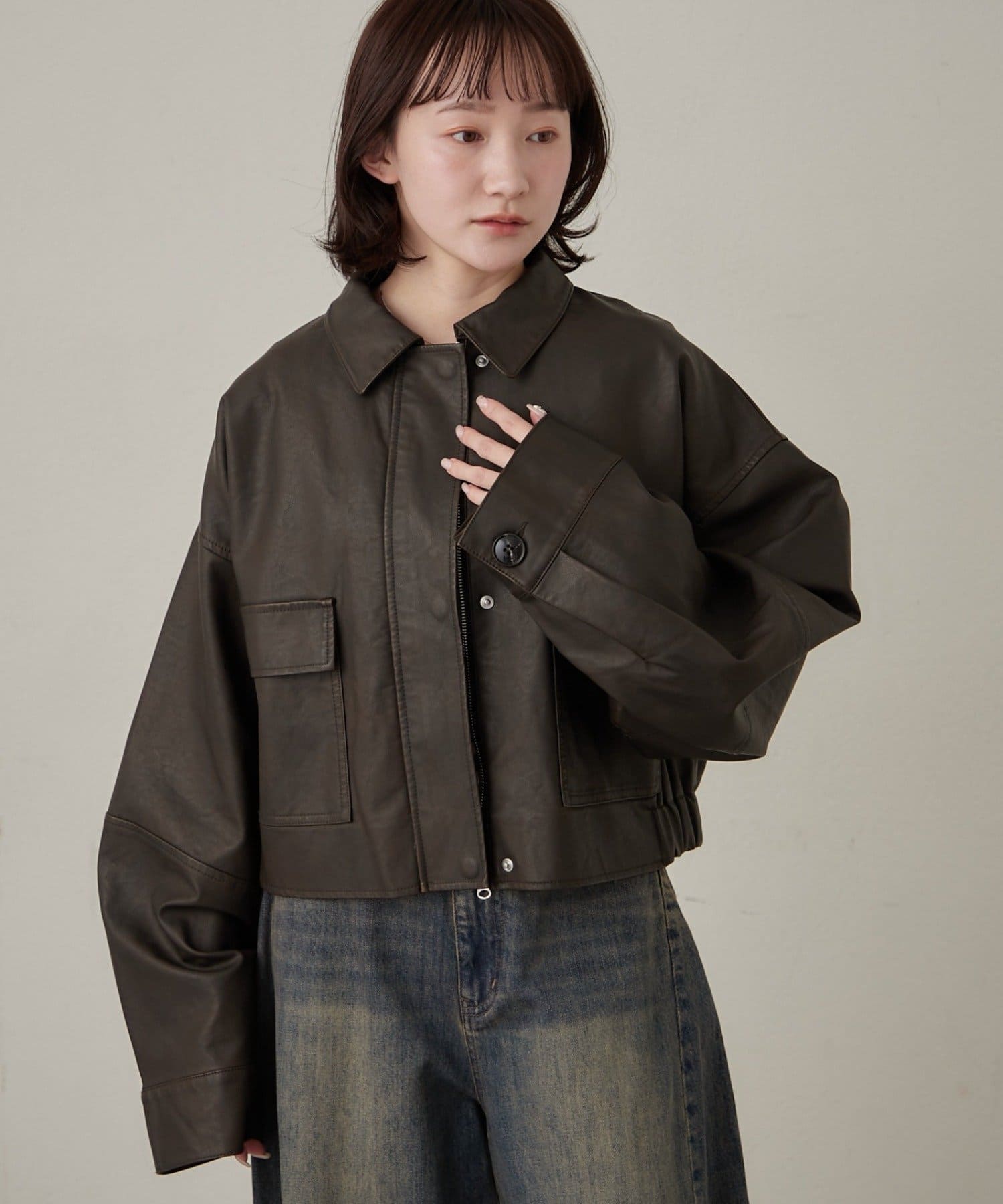 ショート丈でスタイルアップ◎さっと羽織れるショートレザージャケット