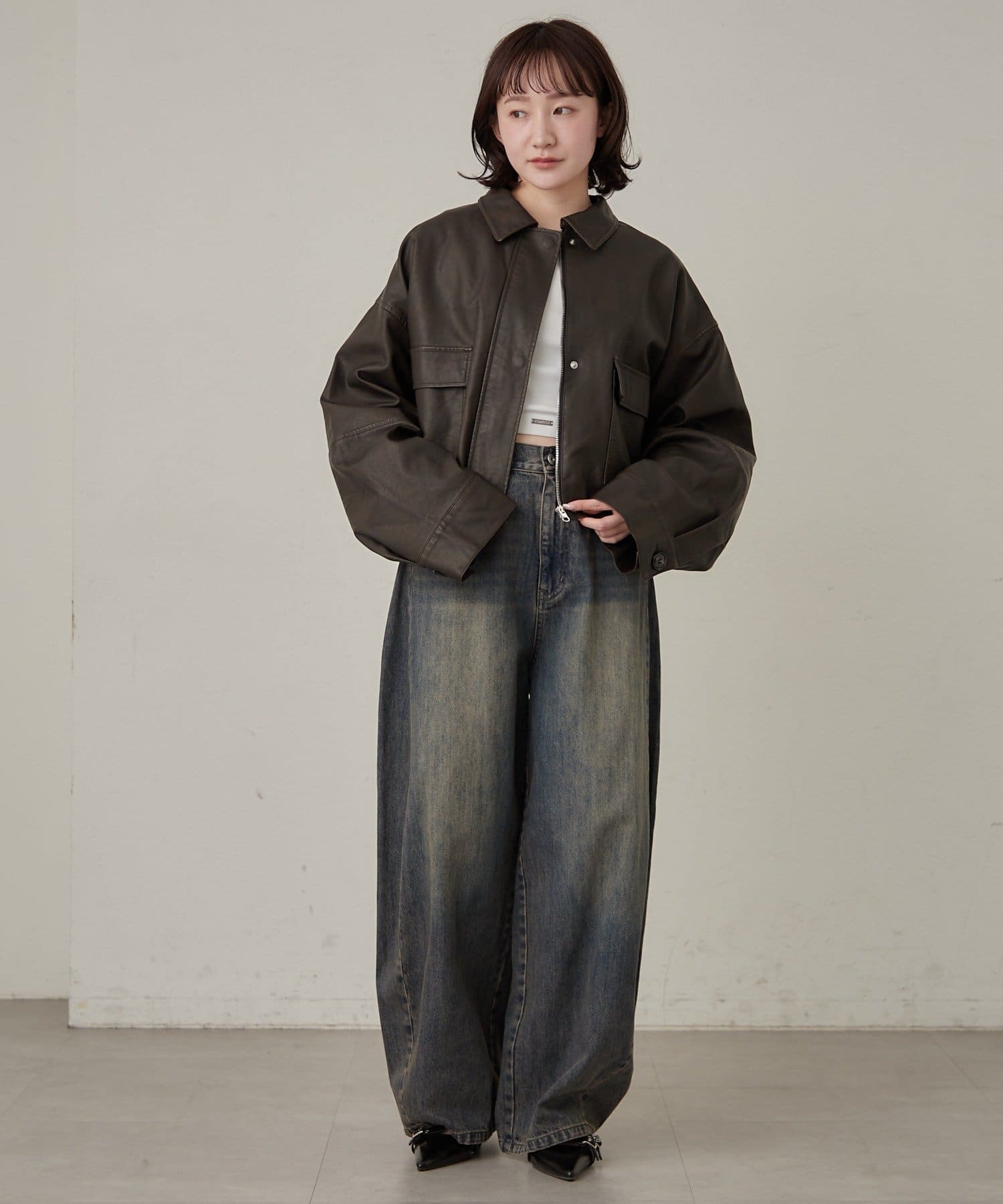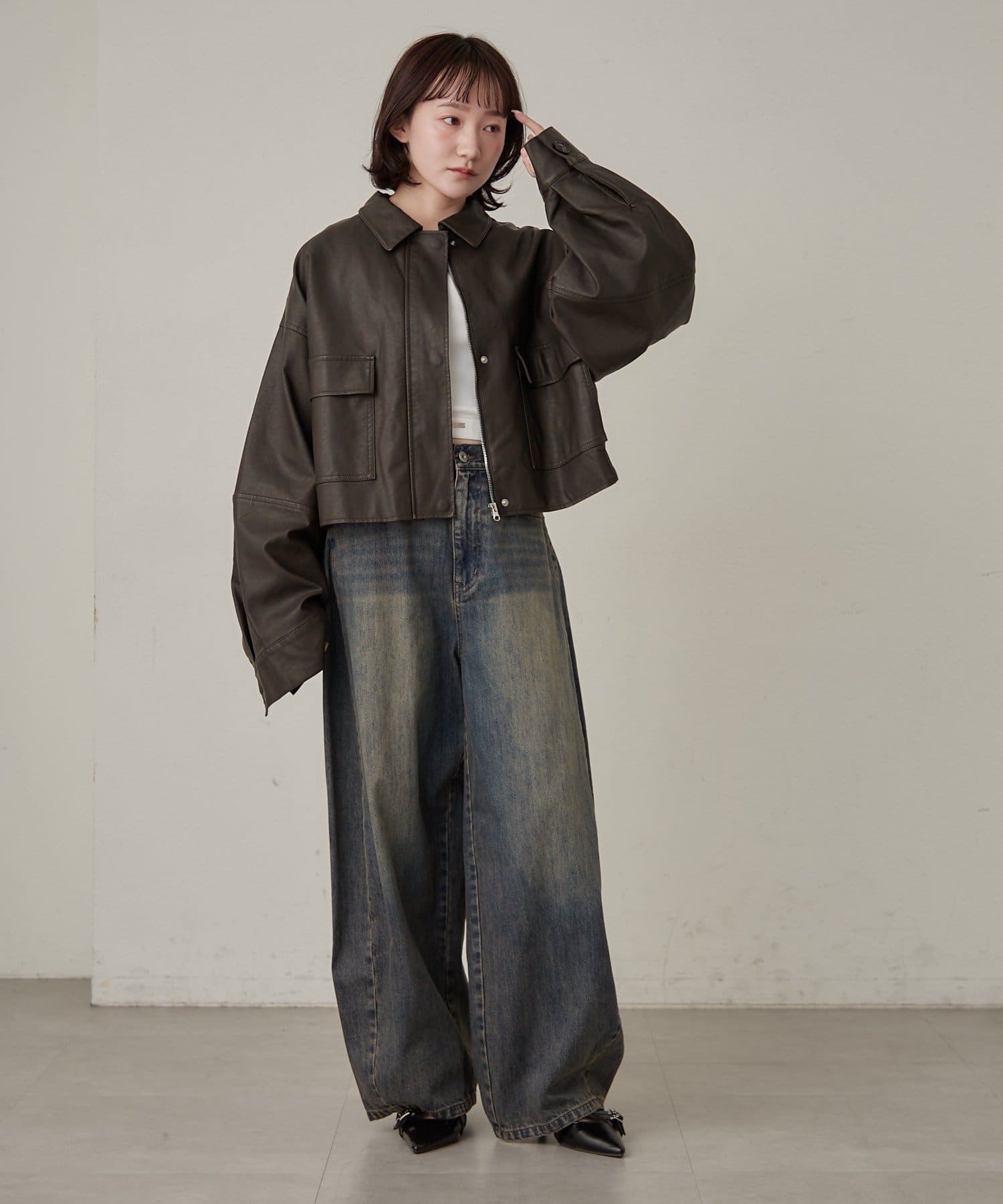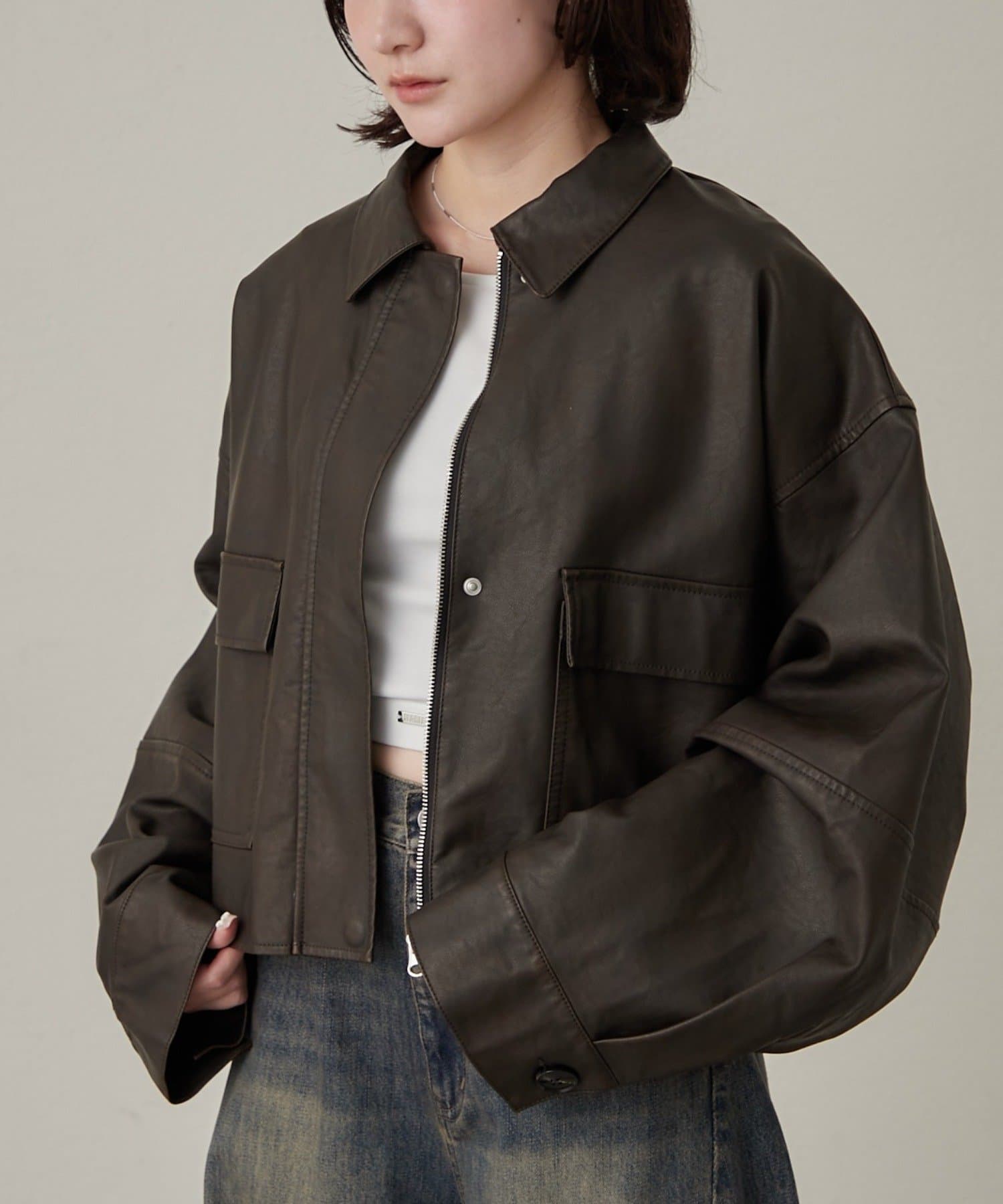ショート丈でスタイルアップ◎さっと羽織れるショートレザージャケット