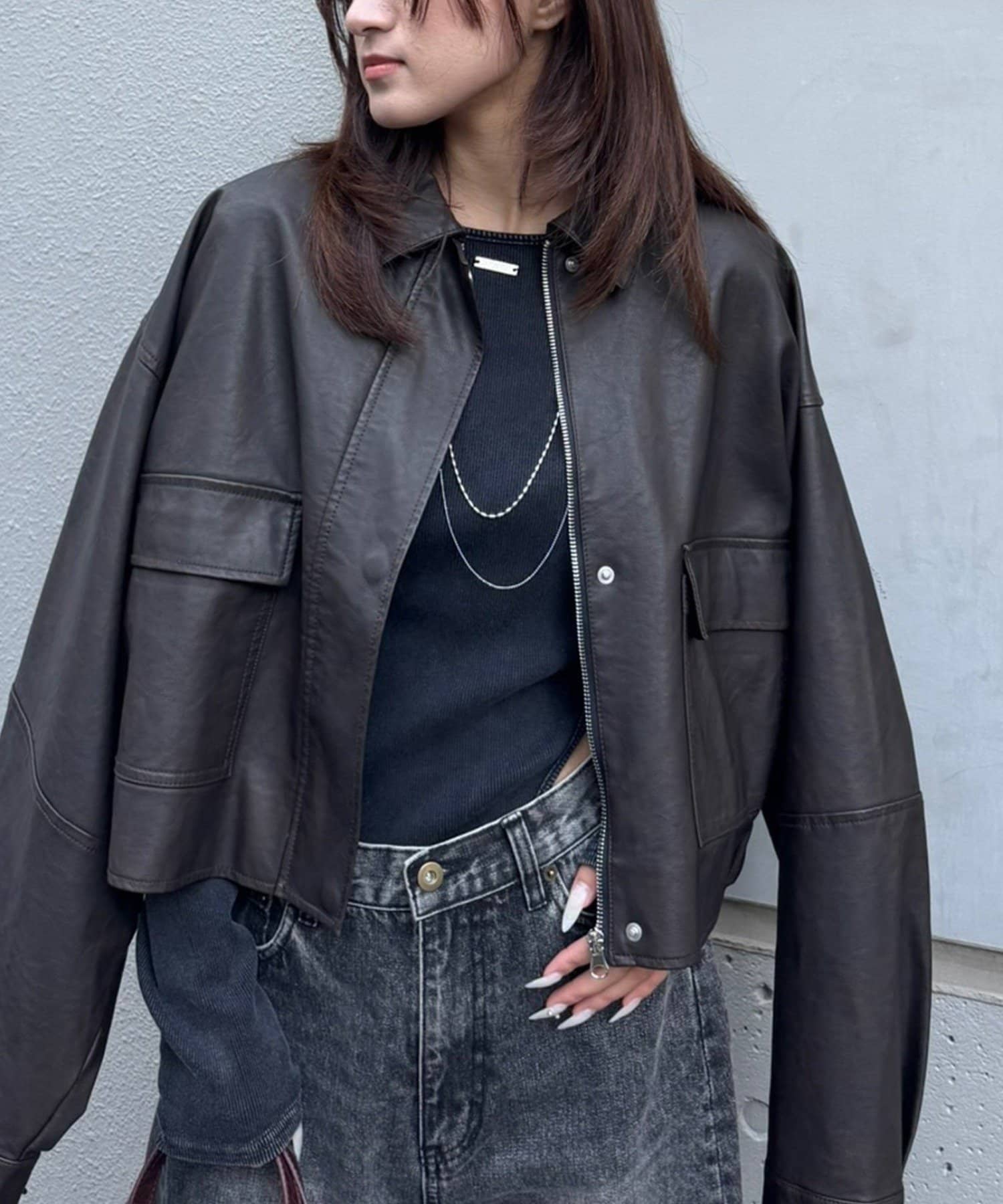 ショート丈でスタイルアップ◎さっと羽織れるショートレザージャケット