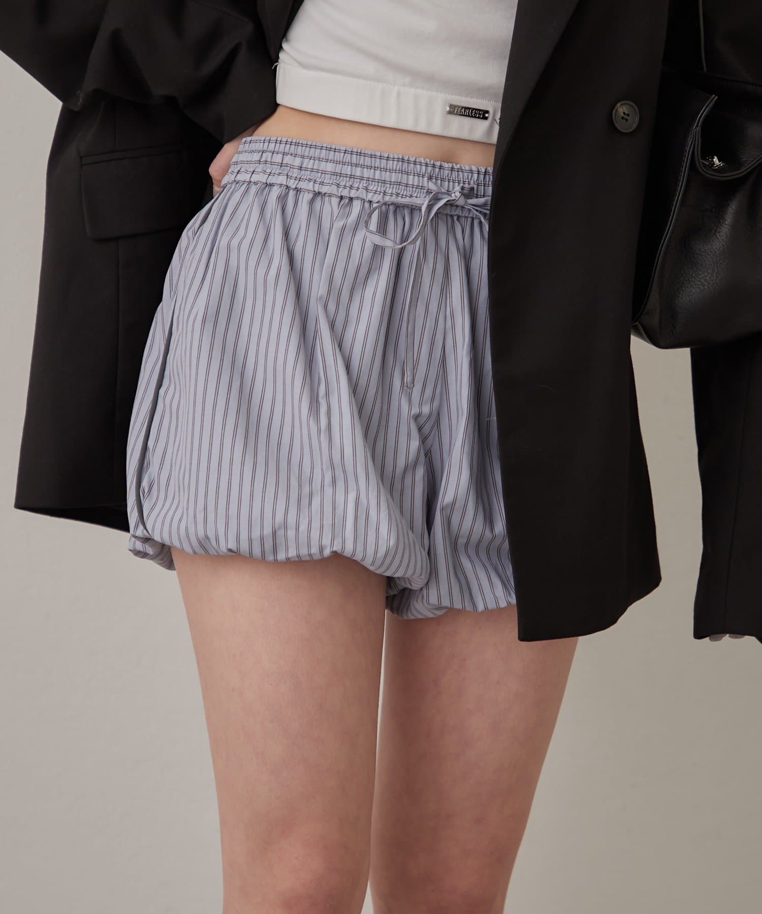 ・ストライプ+バルーンシルエットなのでトップスはコンパクトでシンプルなものがおすすめ◎