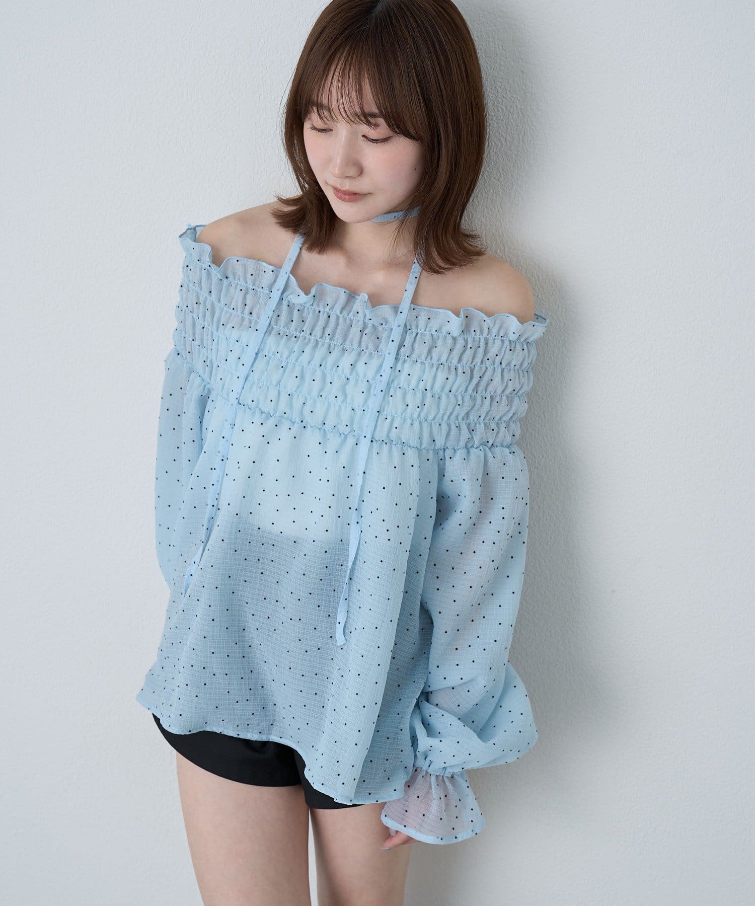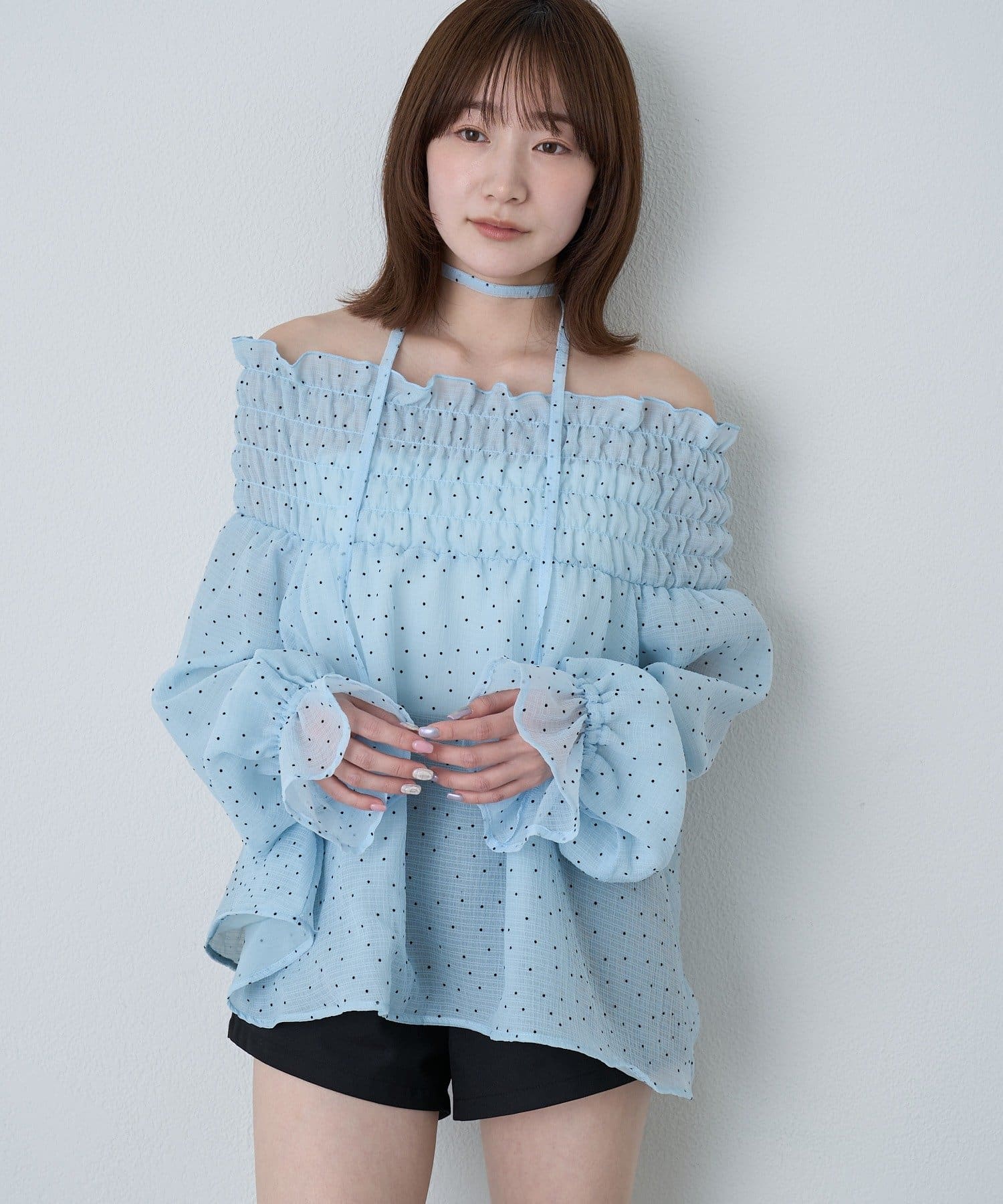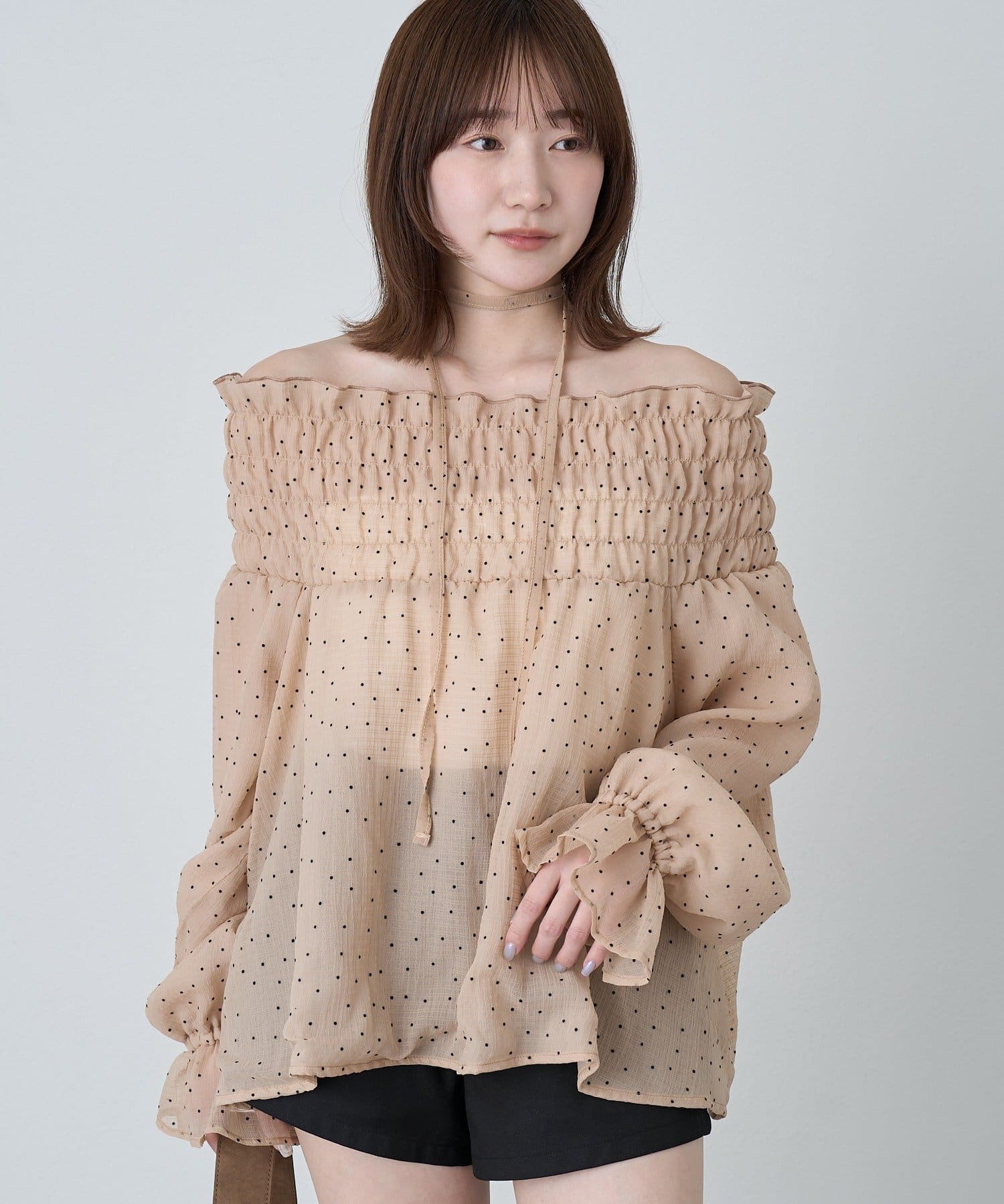 [mline]ドットオフショル チョーカーブラウス