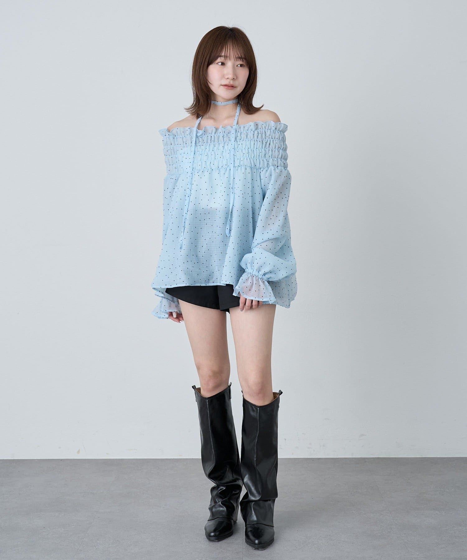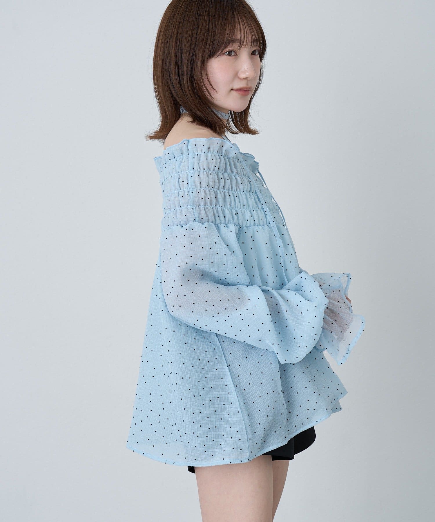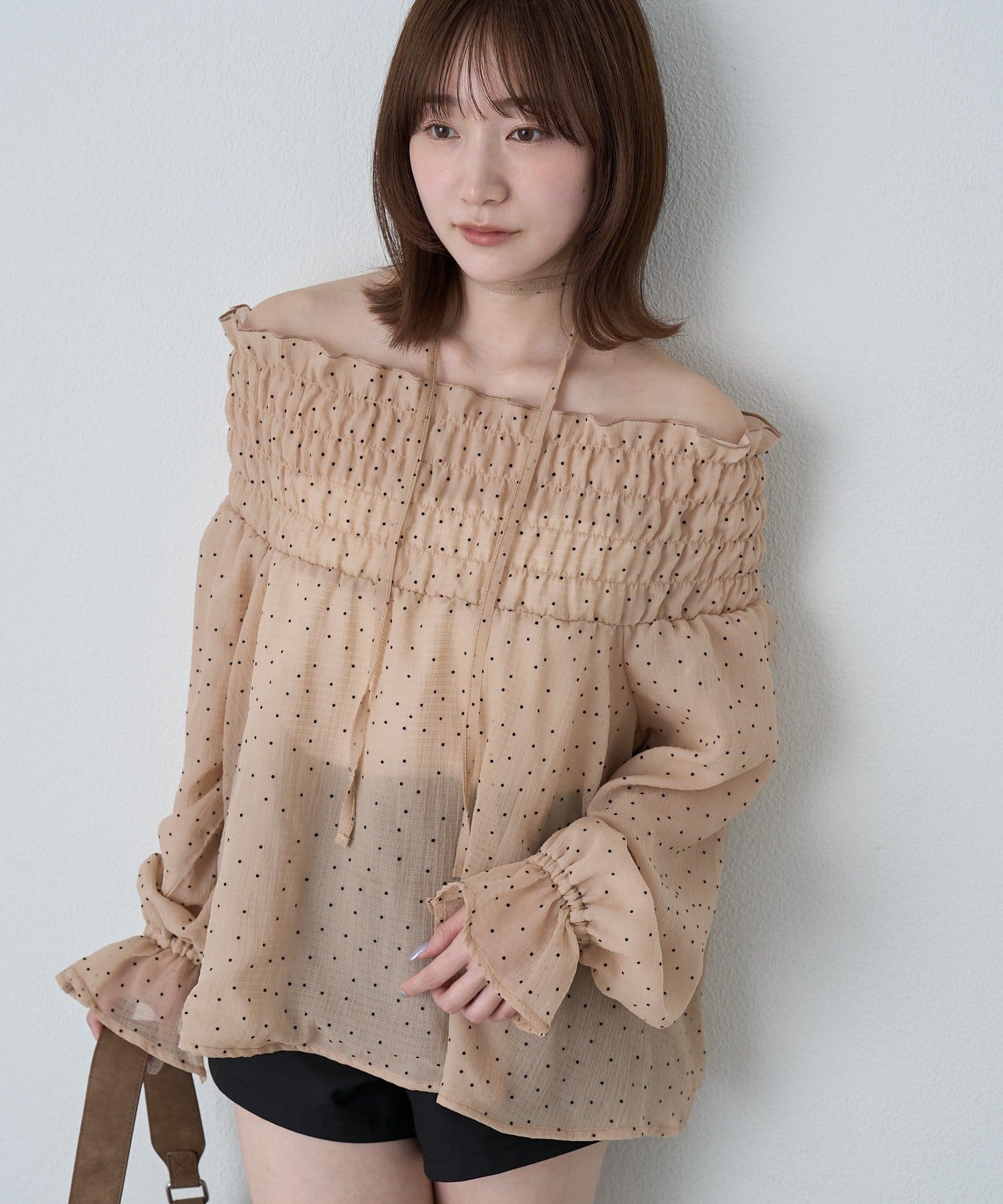 [mline]ドットオフショル チョーカーブラウス