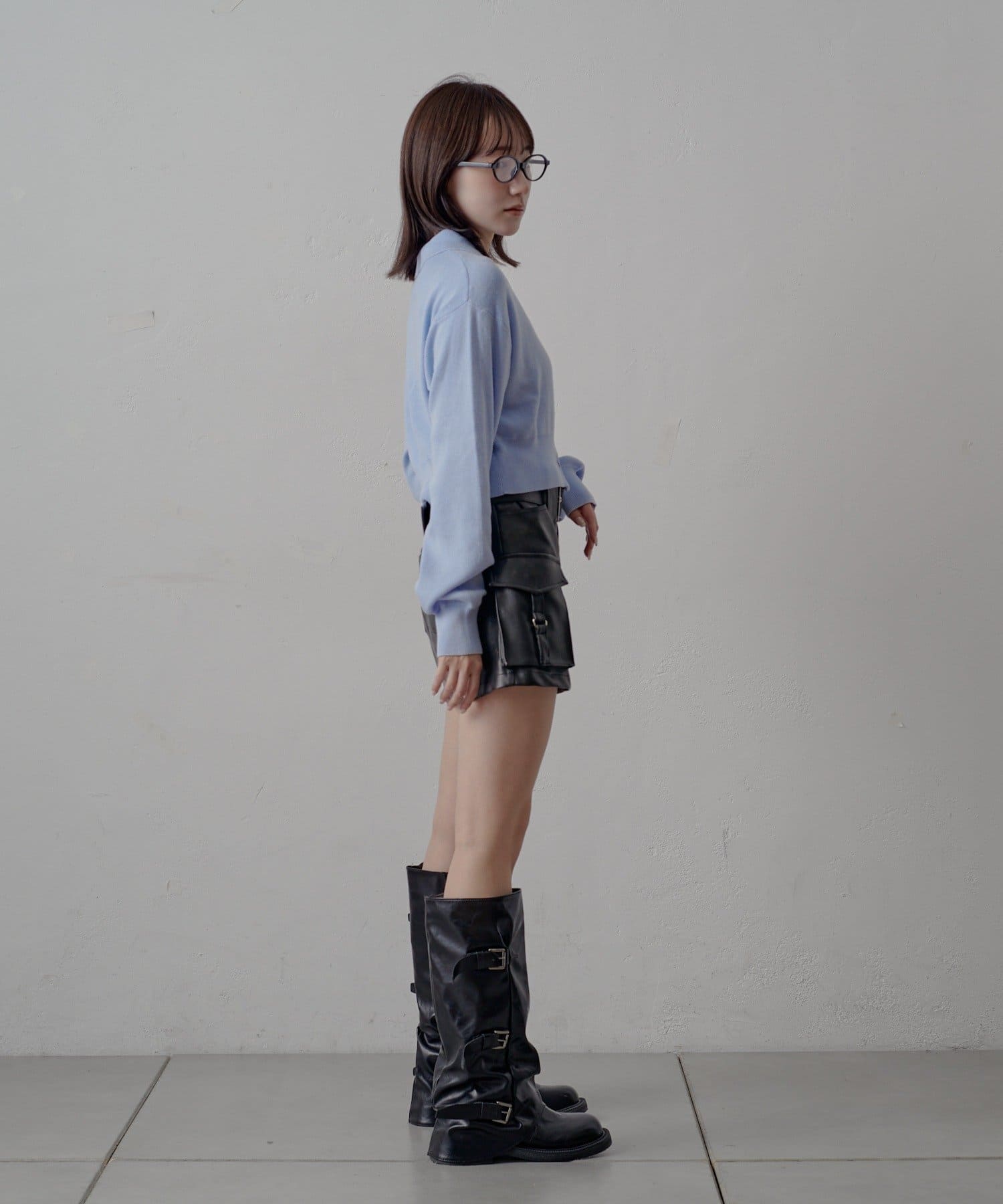 ・ハイウエストのボトムスと相性抜群。スタイルアップ効果で、脚長に見せてくれます〇