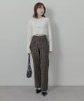 ・コンパクトなトップス合わせで、脚長シルエットが強調されます。