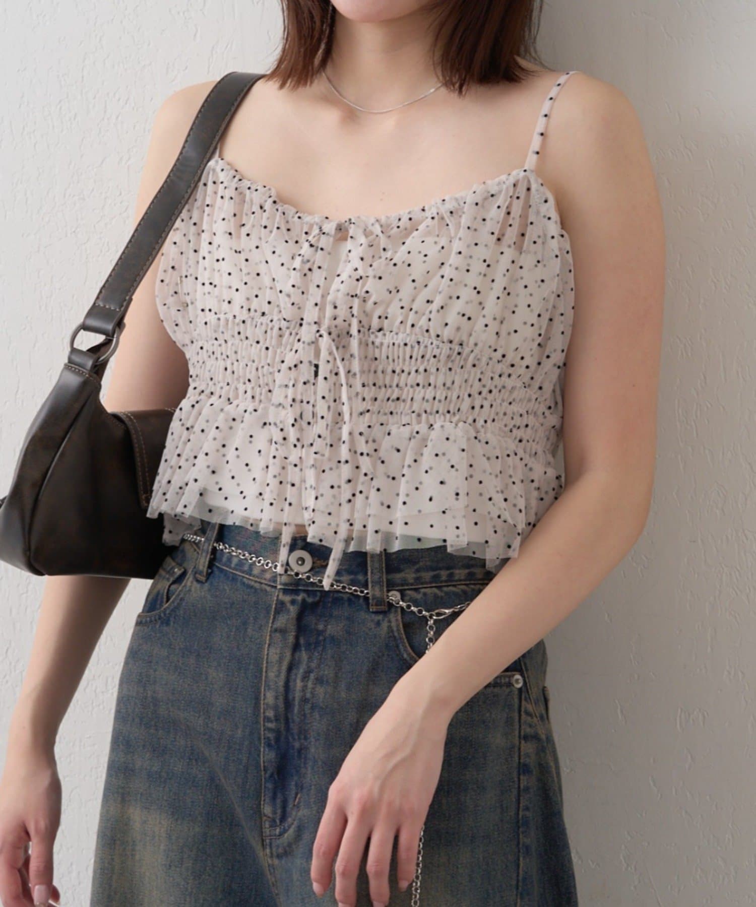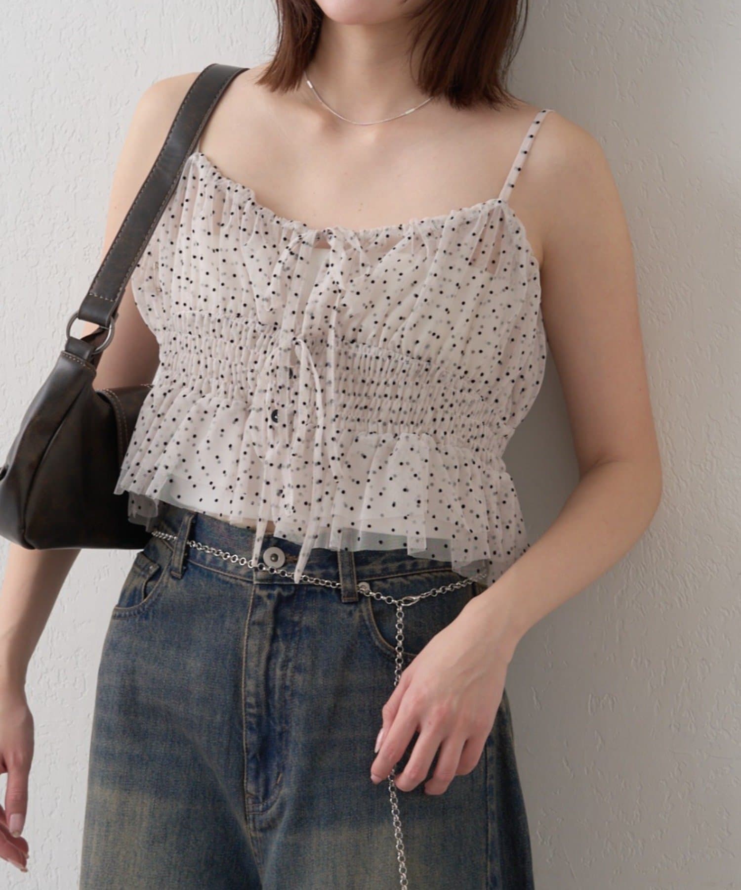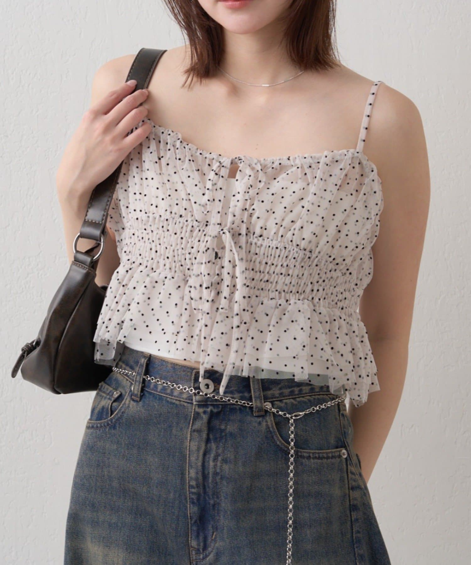 トレンド感あるドット柄やレオパード柄が目を惹く◎1枚で映えキャミ!