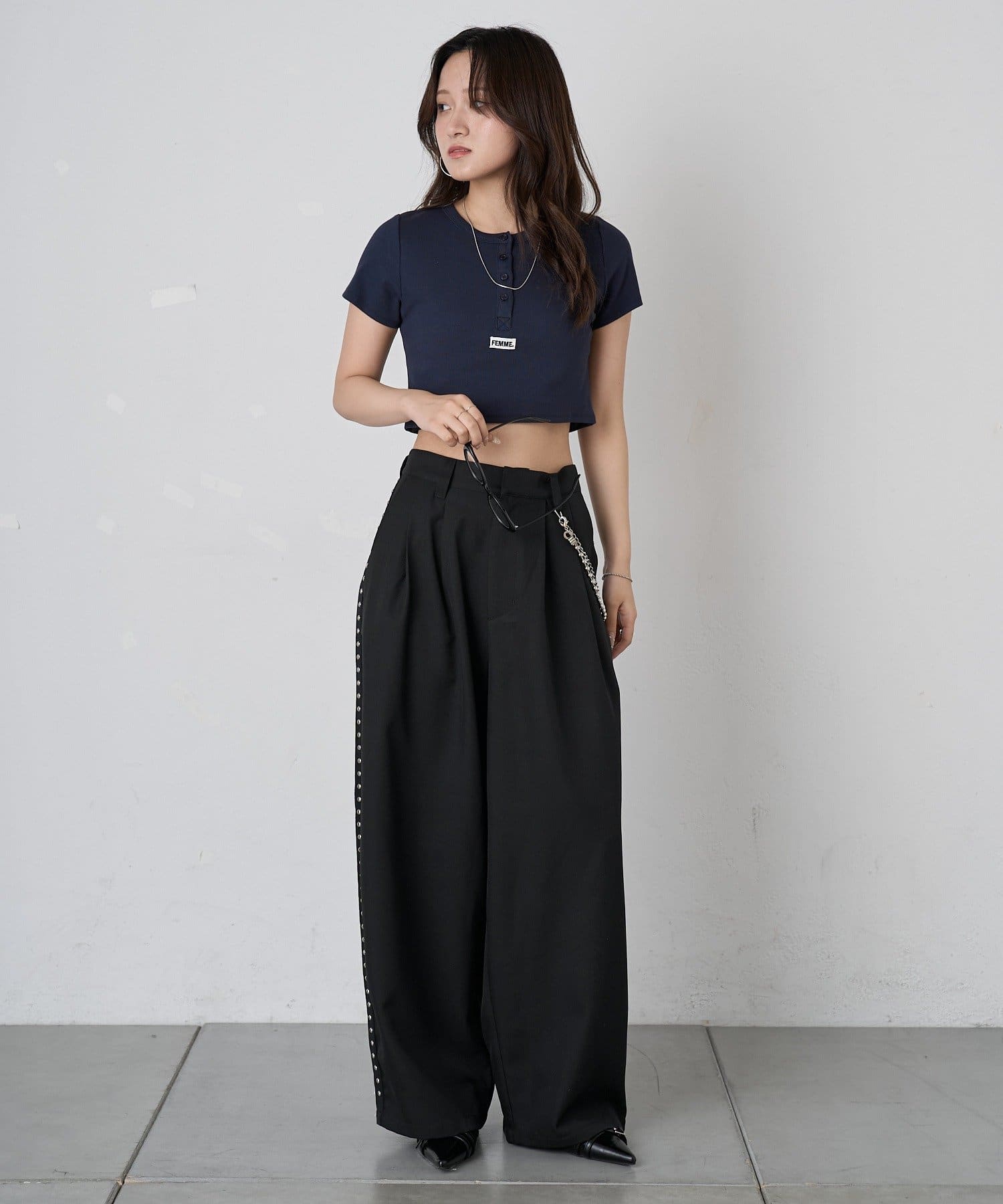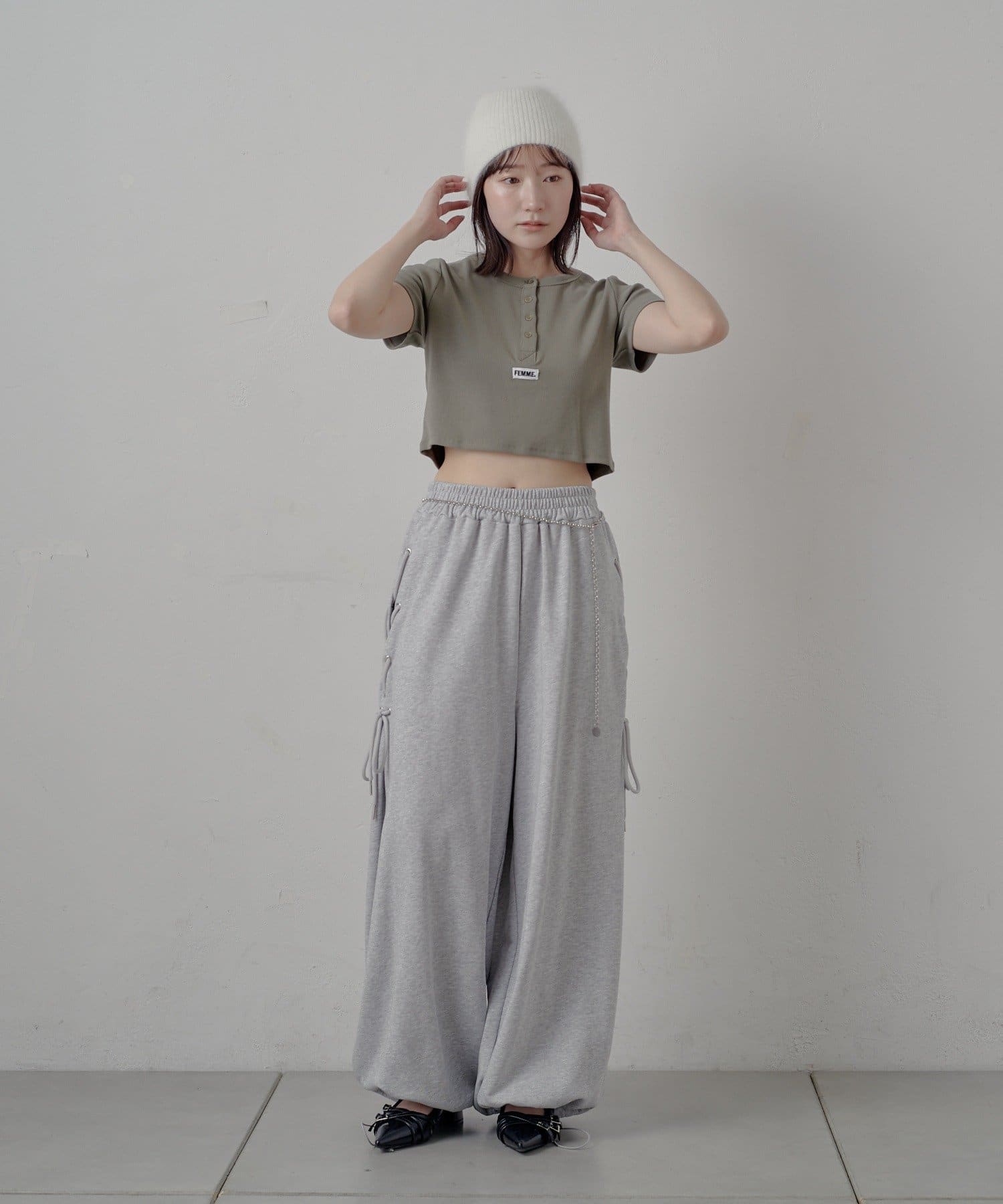 ・コンパクトなアイテムのため、ボリュームのあるカーゴパンツやデニムとの相性◎カジュアルなコーディネートに。