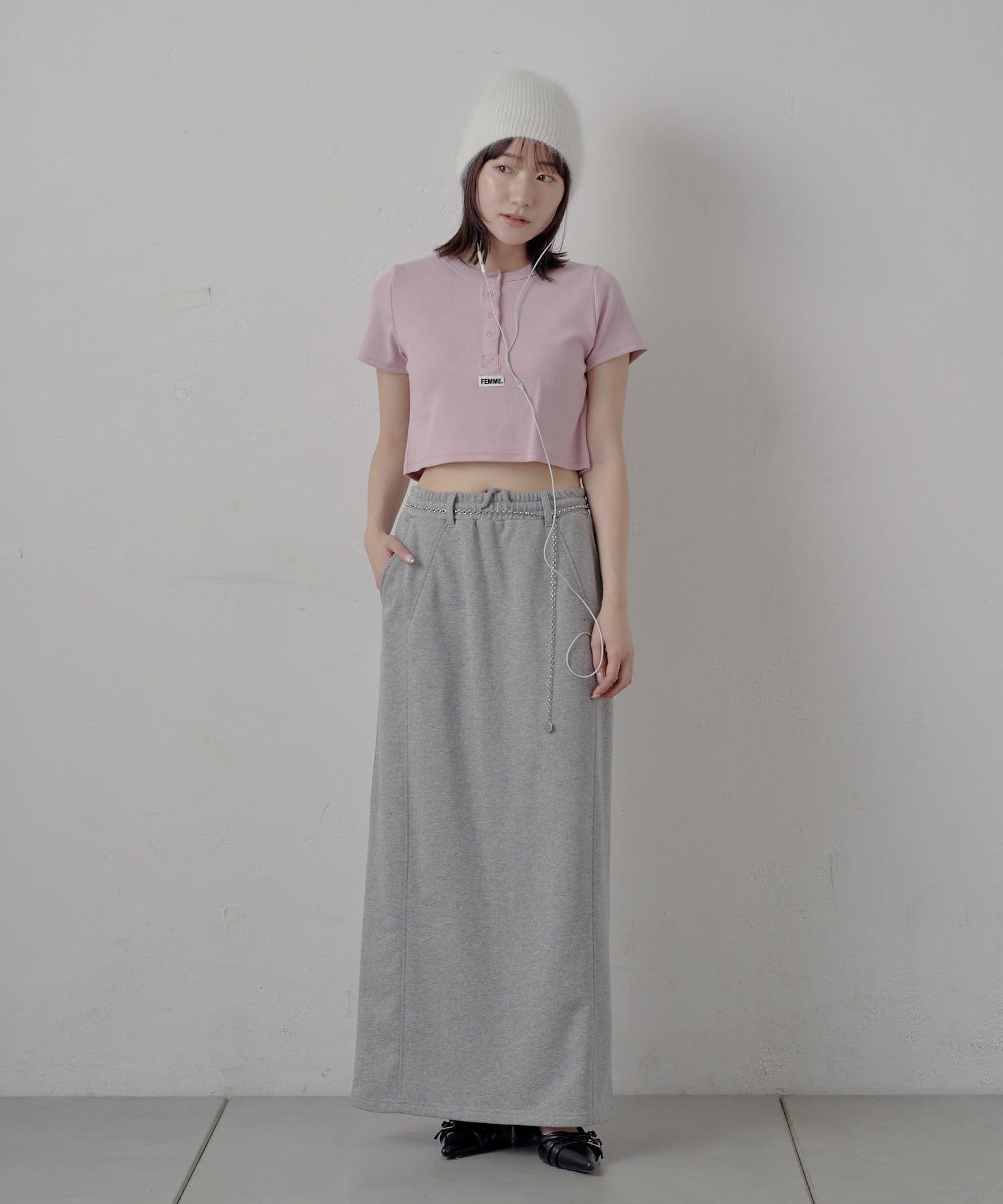 ・足元はヒールやブーツ合わせで女性らしさをプラスしたスタイルに。