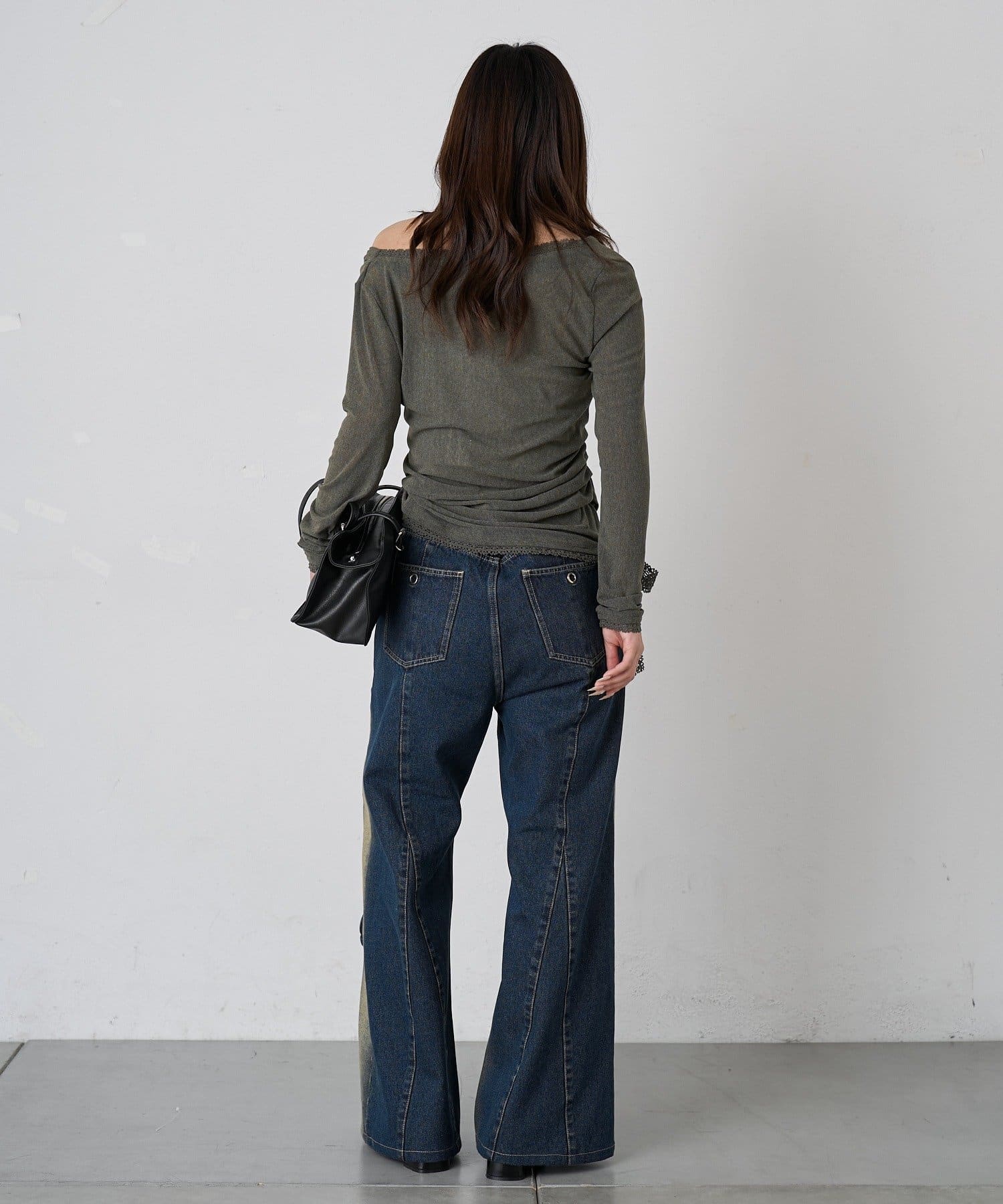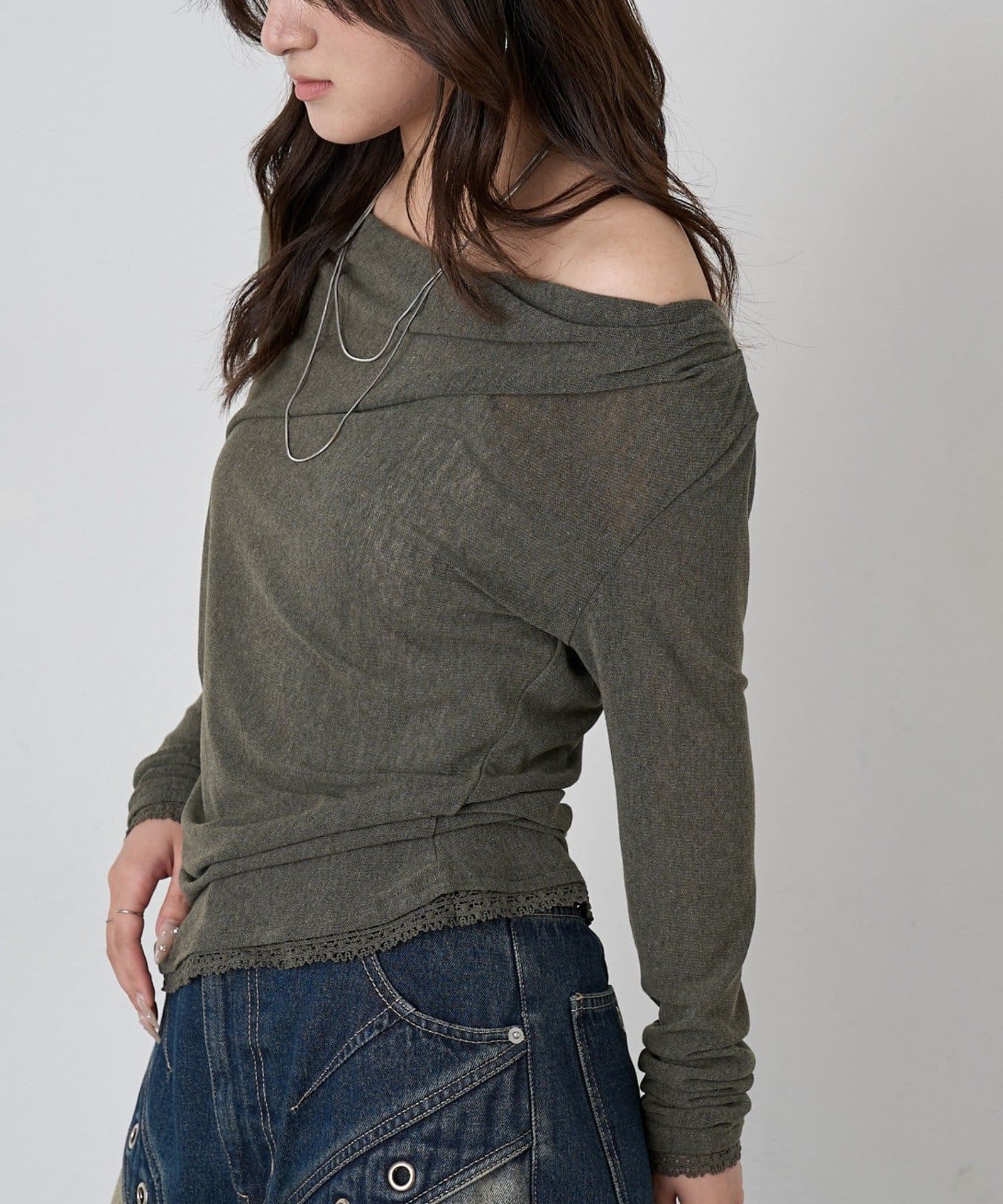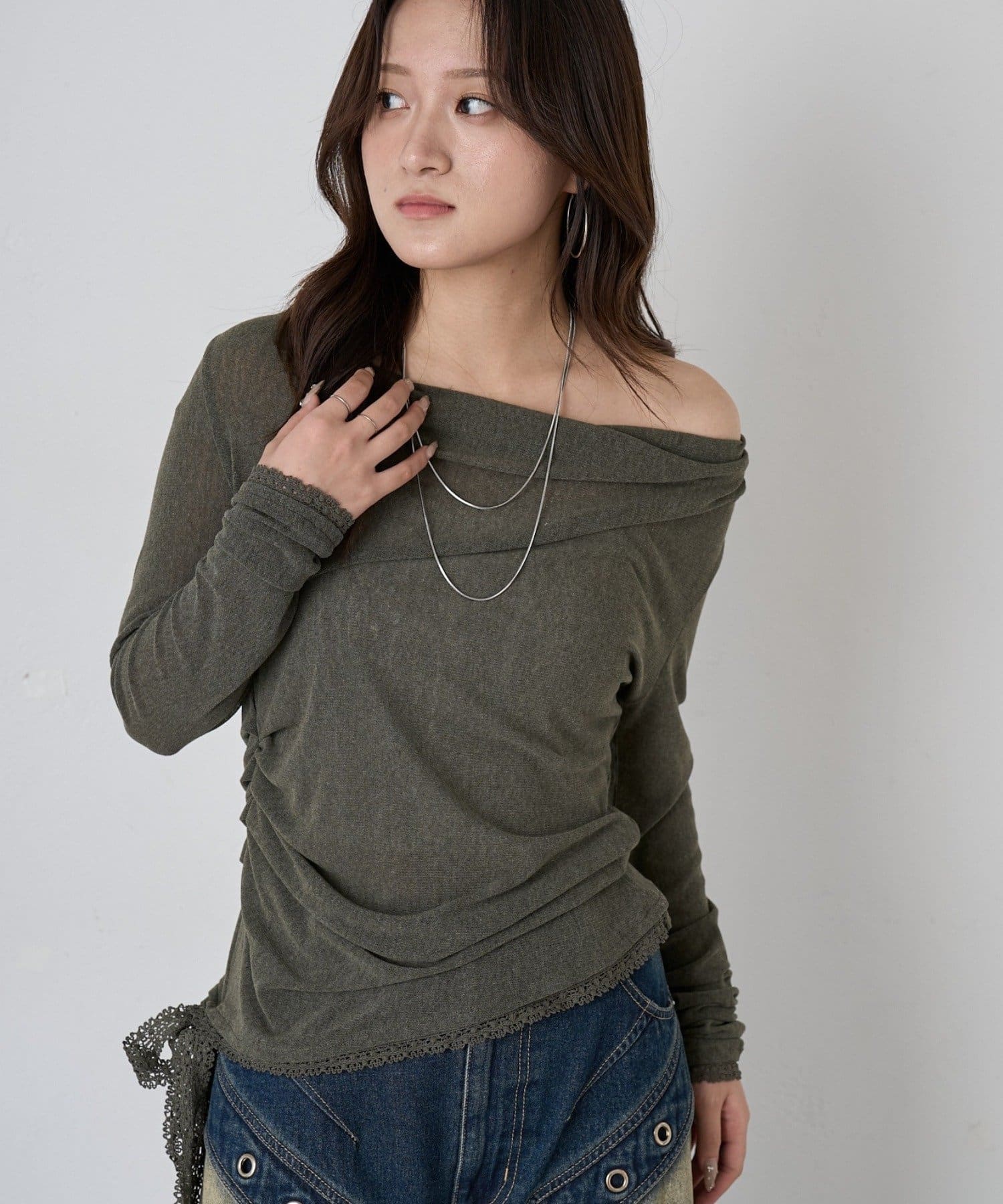 裾のレースリボンがポイントの大人見えオフショルトップスが登場!