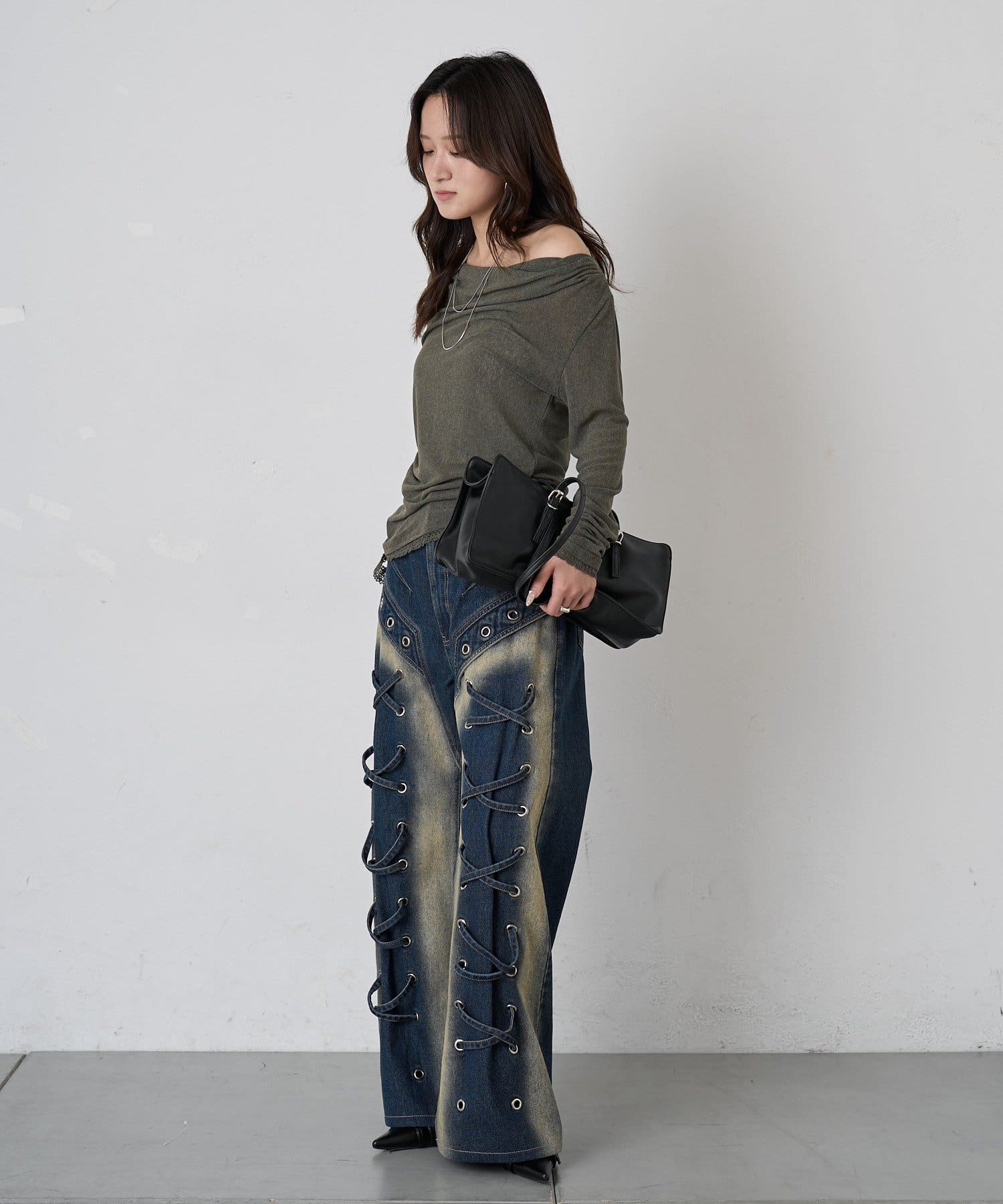 ・横がドロスト仕様になっているので裾のレースリボンで調節が可能です〇