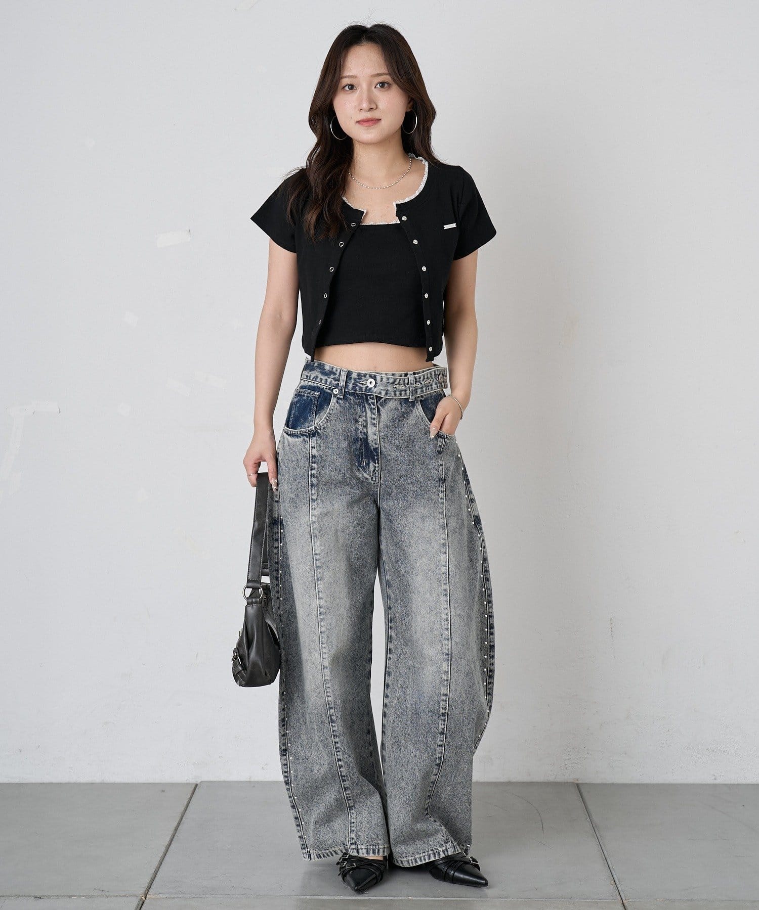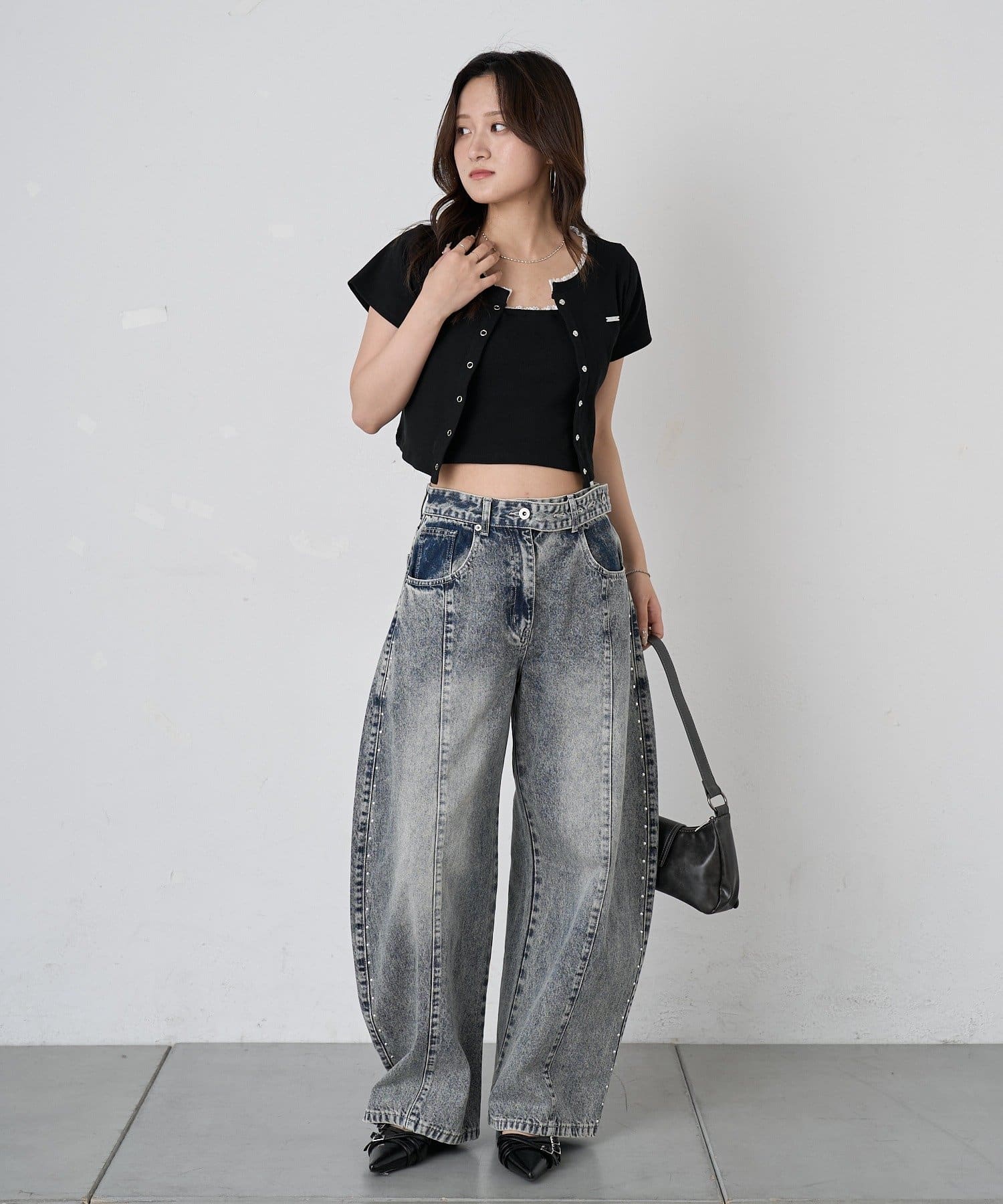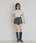 ・ハイウエストのパンツと合わせて大人っぽく。アクセサリーをプラスして、上品さを演出するのも可愛いです。