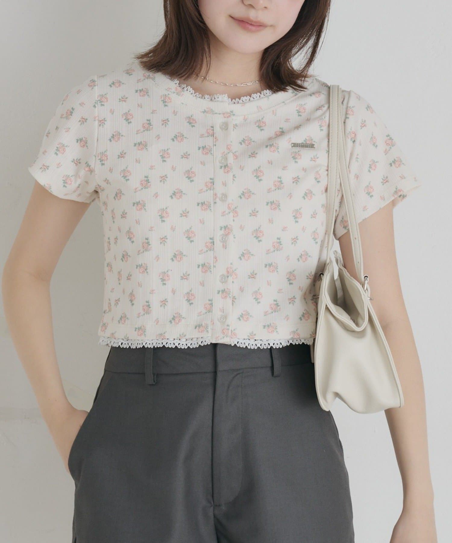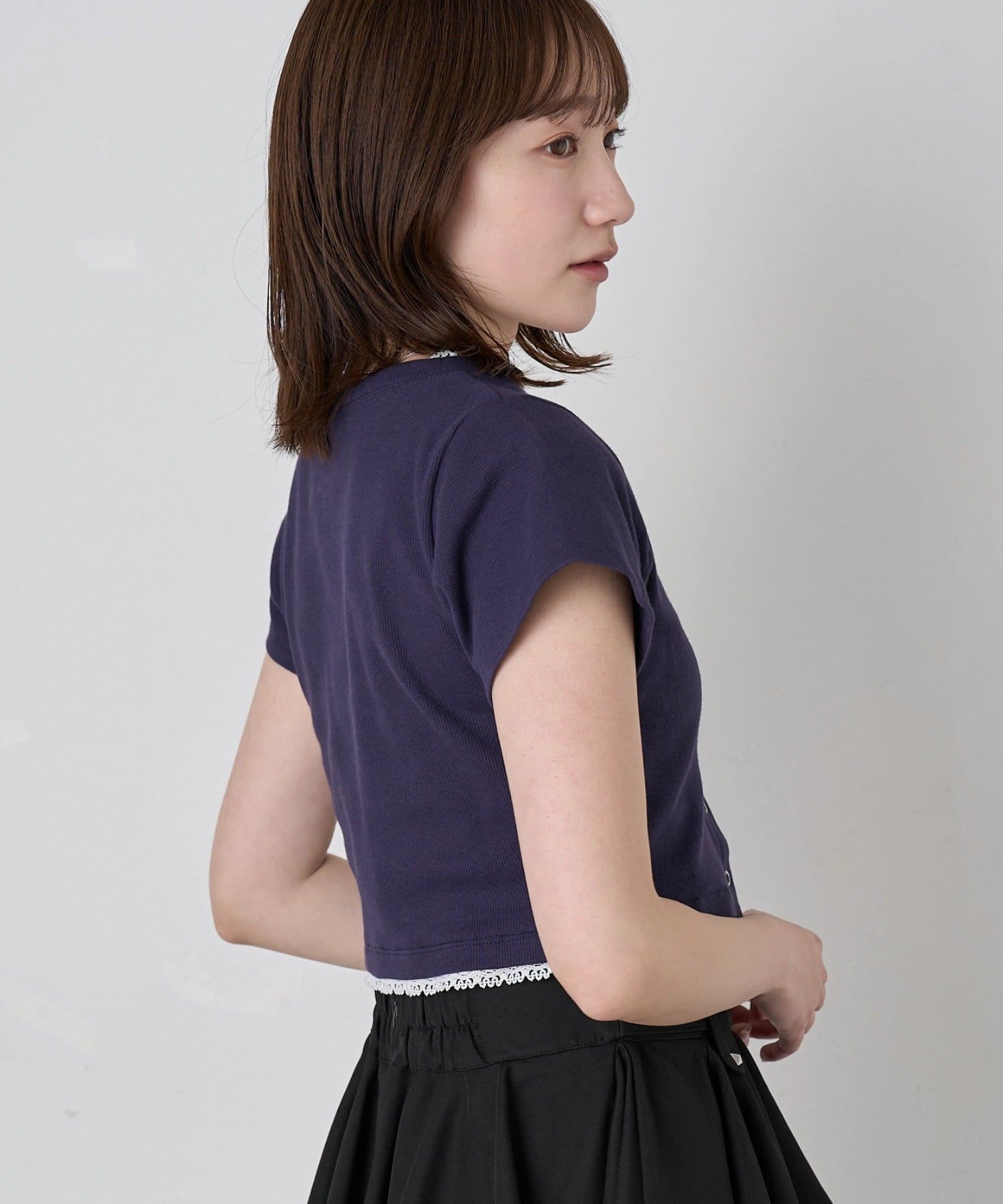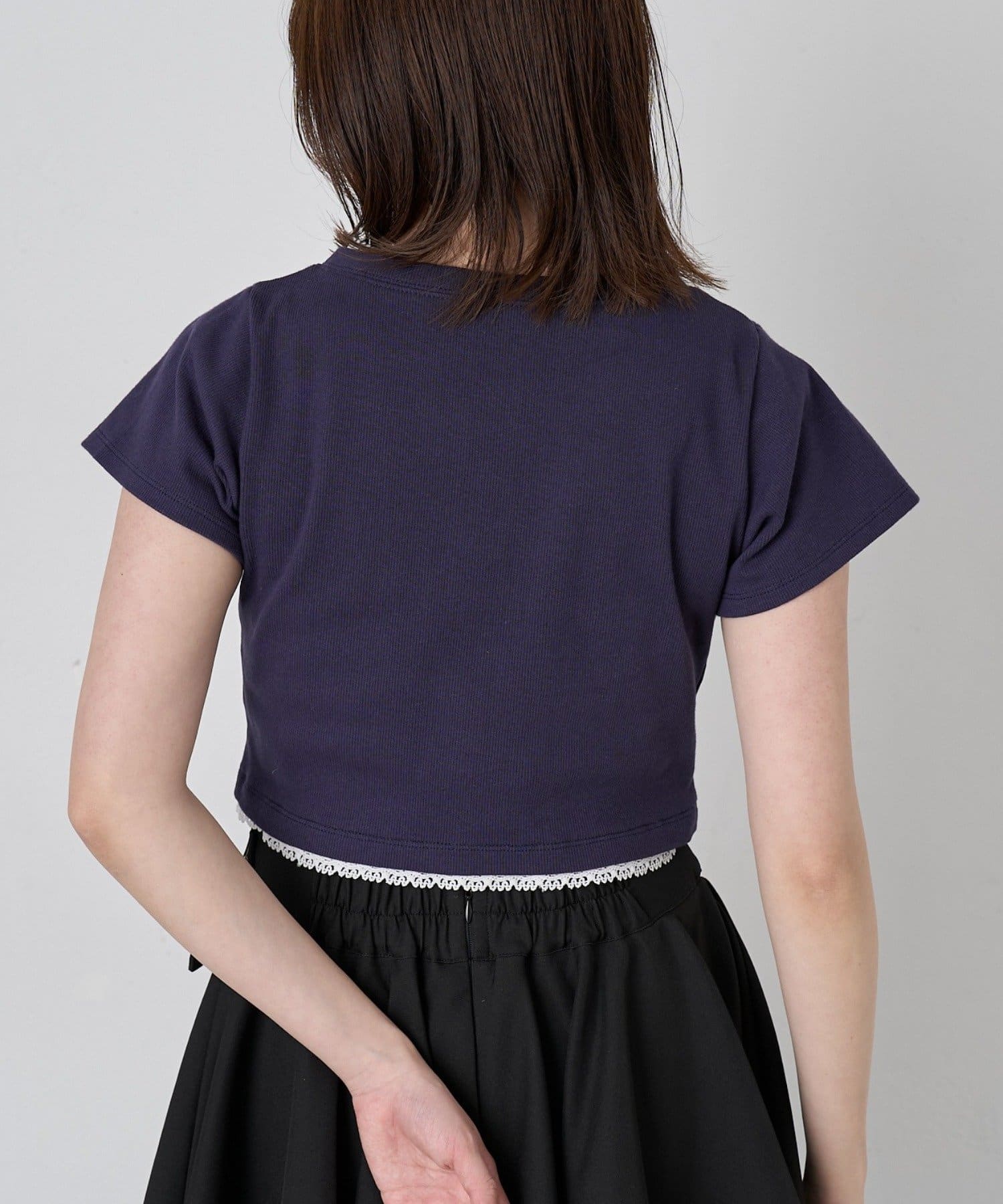 ・襟ぐりと裾のレースが、さりげない可愛らしさとポイントをプラス♪