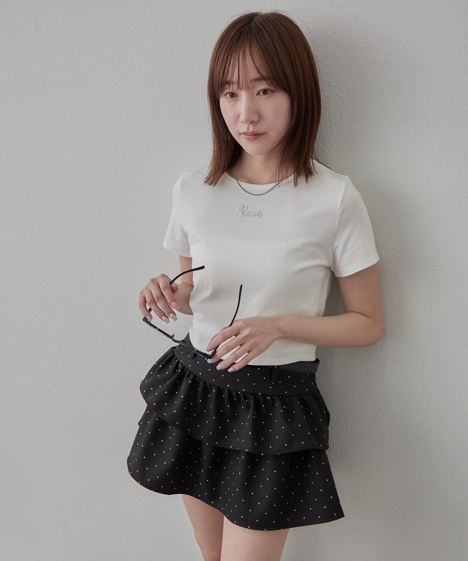 ・胸元のビーズロゴがワンポイントに。