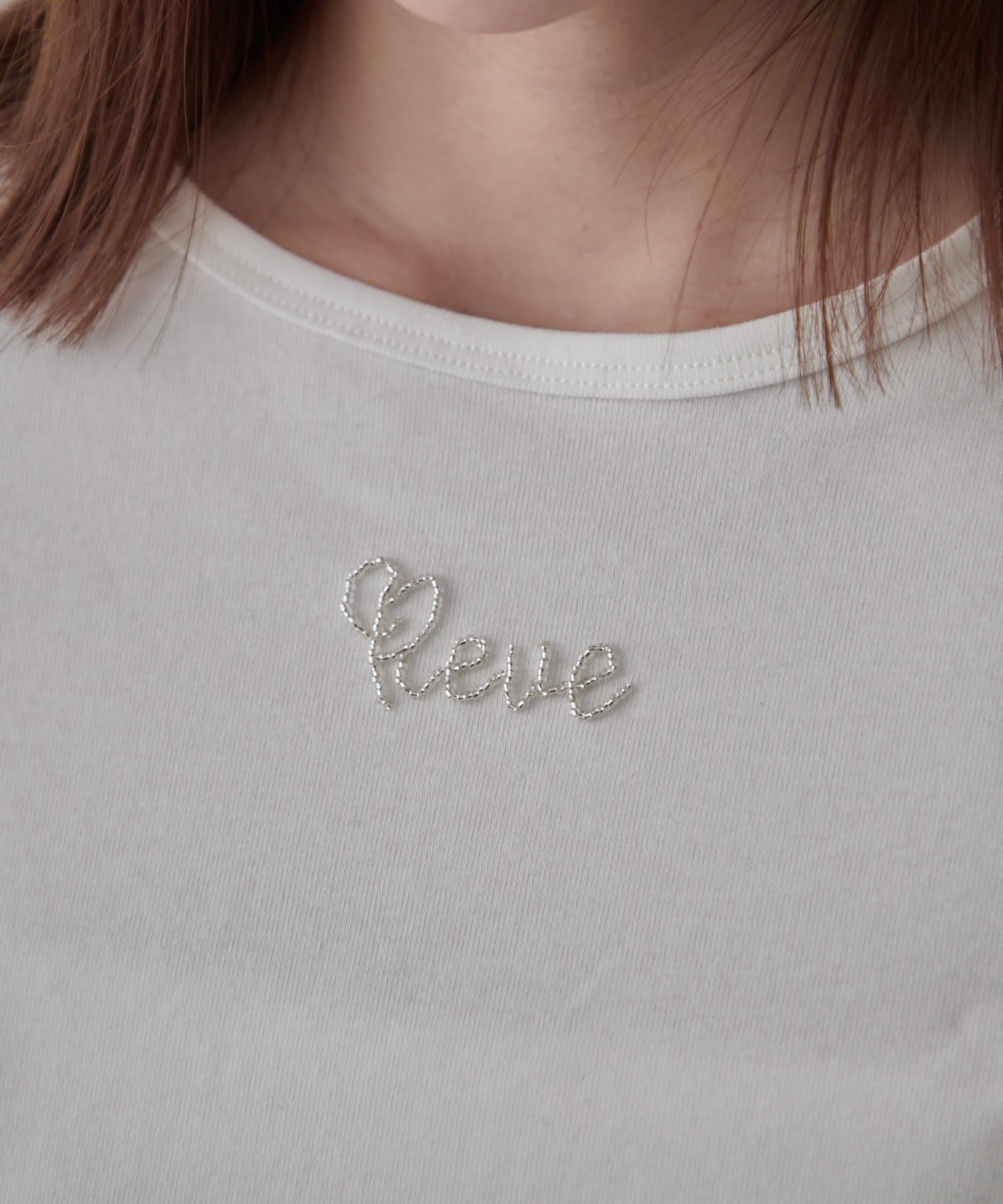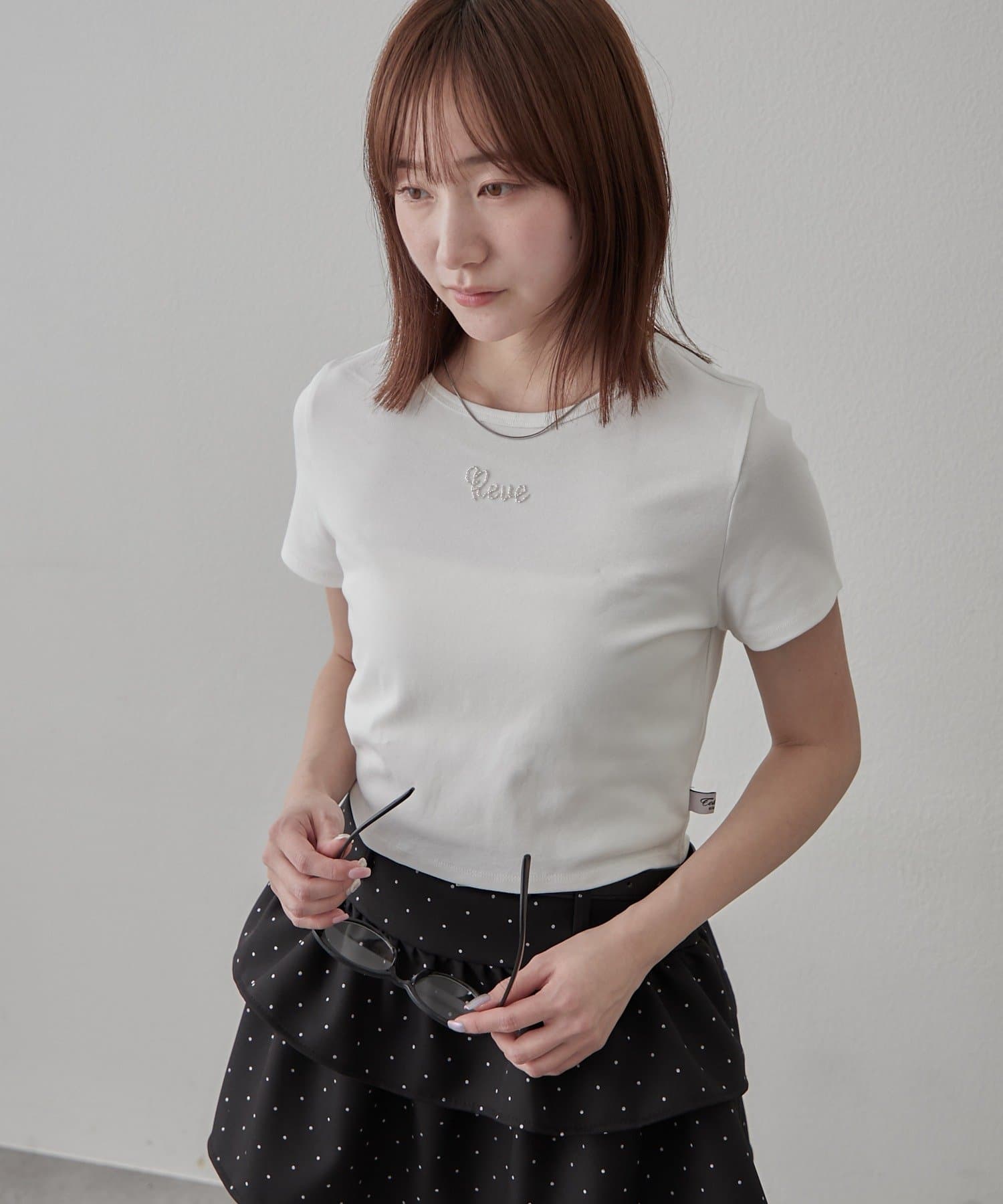 TOP > mline > レディース > トップス > Tシャツ/カットソー > [mline]ビーズワンポイント ロゴTシャツ