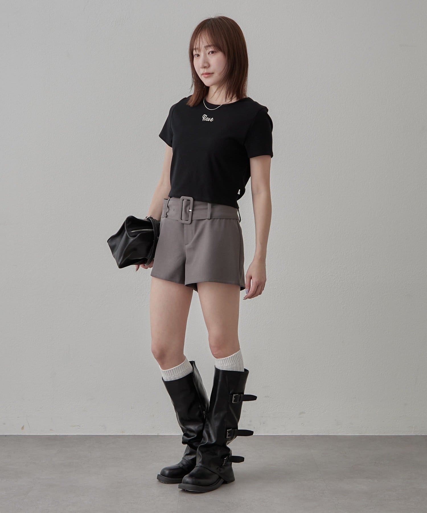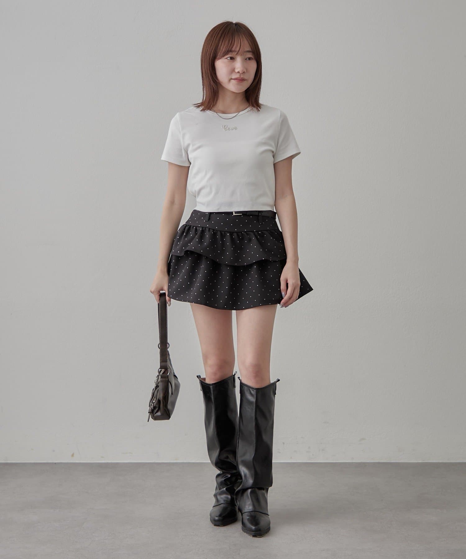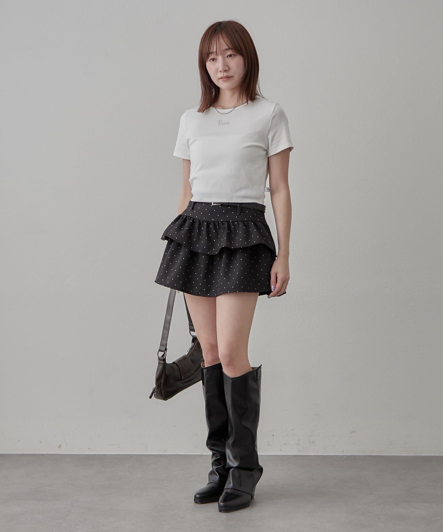 ・ハイウエストボトムと合わせてスタイルアップ見え。