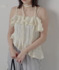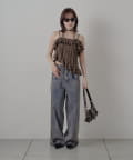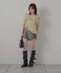 ・インナーにキャミやベアトップを合わせてヘルシーに着るのもおすすめ。