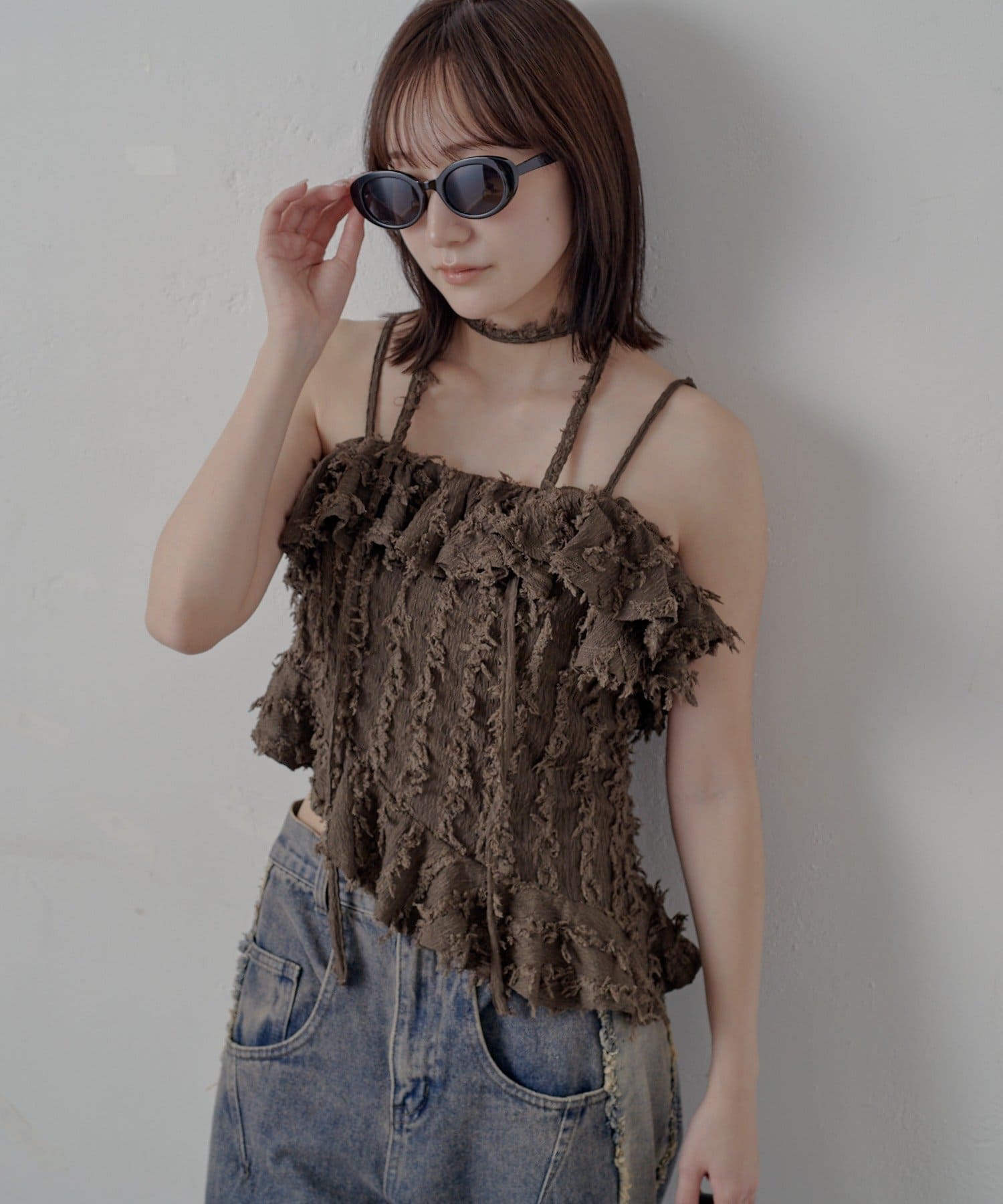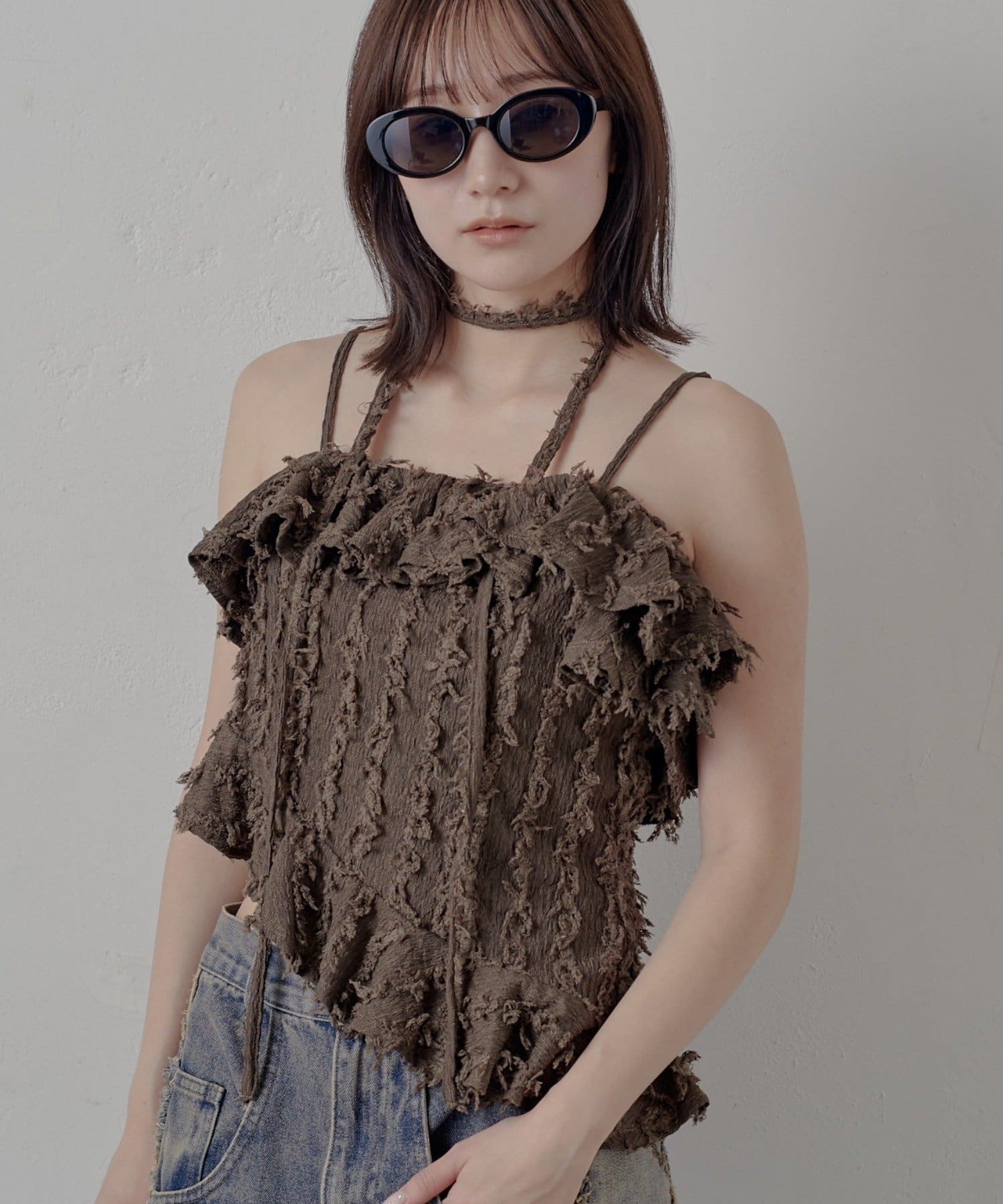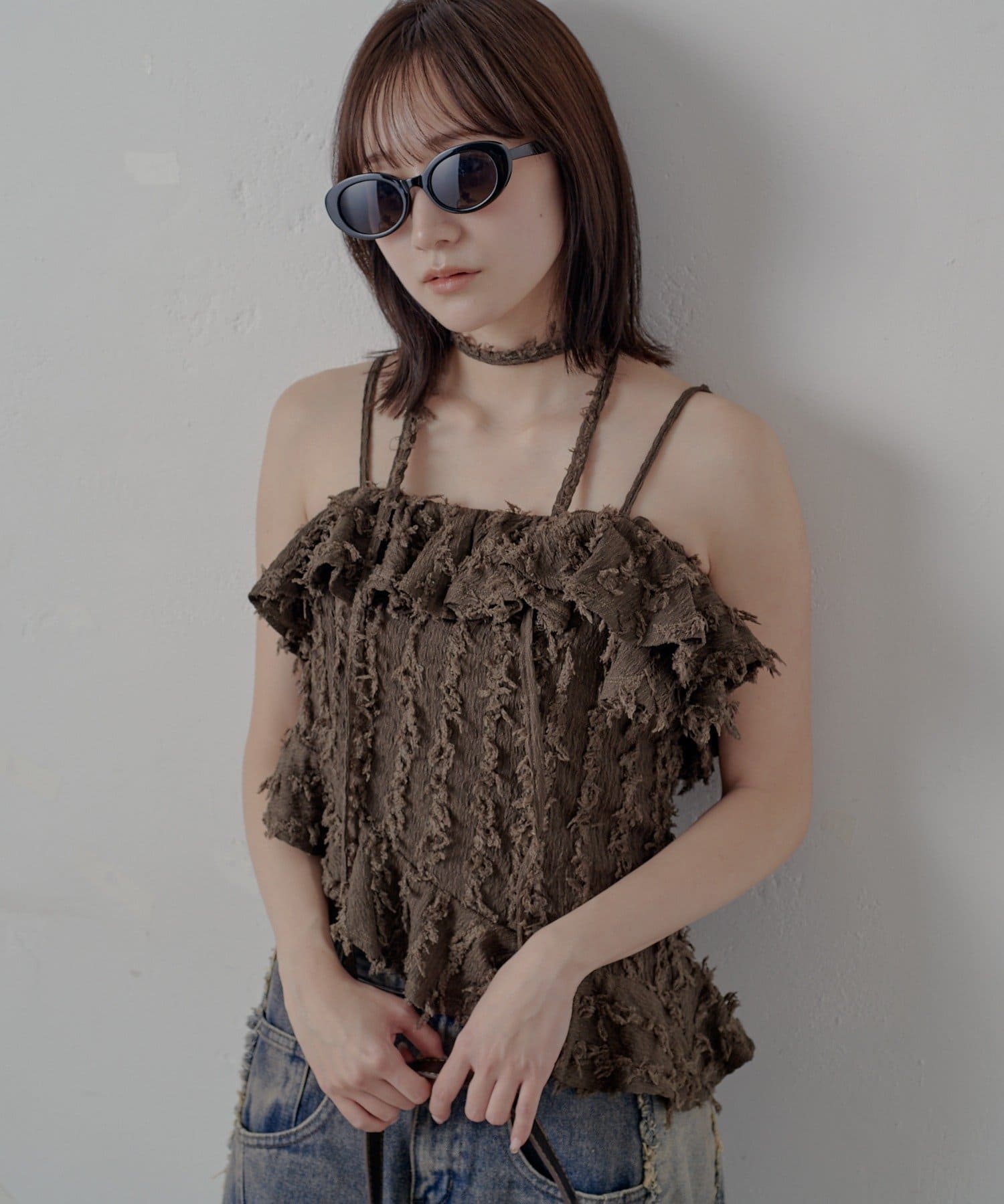 表面感のあるフリンジ素材感が◎1枚で着映えするデザイン