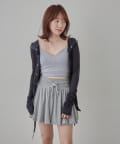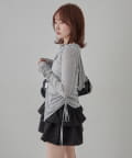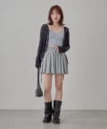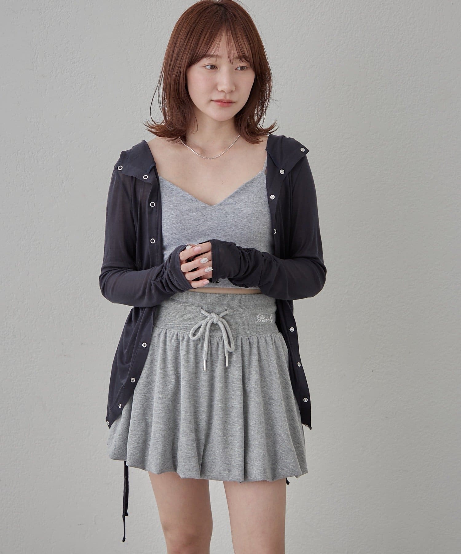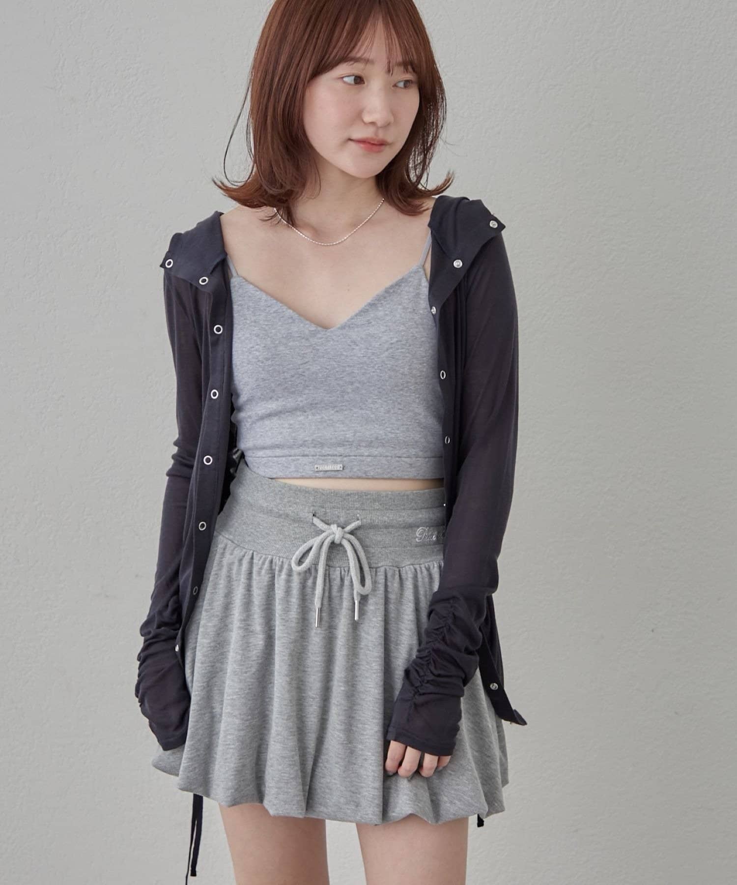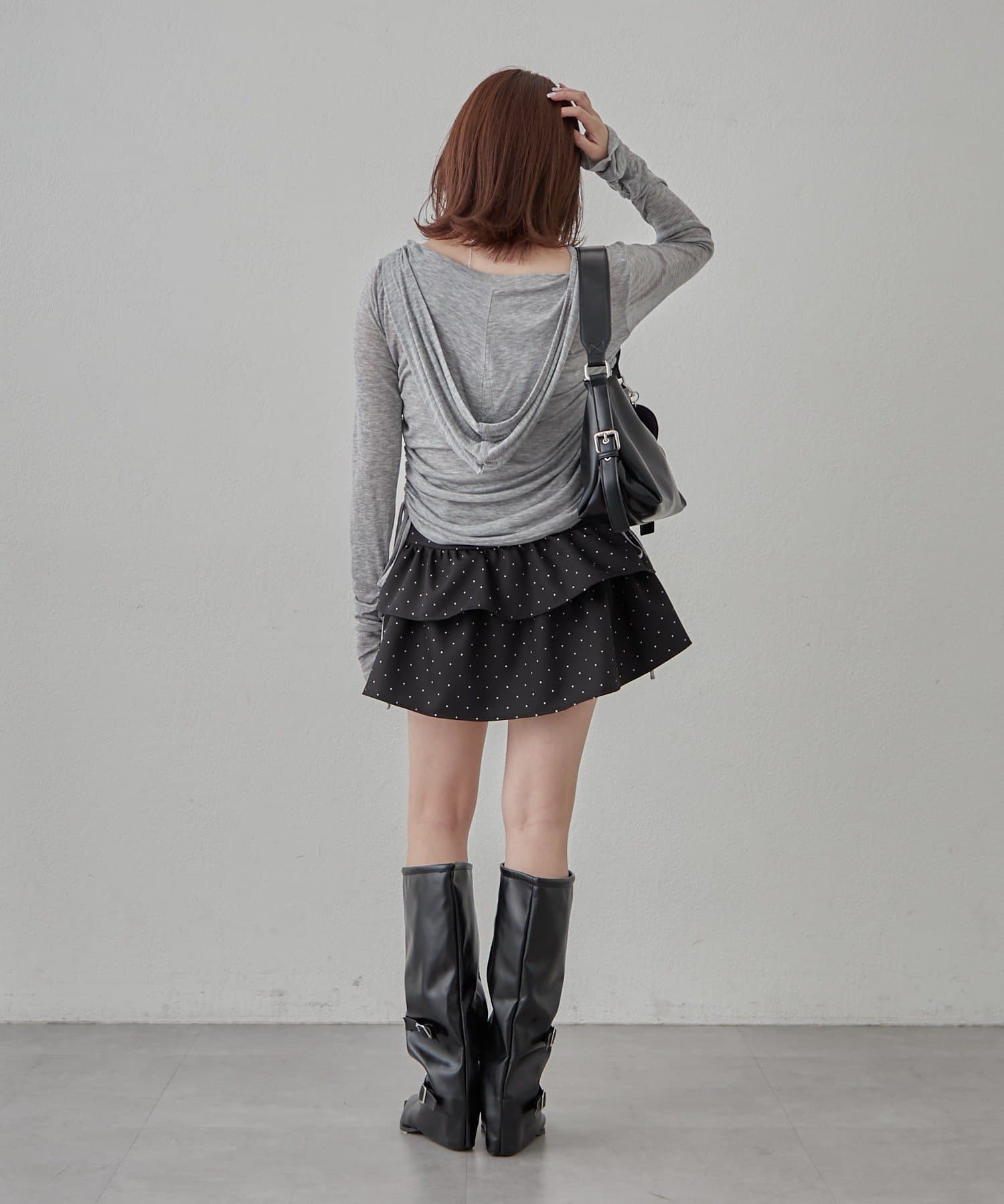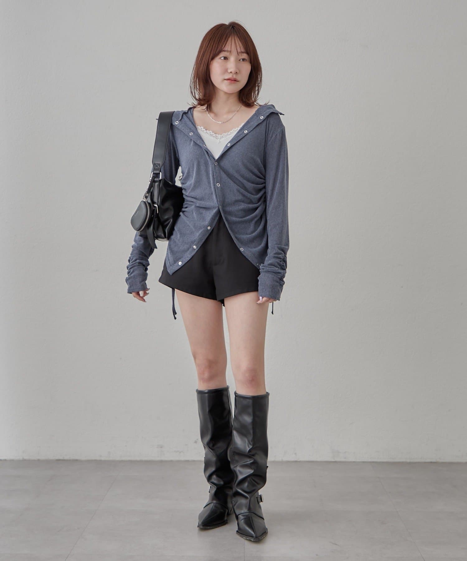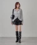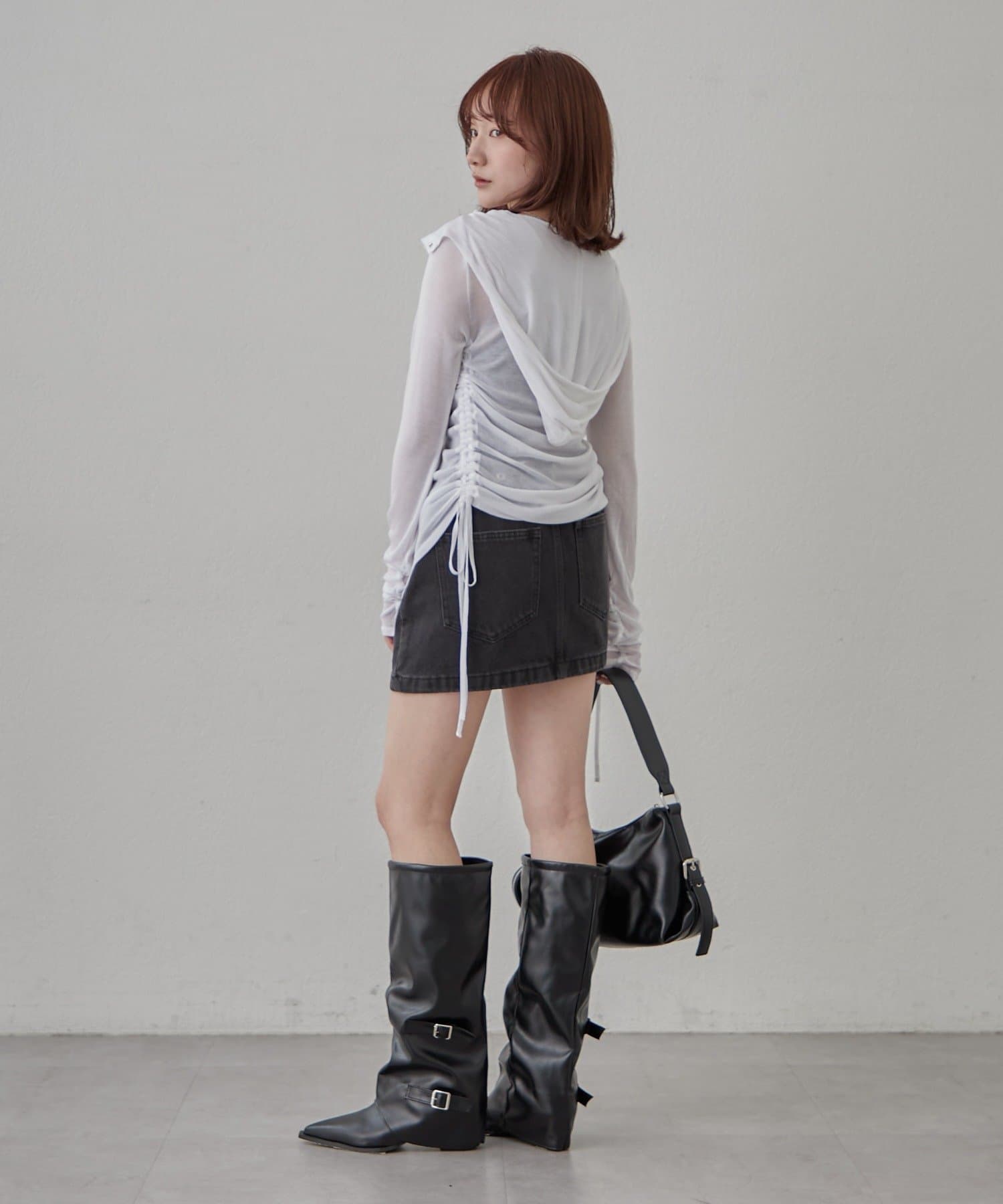 ・ミニスカートやショートボトムでトレンド感のあるバランスに。