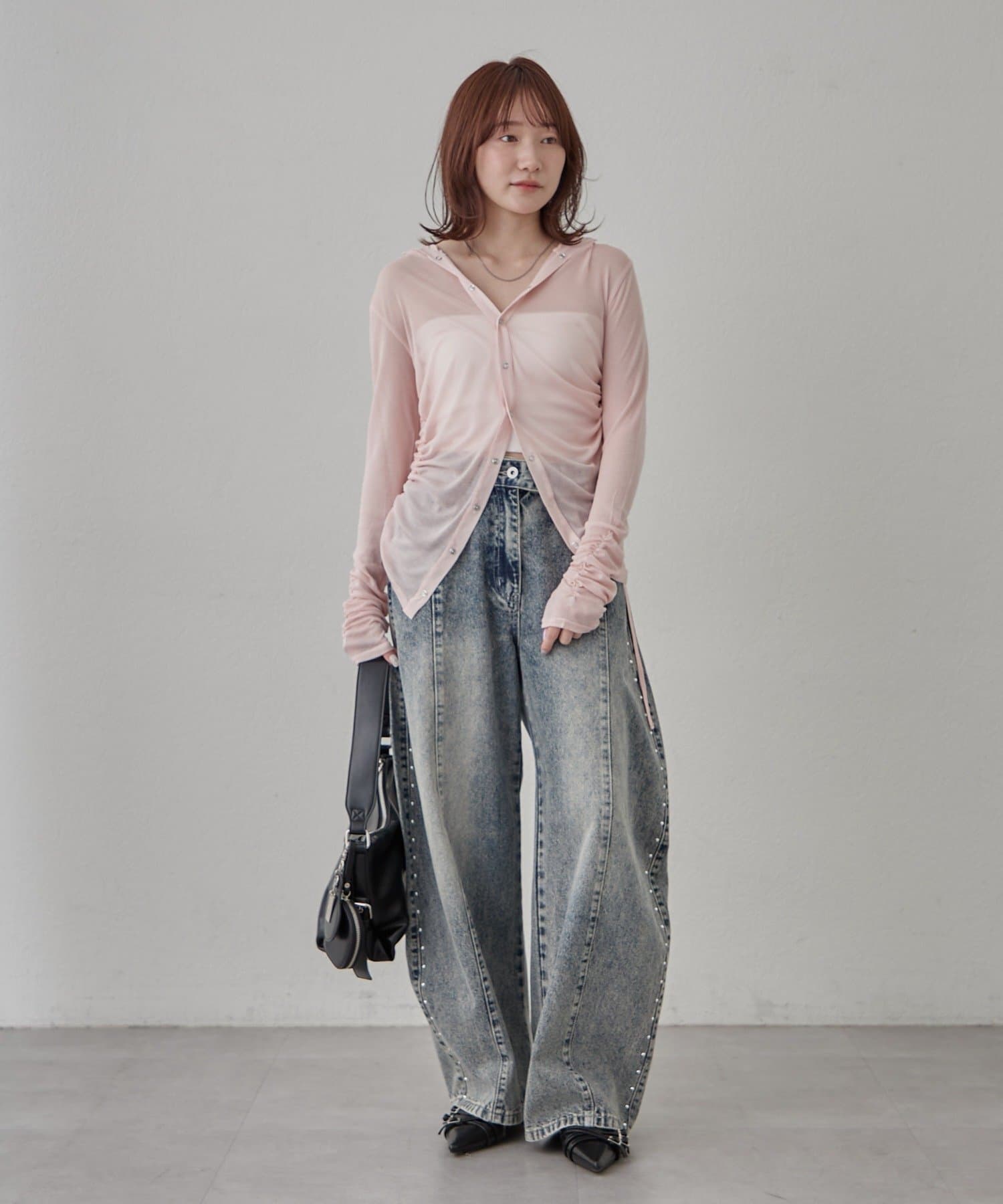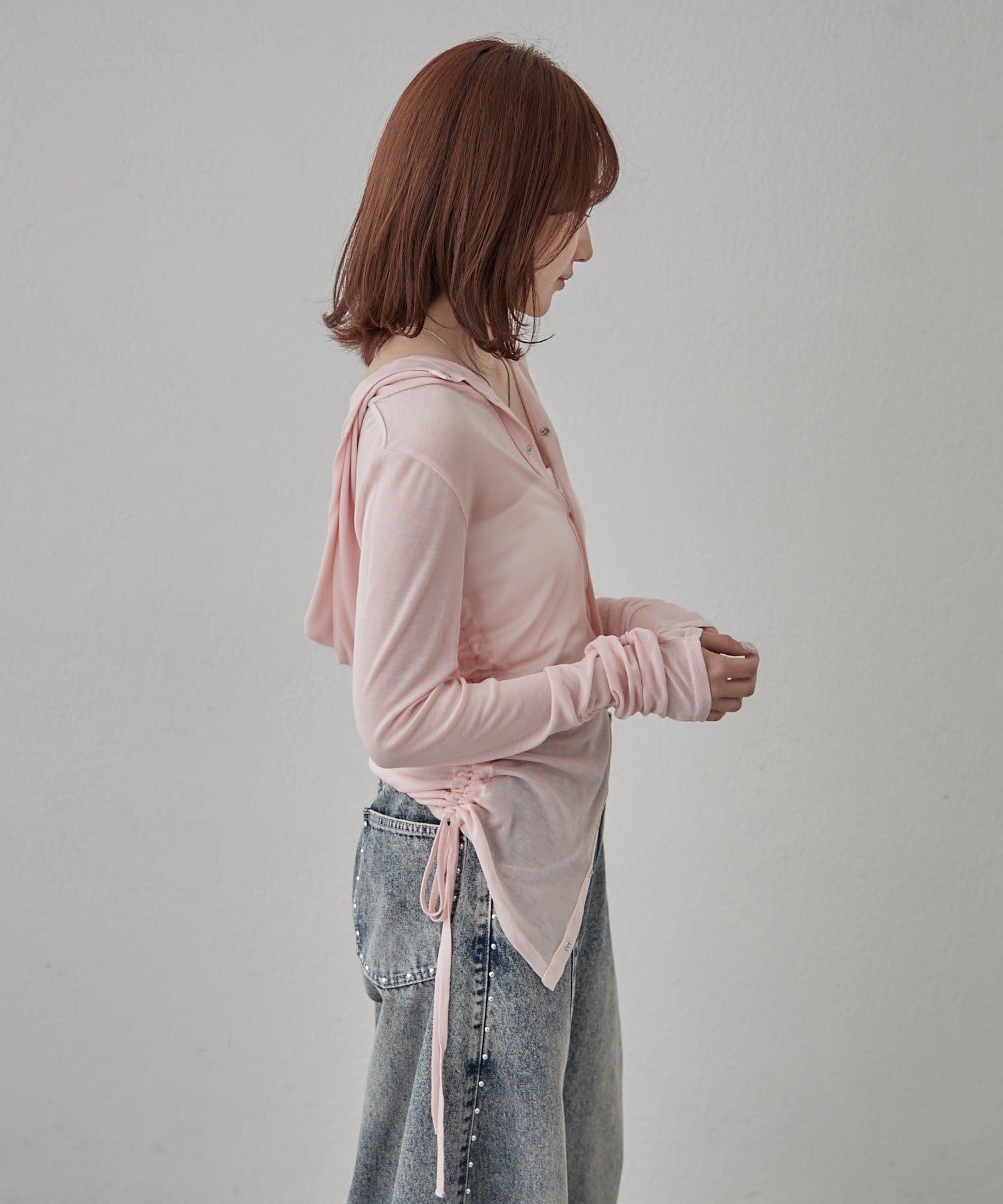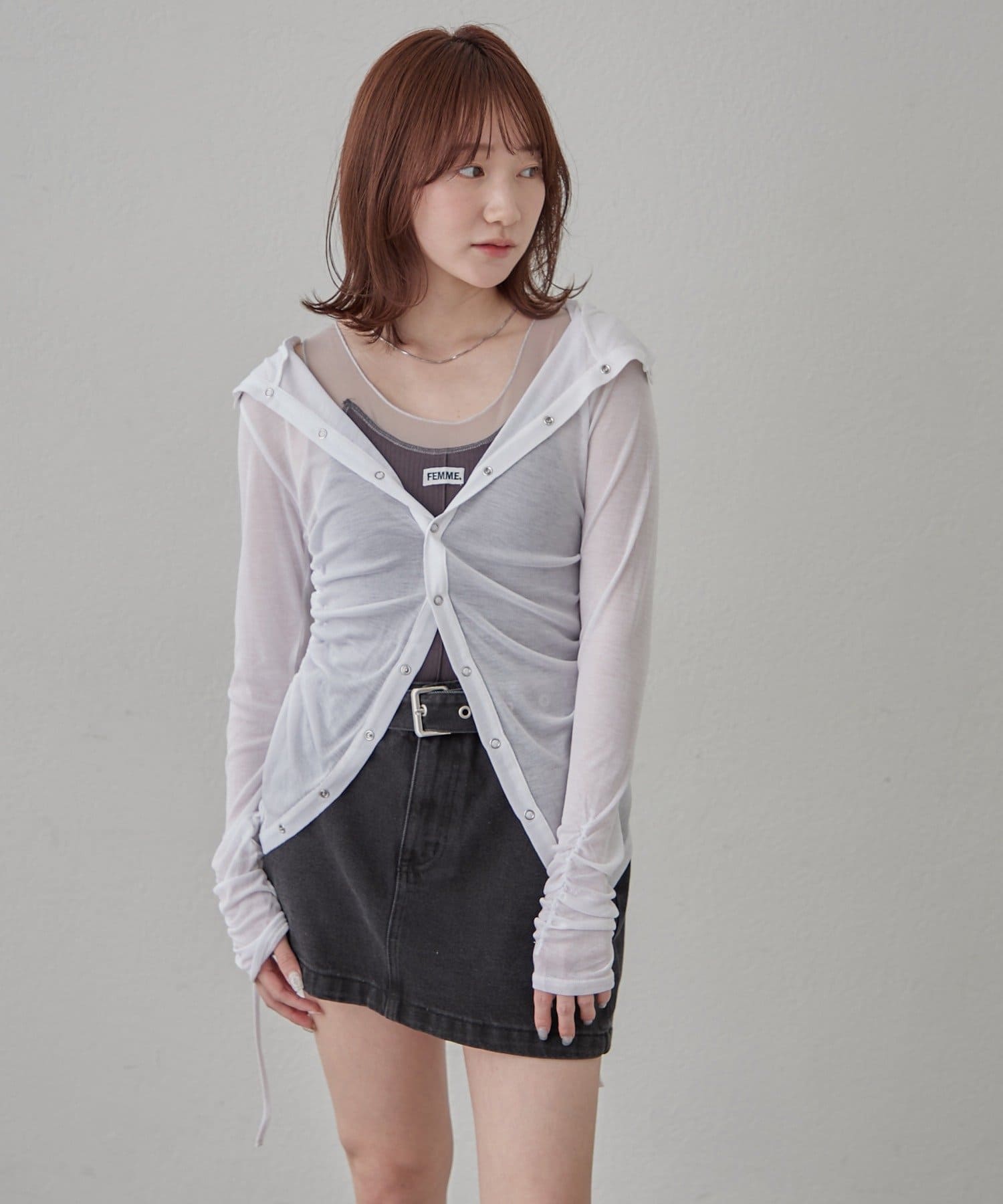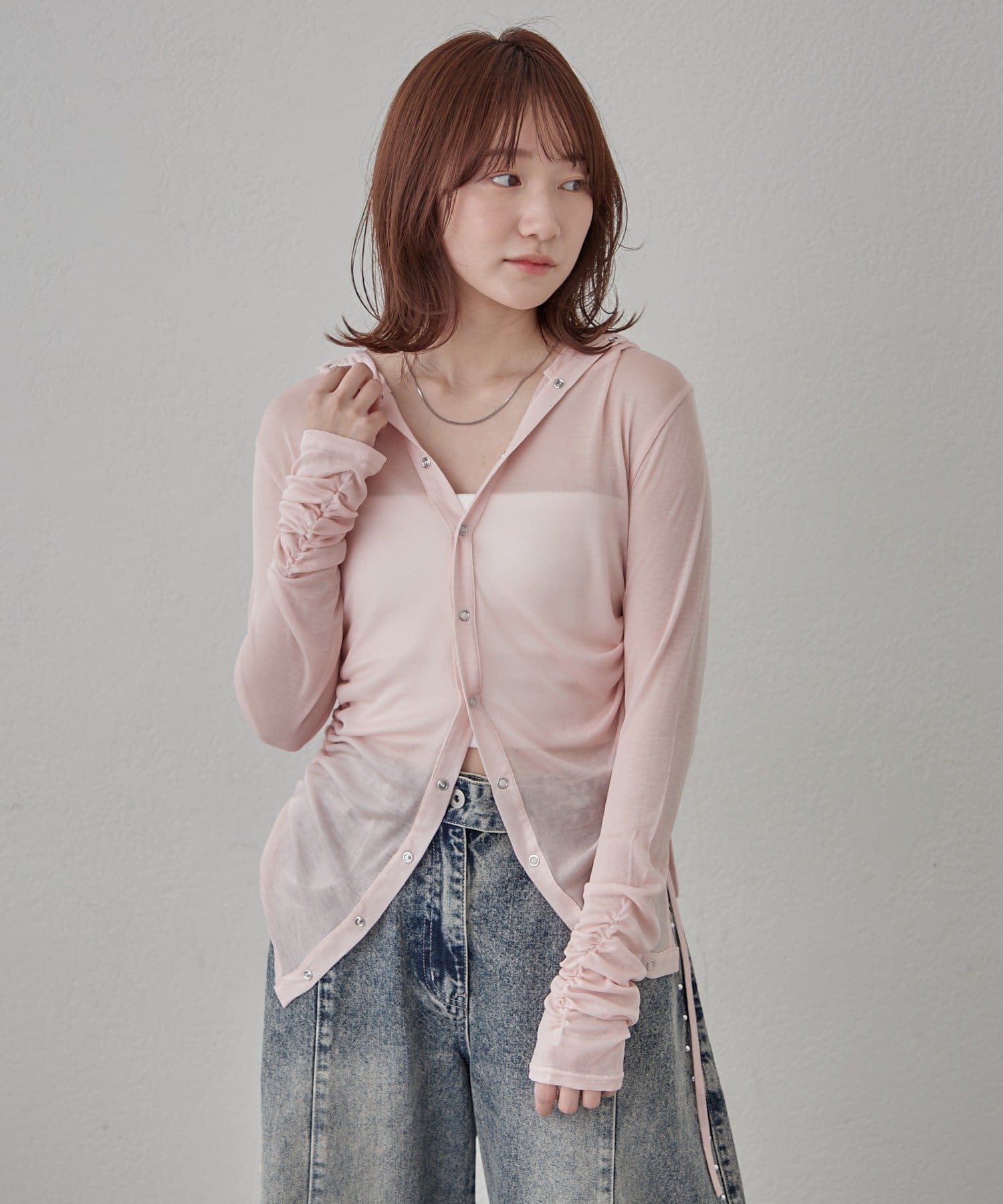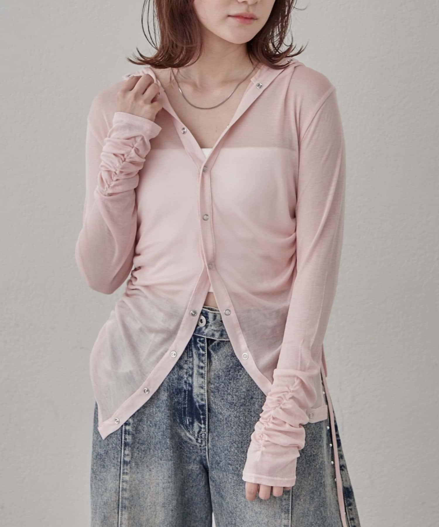 軽やかに羽織れる、 シアーフーディーカーディガン