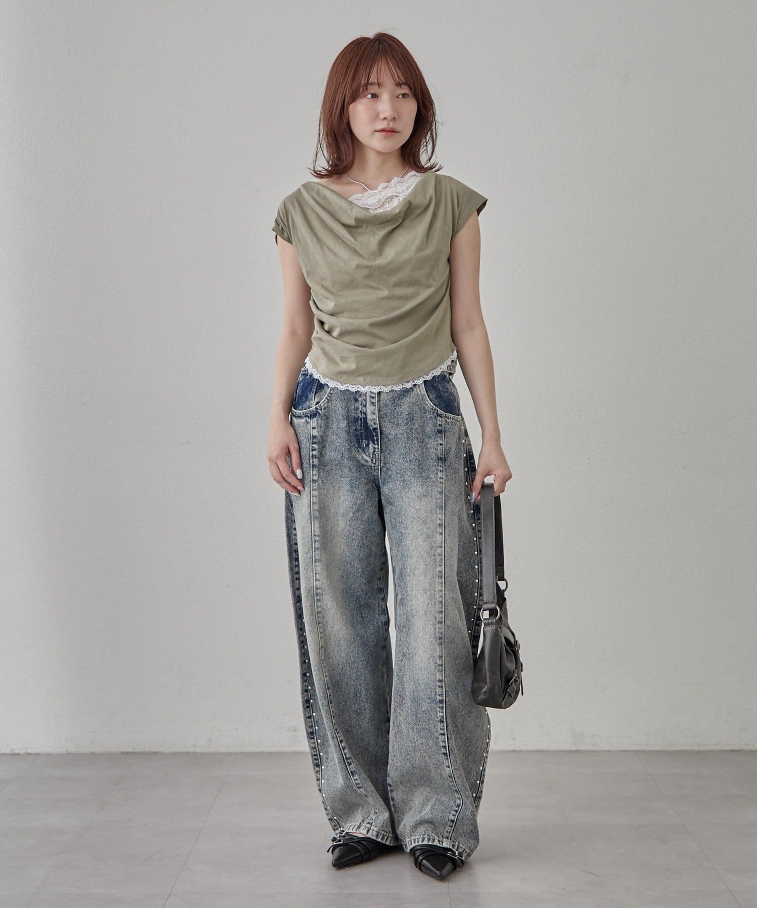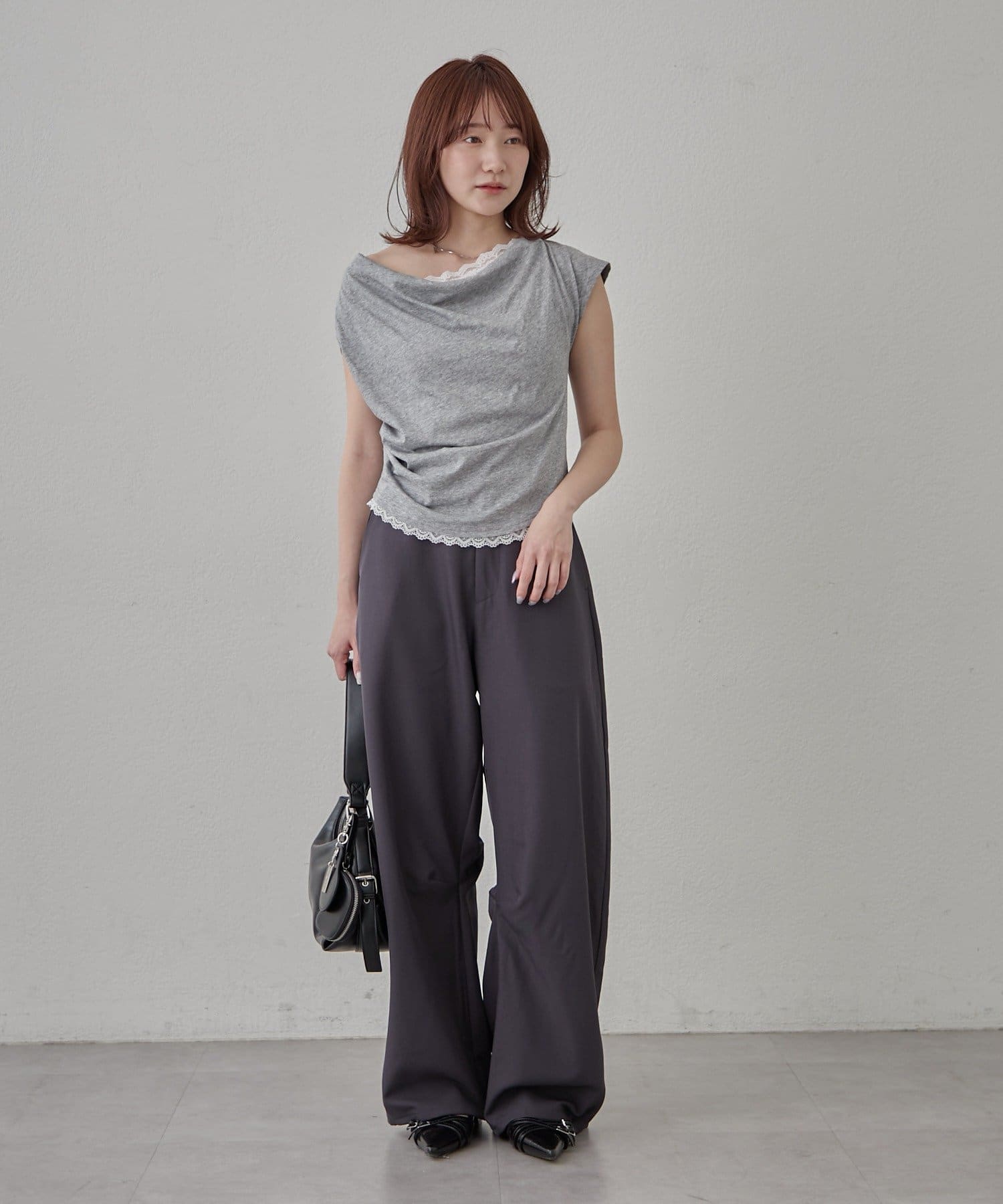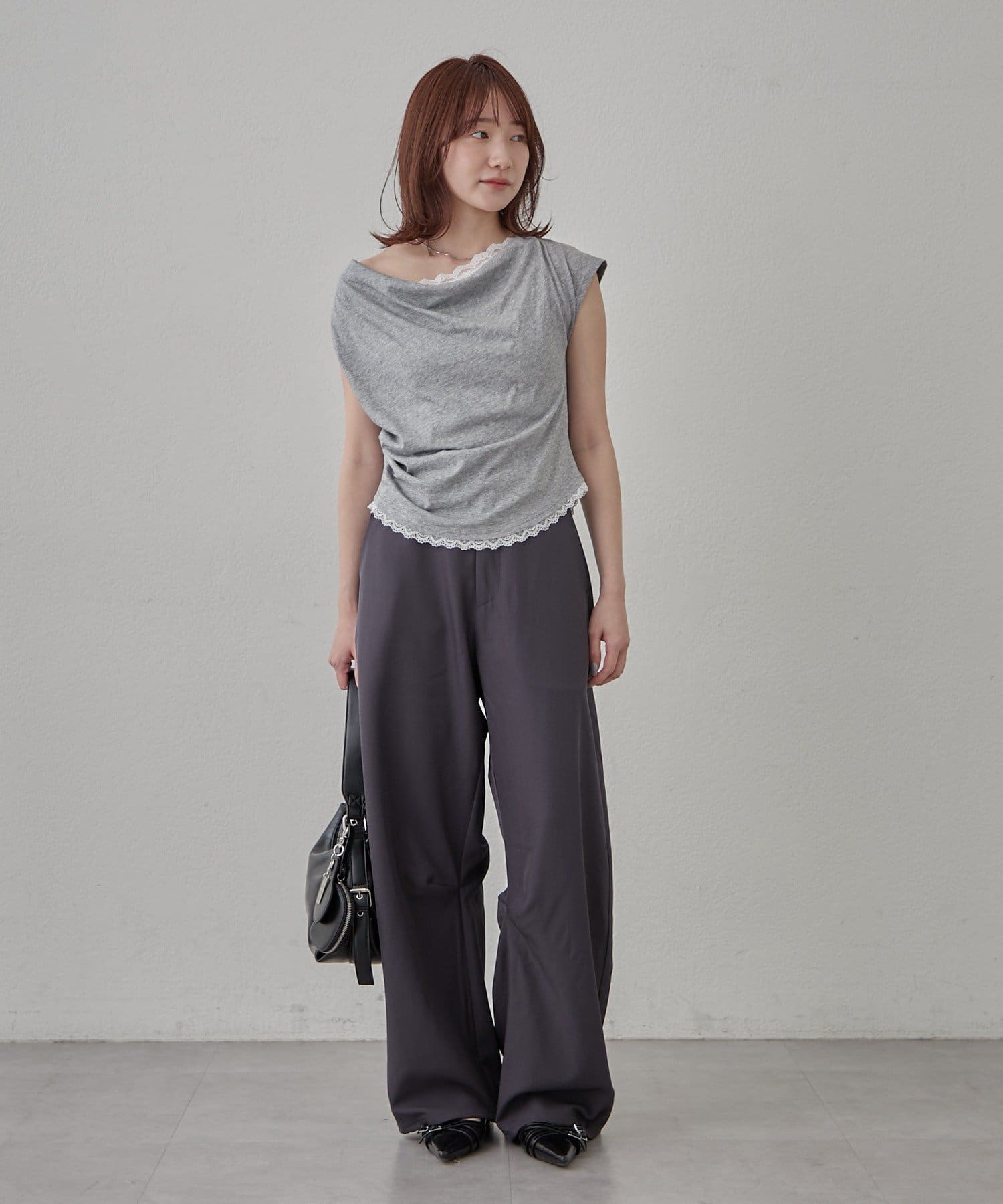 ・落ち感のあるシルエットで柔らかく上品な印象に。