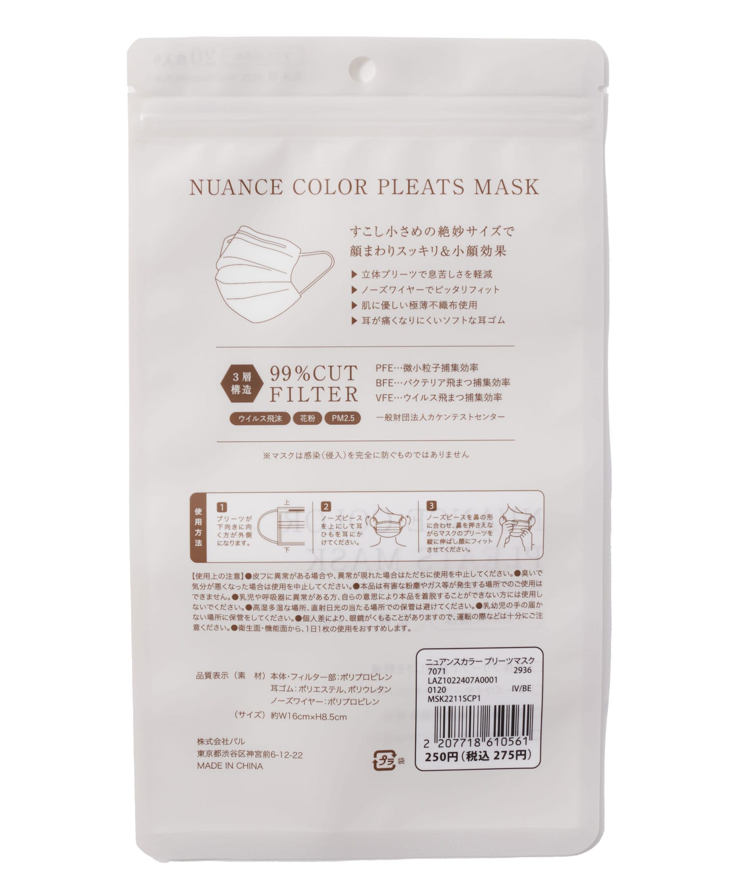 ニュアンスカラープリーツマスク(20枚入り)