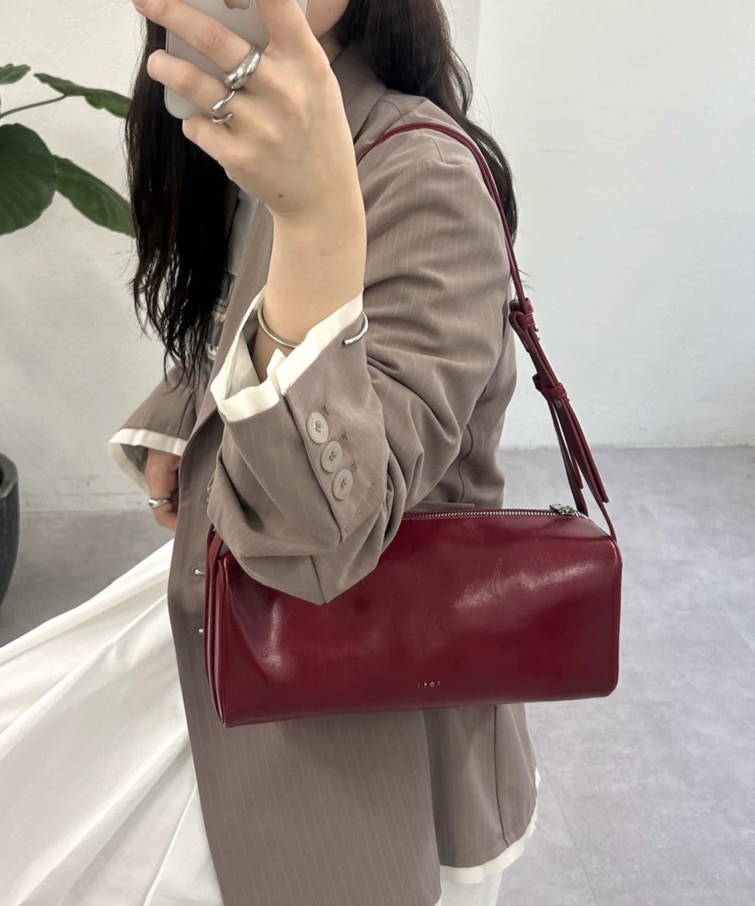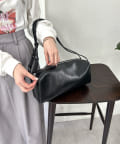 ・シンプルなデザインとやや光沢感のある生地で洗練された印象のバッグ。