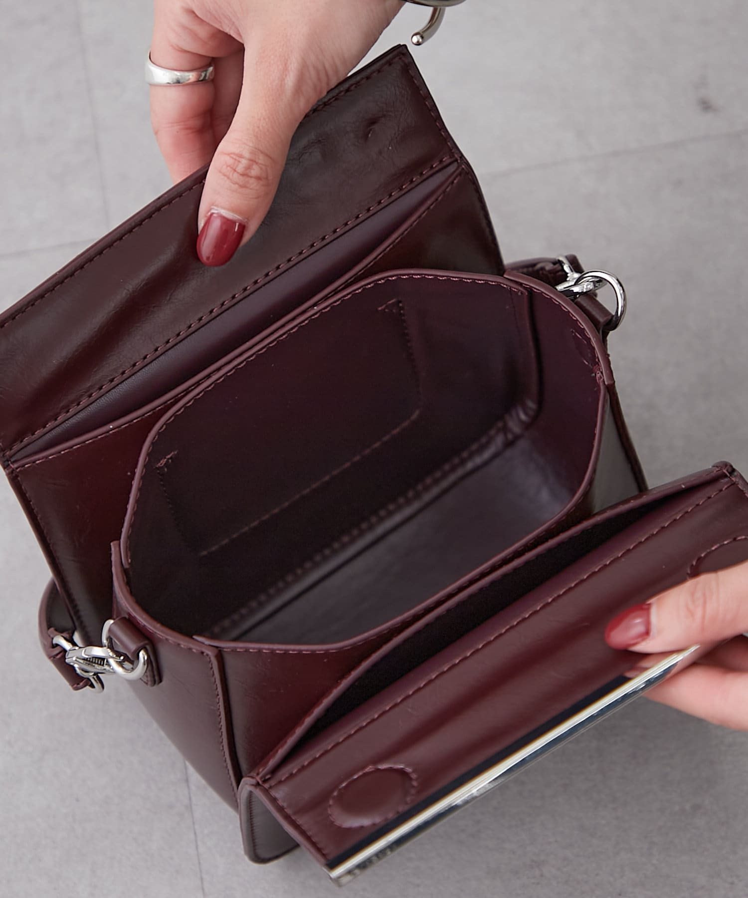 ・トレンド感あるスクエアフォルムとデザインが魅力的なポシェット。
