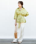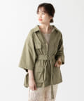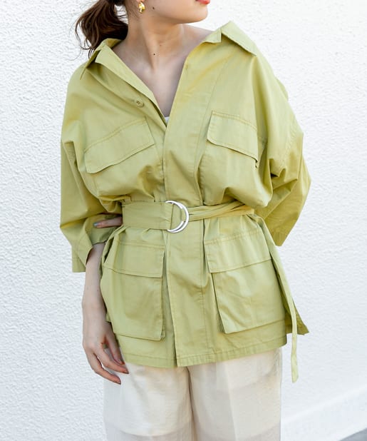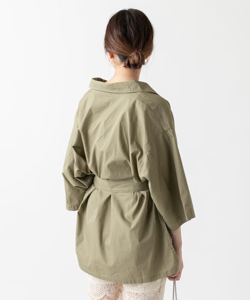 ・共地ベルトでウエストマークしたり、フロントの釦を開けて羽織ったり、1着で何通りも楽しめるアイテム。