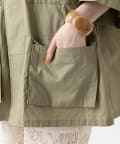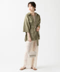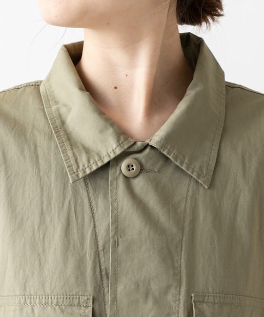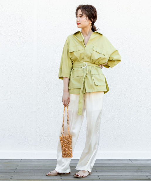 ・キレイ見えする素材で仕立てたサファリシャツジャケットです。