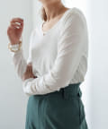 ・少し丈感が長めなのでレイヤードスタイルにも合わせやすく、気になるボトムラインもカバー◎