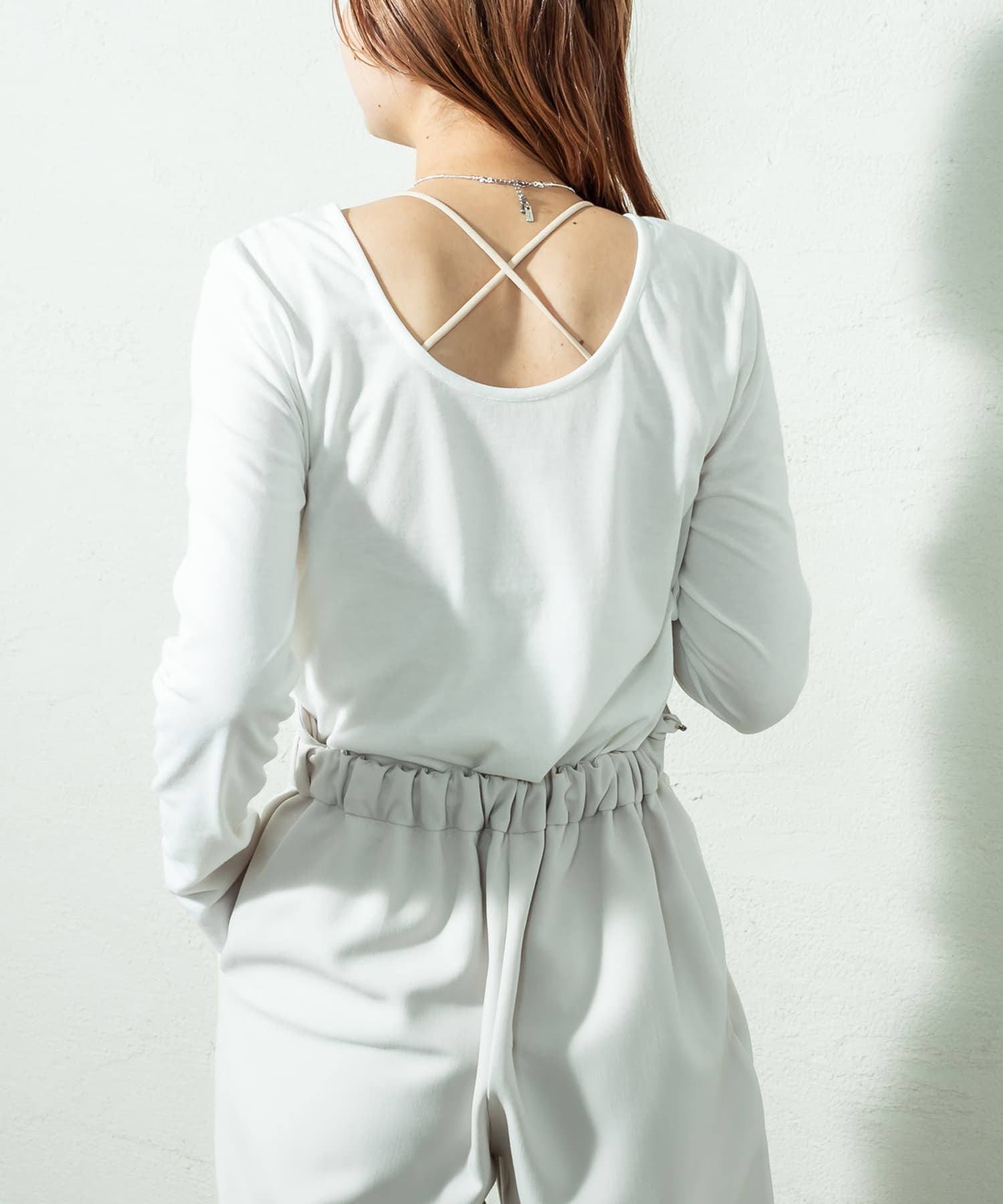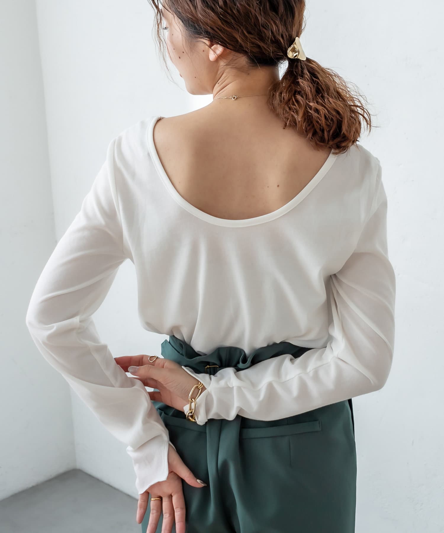 背中開きのシンプルで着回しやすいロングTシャツが登場!