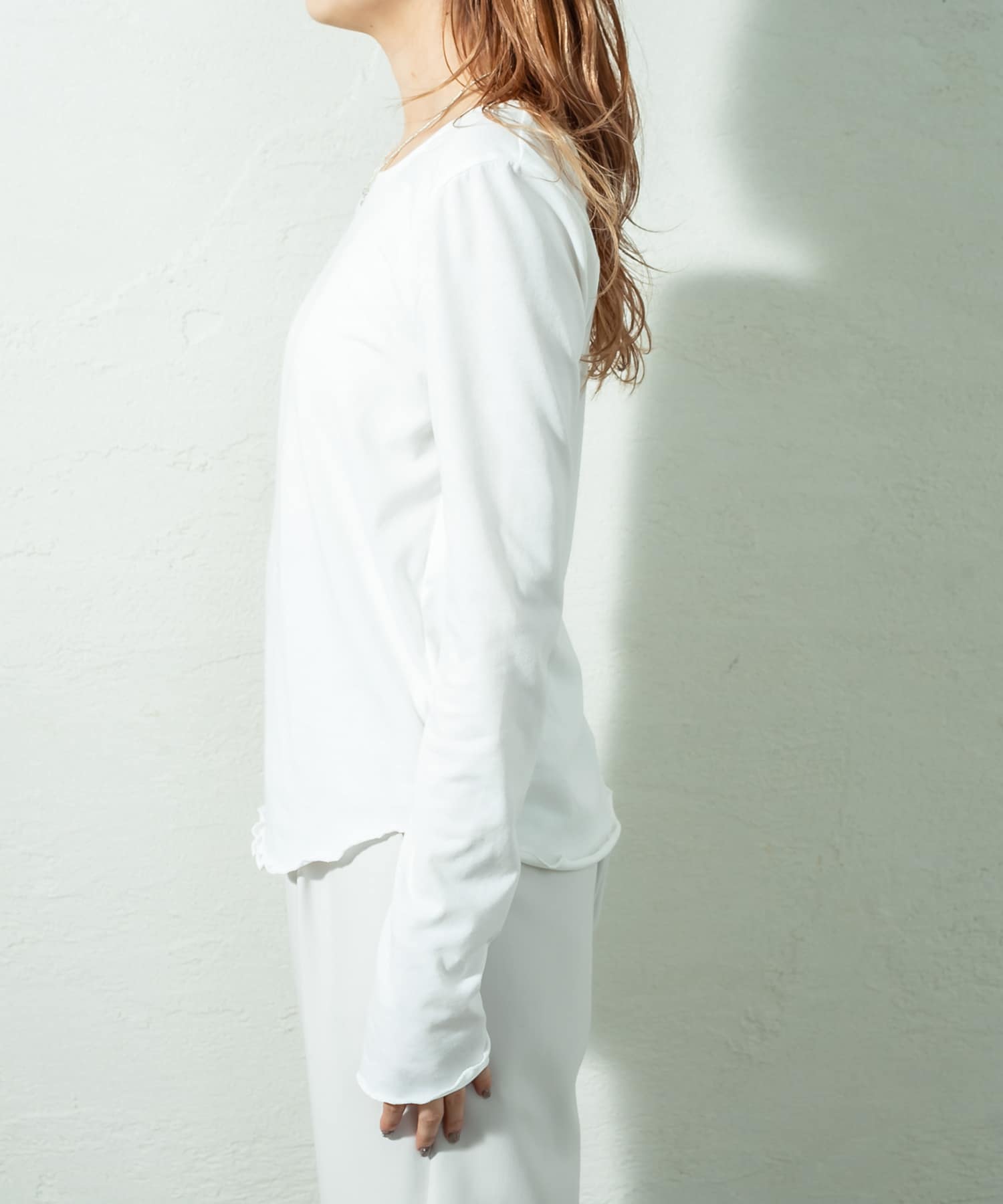 ・ラウンド裾でアウトスタイルでも合わせやすいのも嬉しいポイント。