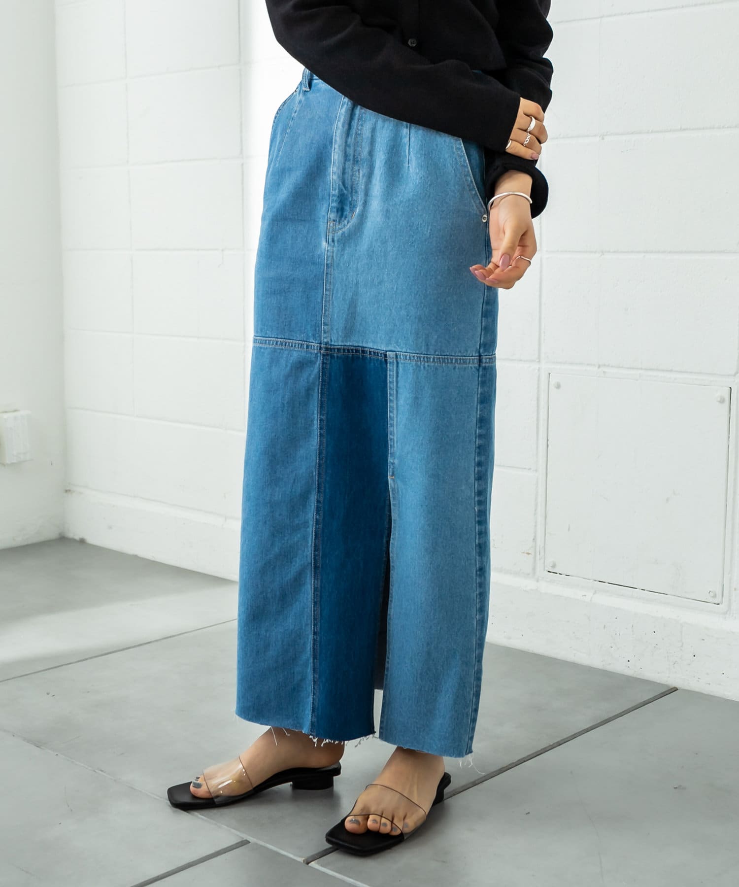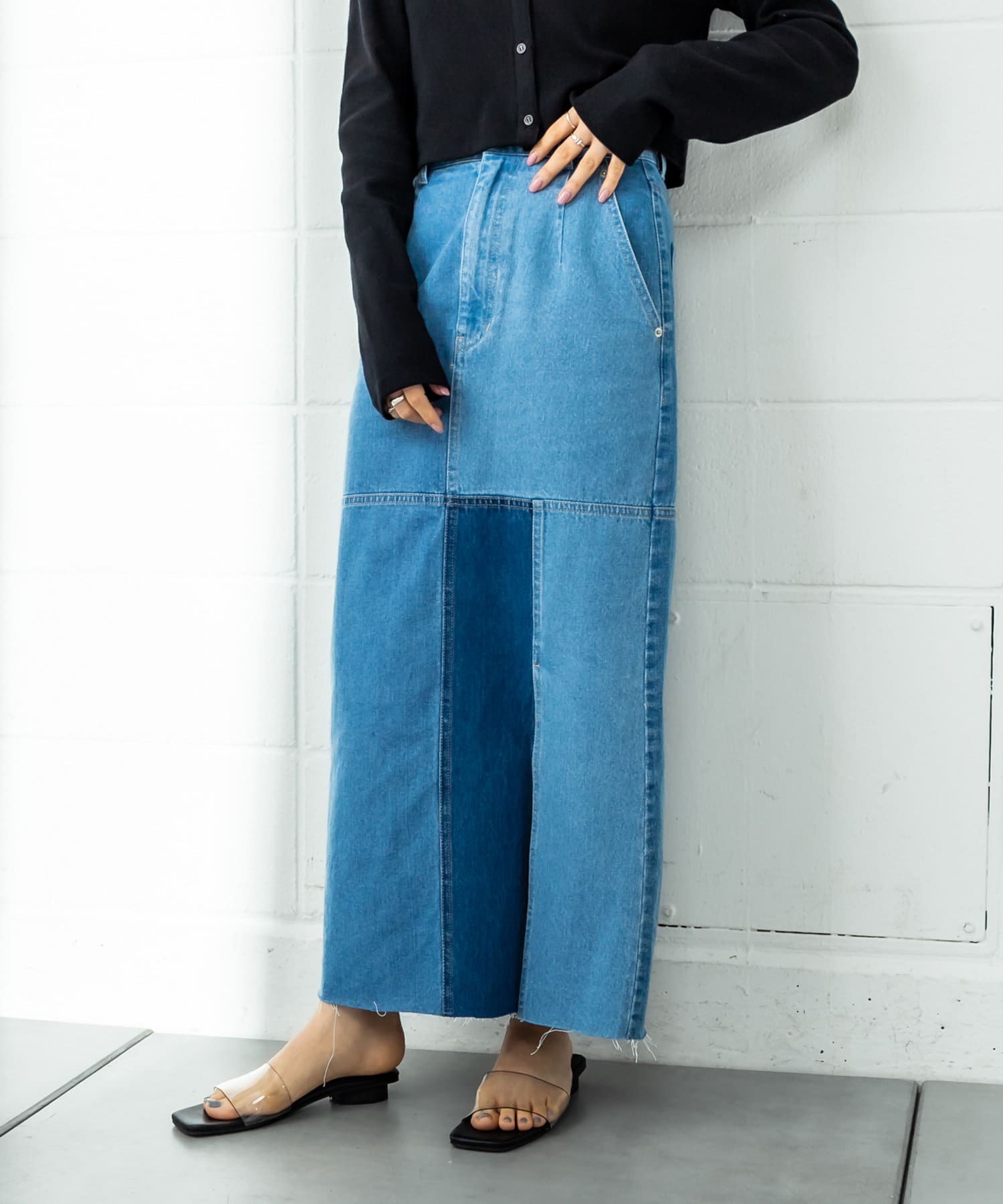• OUTLET(アウトレット) 【mystic】パッチワークデニムスカート