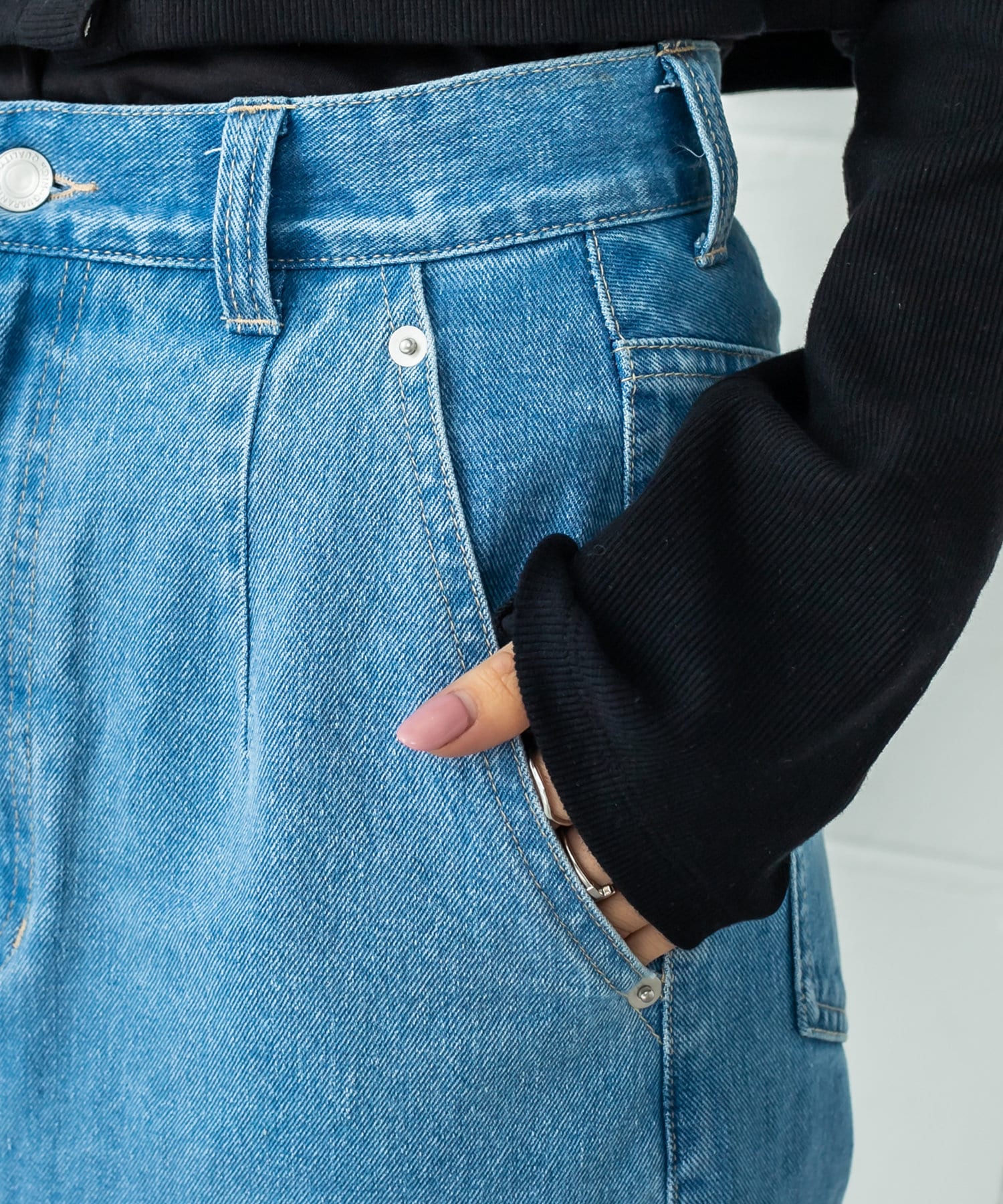 ・ハイウエストなのでトレンドのショートトップスもバランスよく着て頂けます。