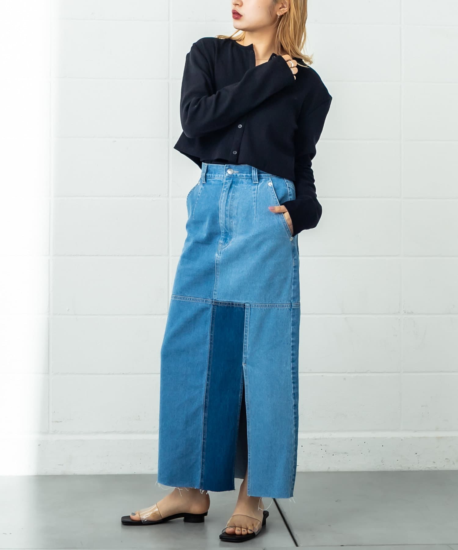 【mystic】パッチワークデニムスカート