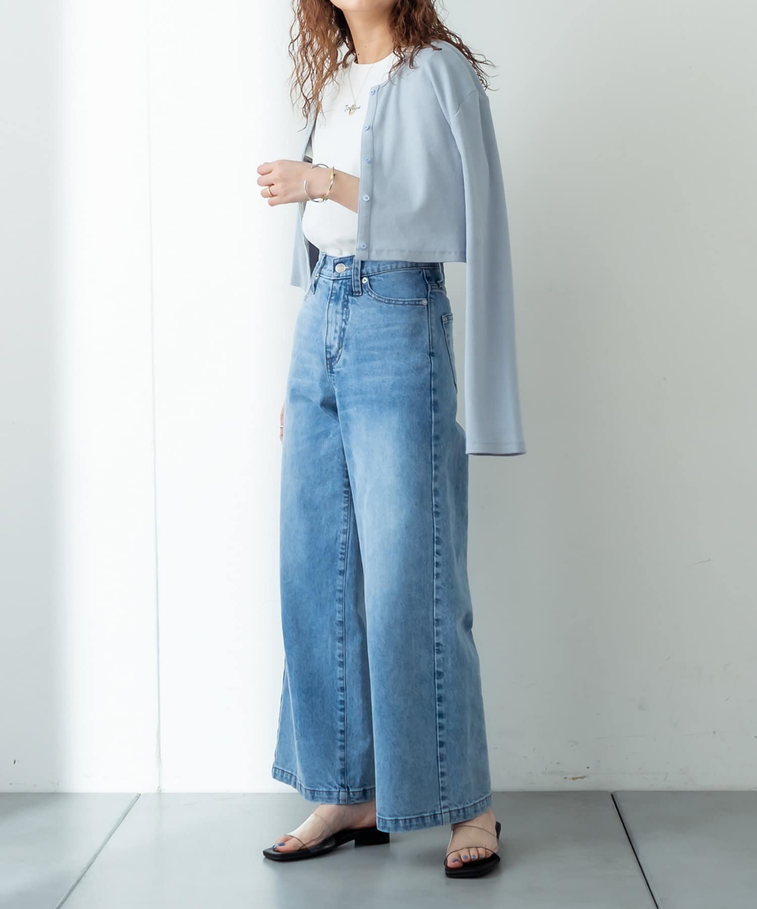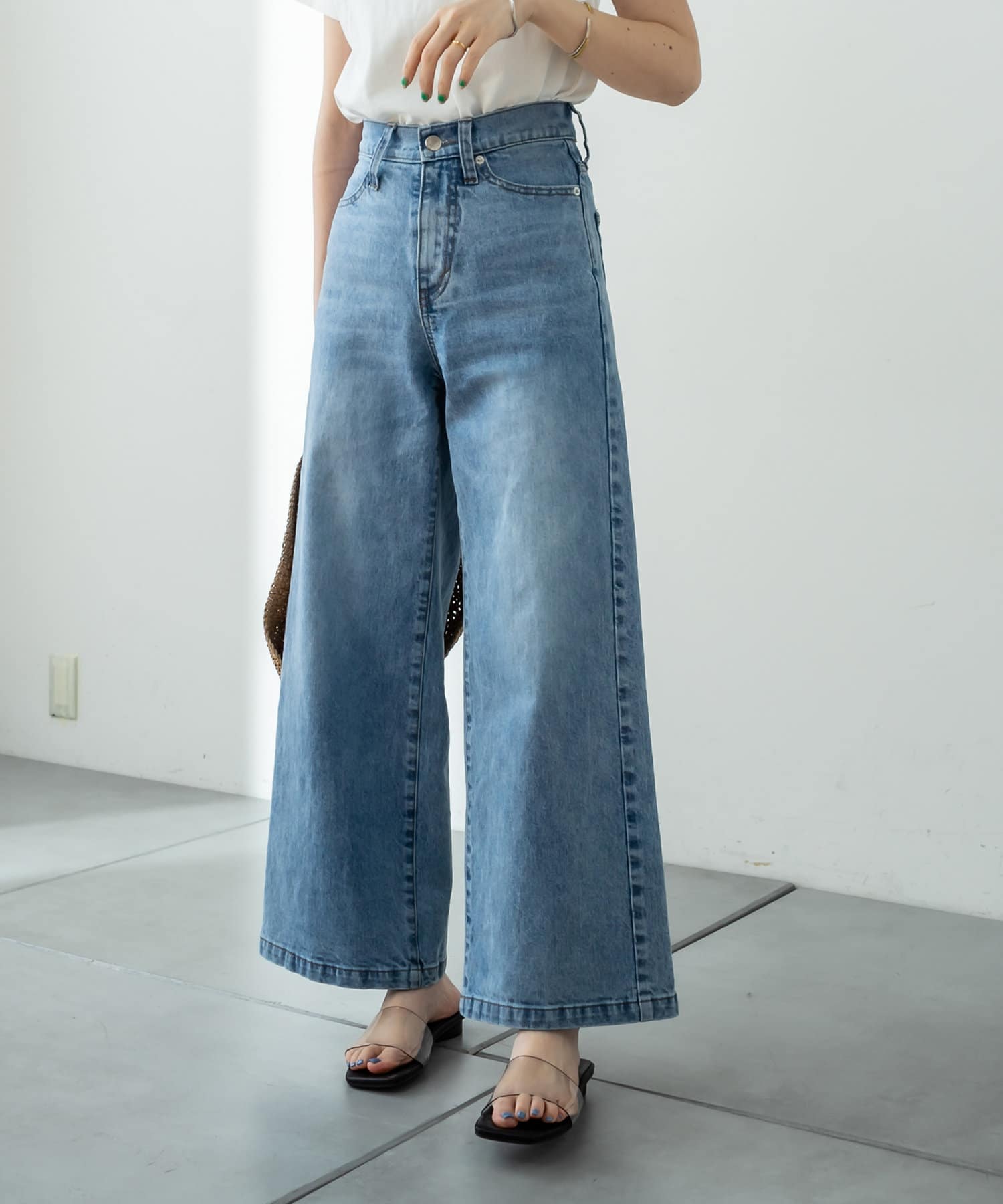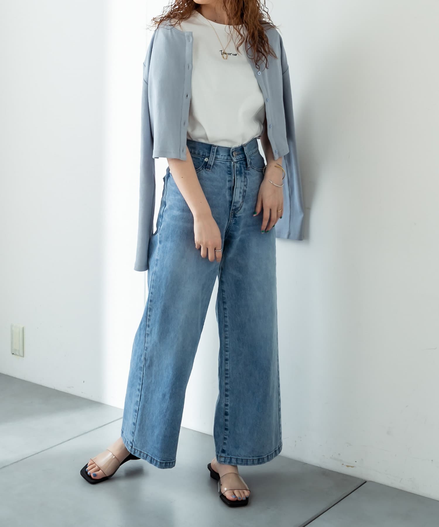 OUTLET(アウトレット) 【mystic】ハイウエストワイドデニム
