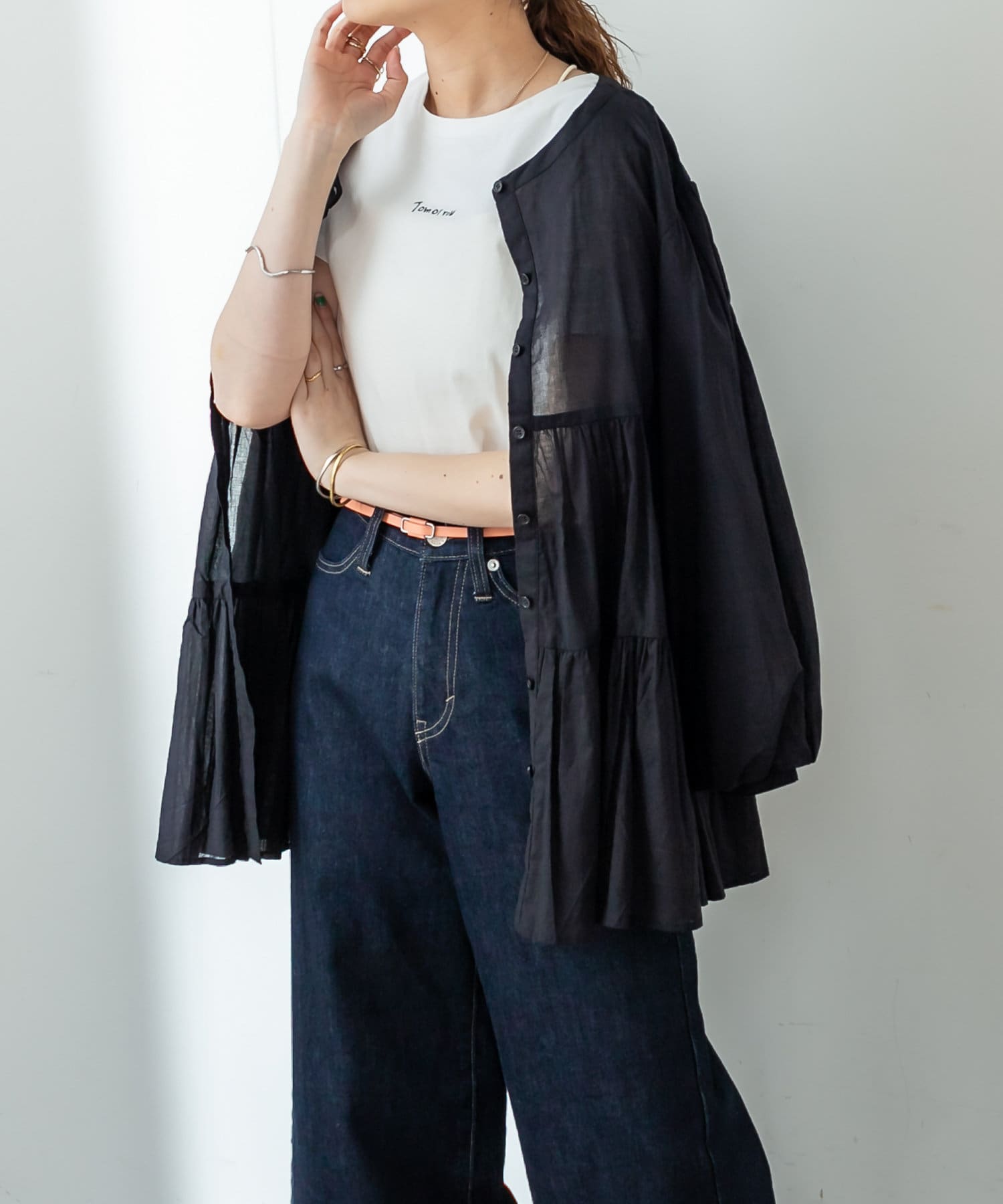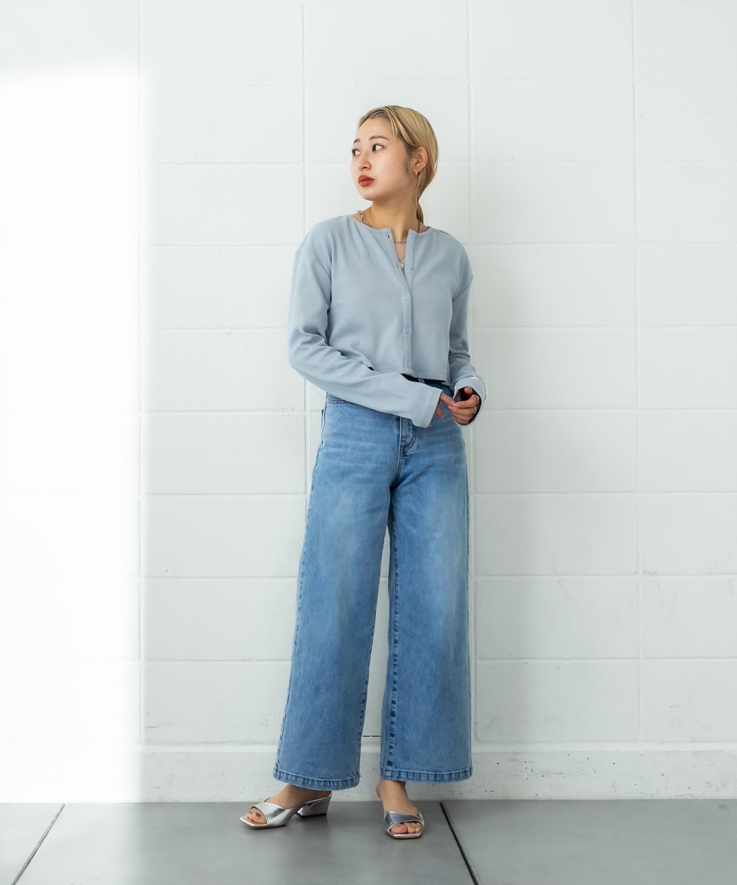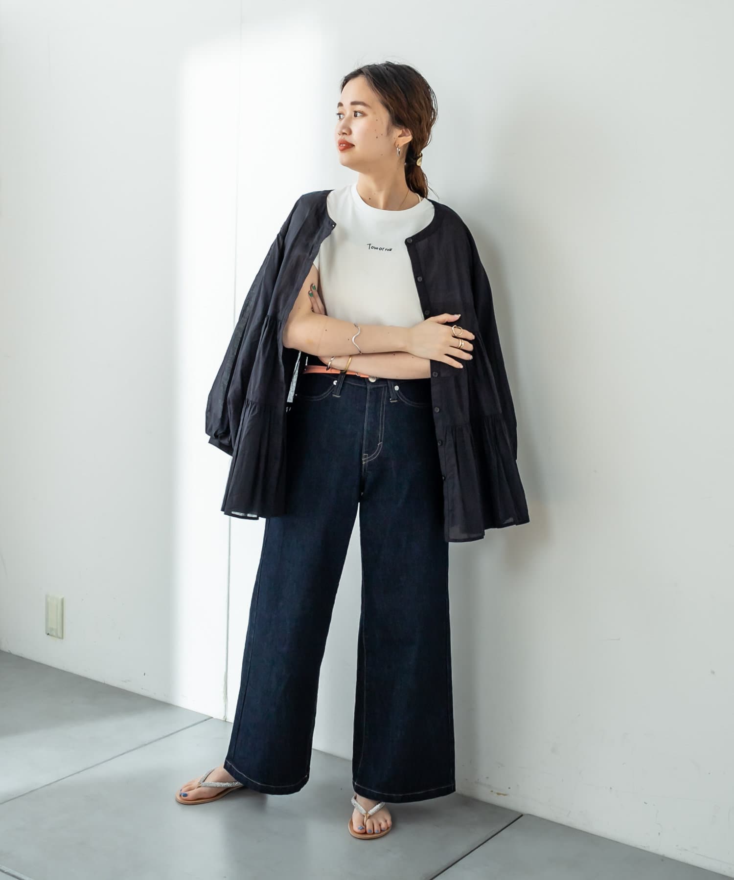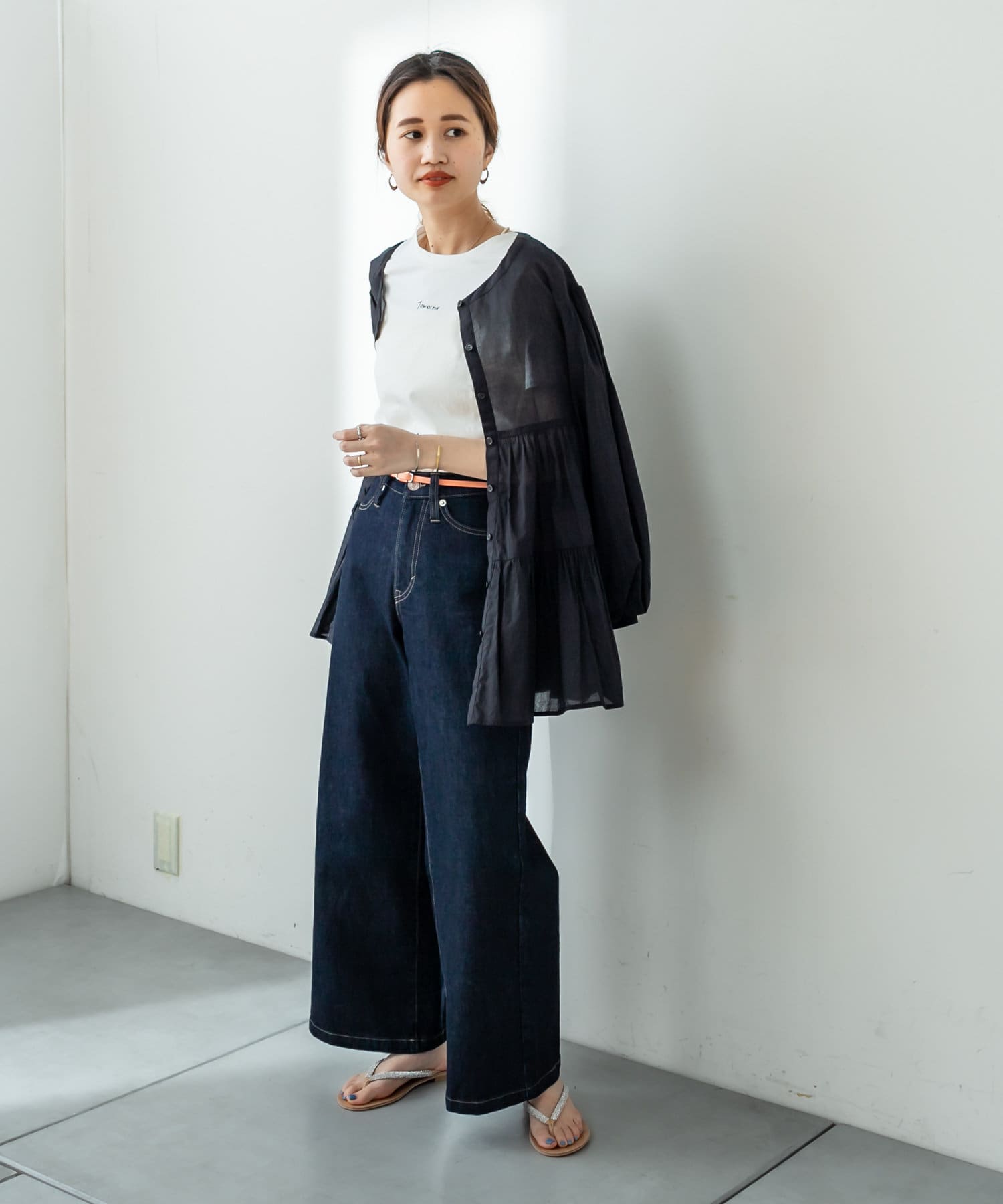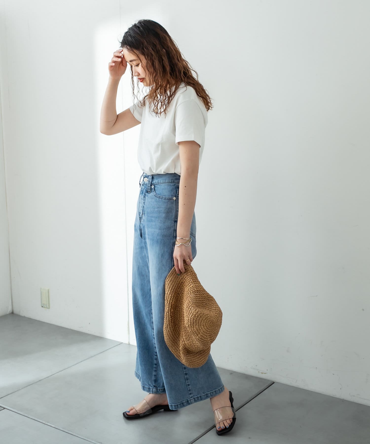 ・ショート丈のトップスを合わせたシンプルなスタイリングがオススメ。