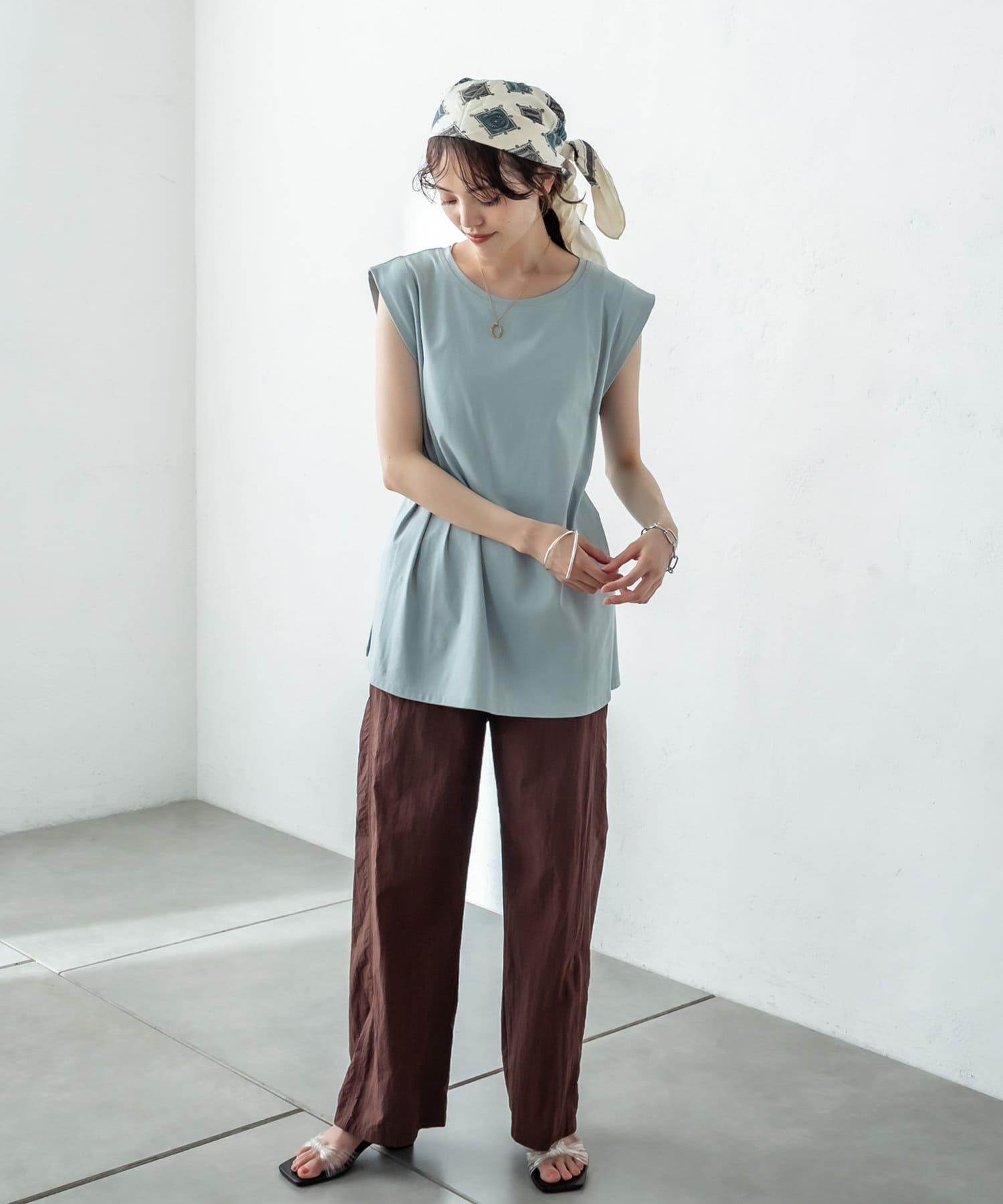 OUTLET(アウトレット) 【mystic】タックフレアノースリTシャツ