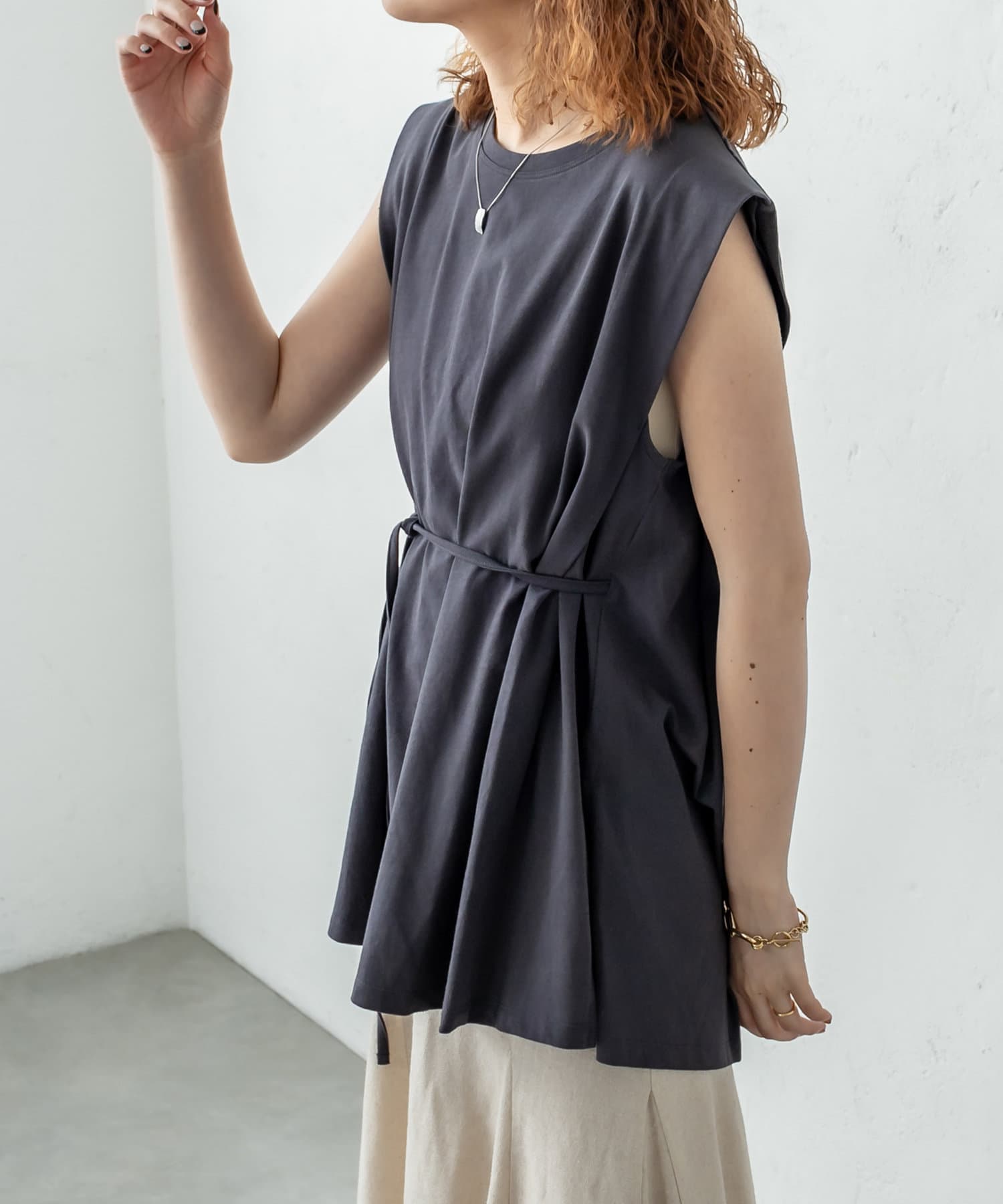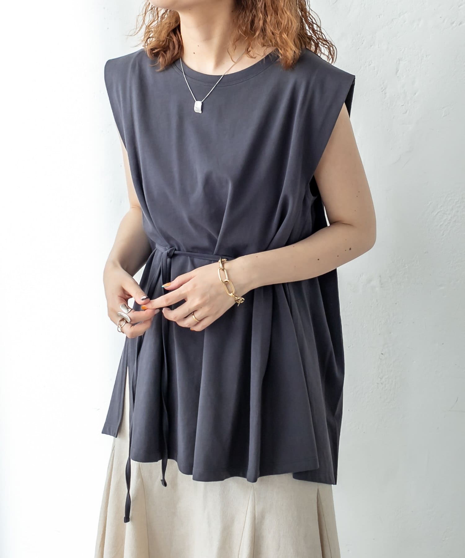 • OUTLET(アウトレット) 【mystic】タックフレアノースリTシャツ