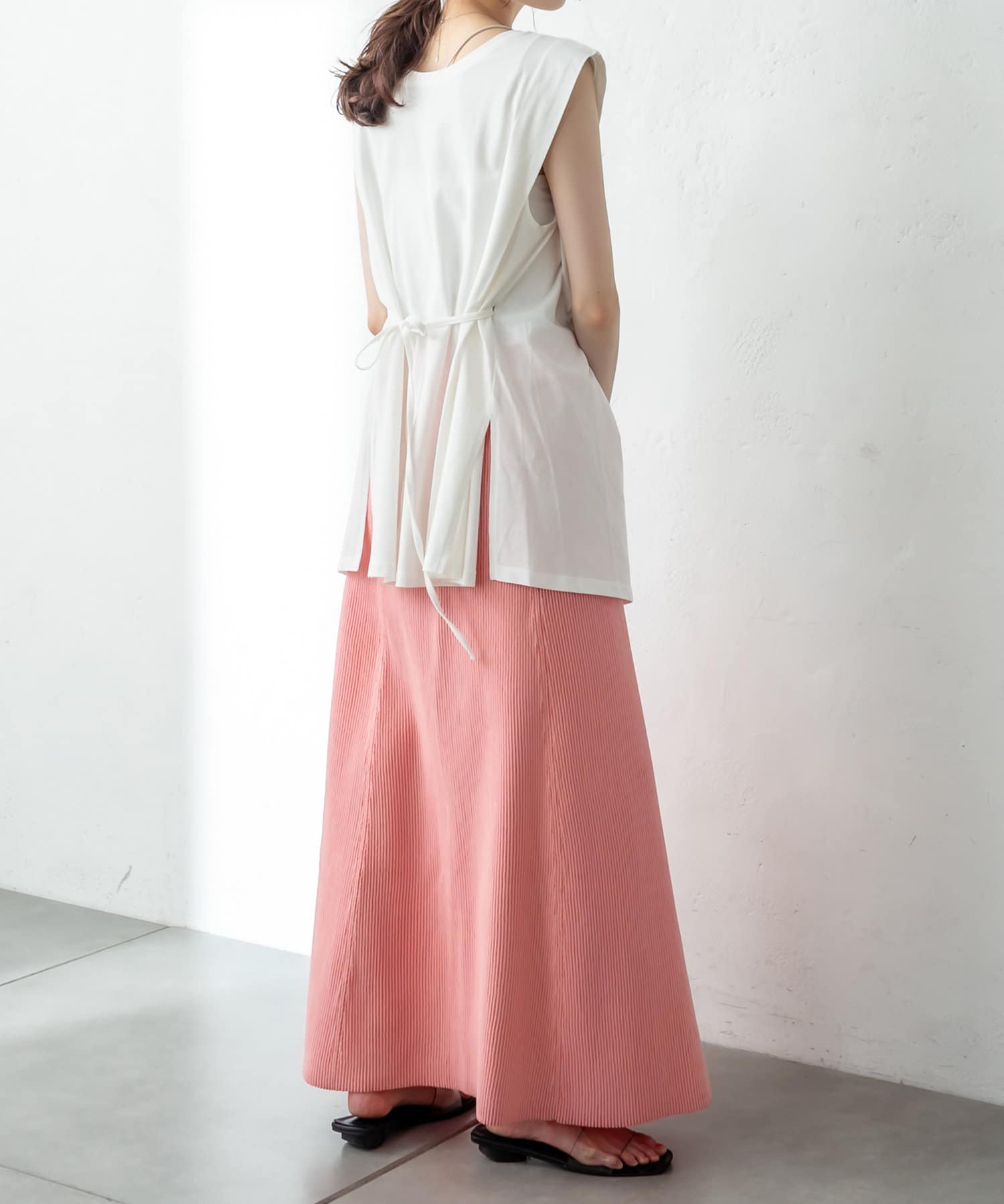TOP > OUTLET > レディース > トップス > Tシャツ/カットソー > 【mystic】タックフレアノースリTシャツ
