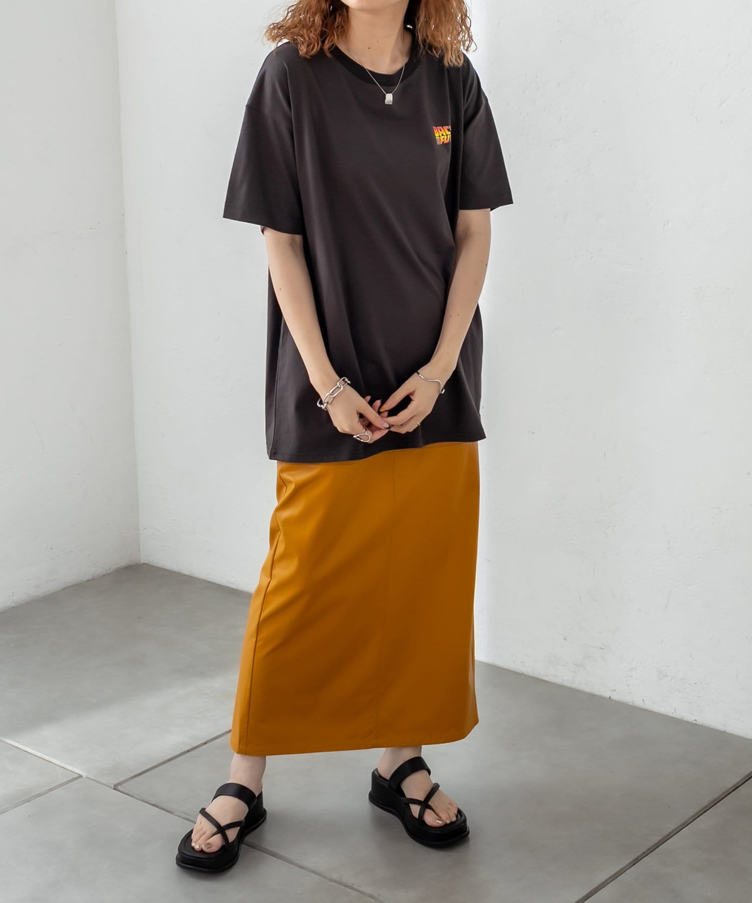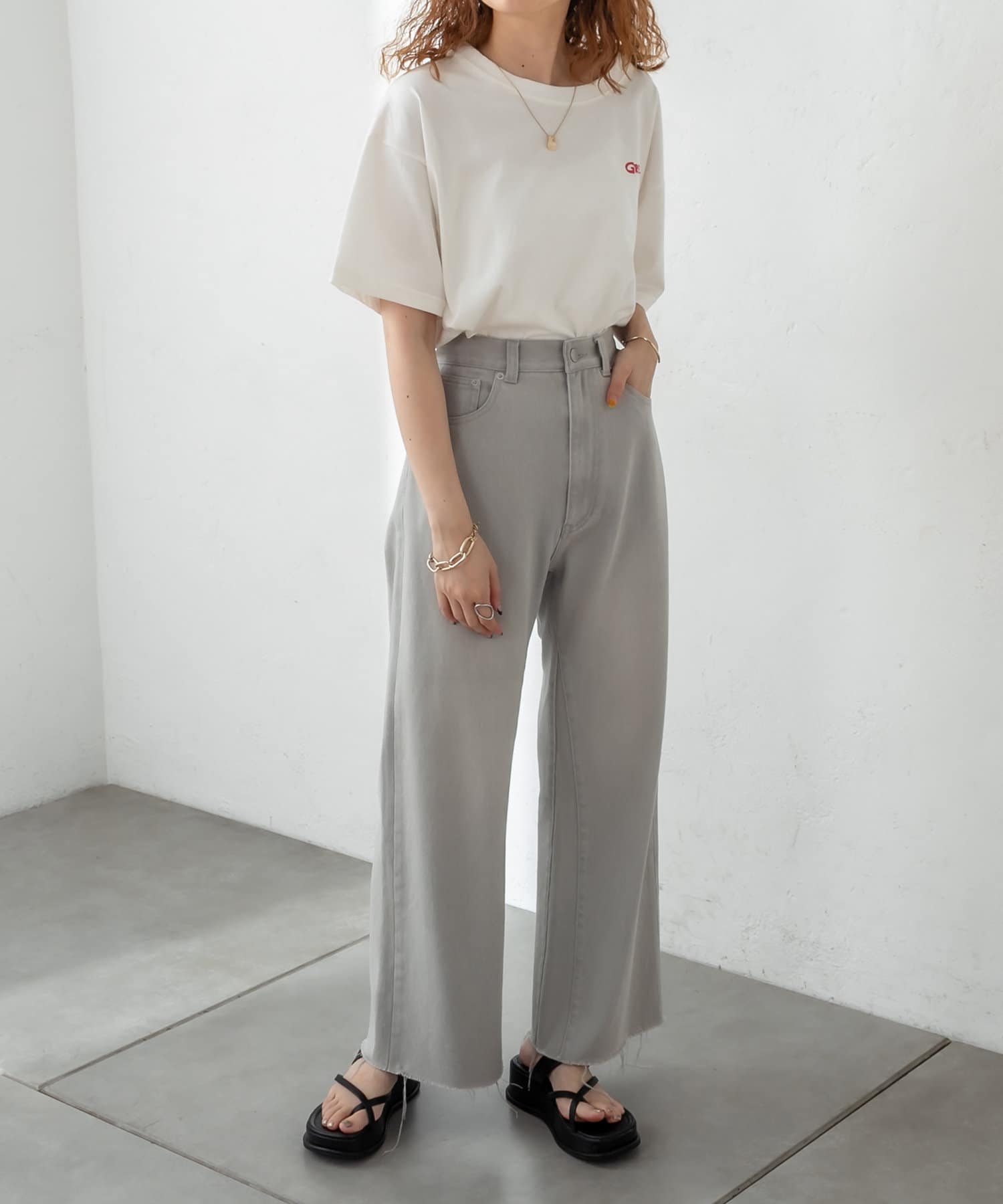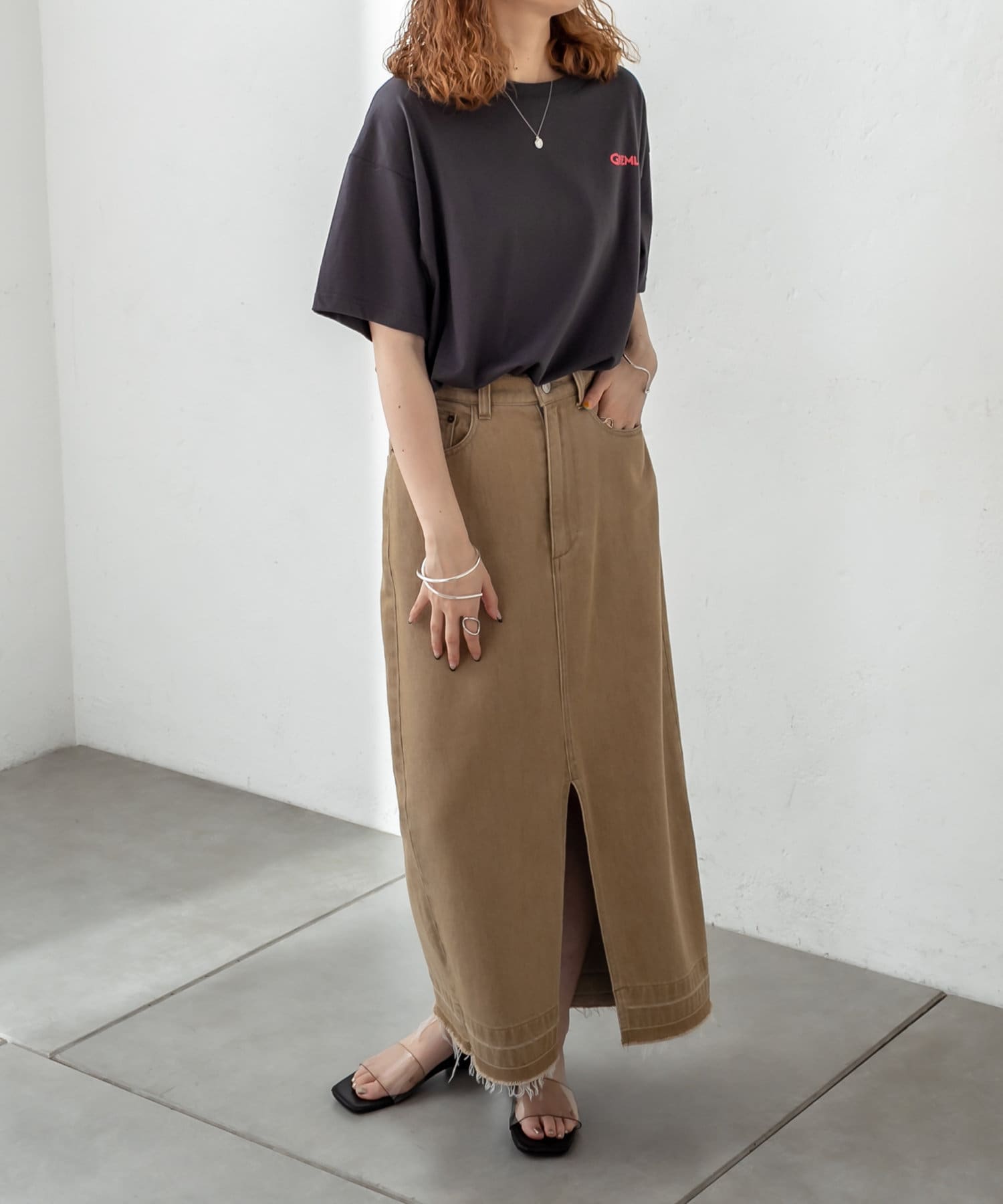・長めの丈感なので、アウトスタイルで合わせるとこなれたシルエットに。