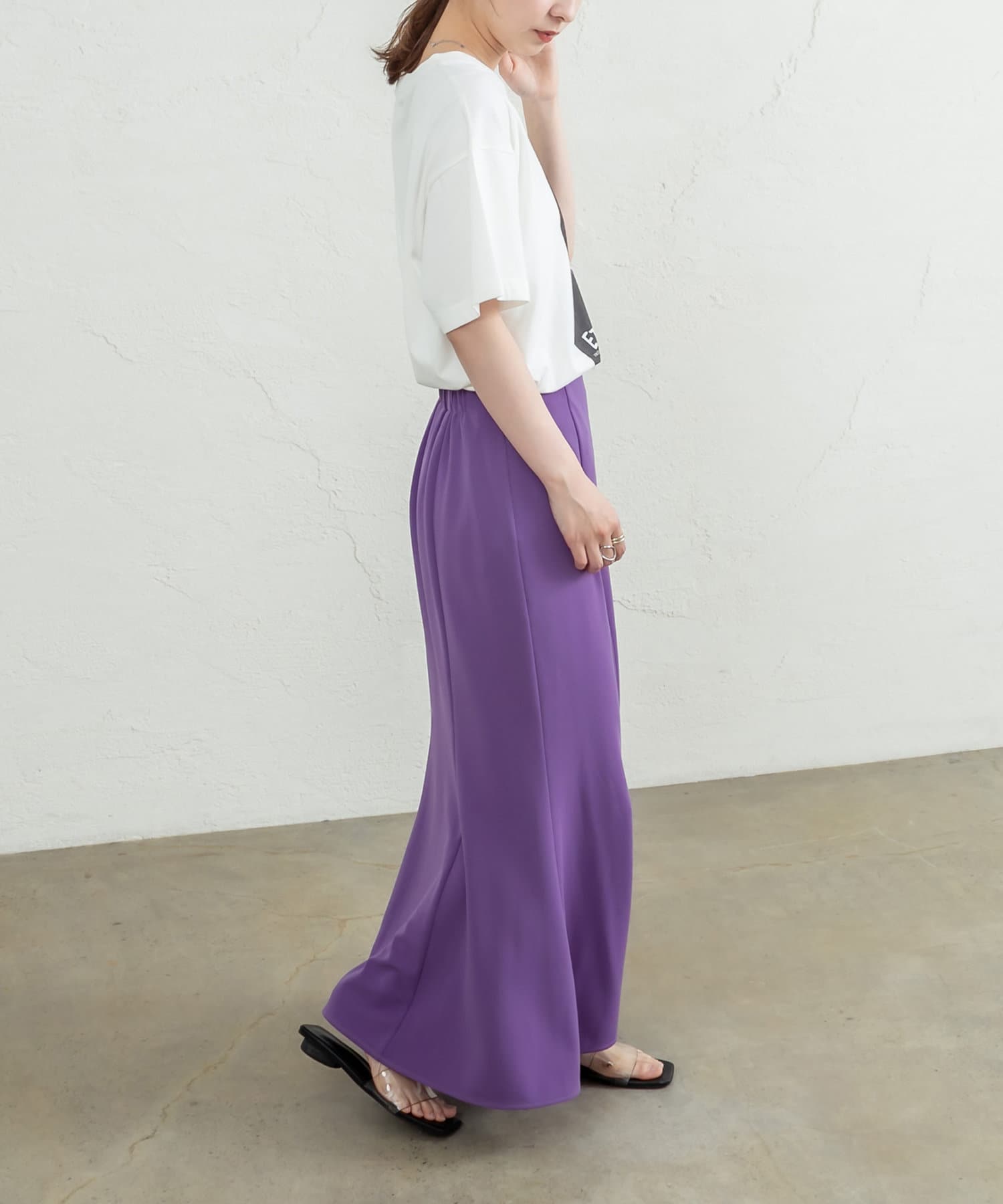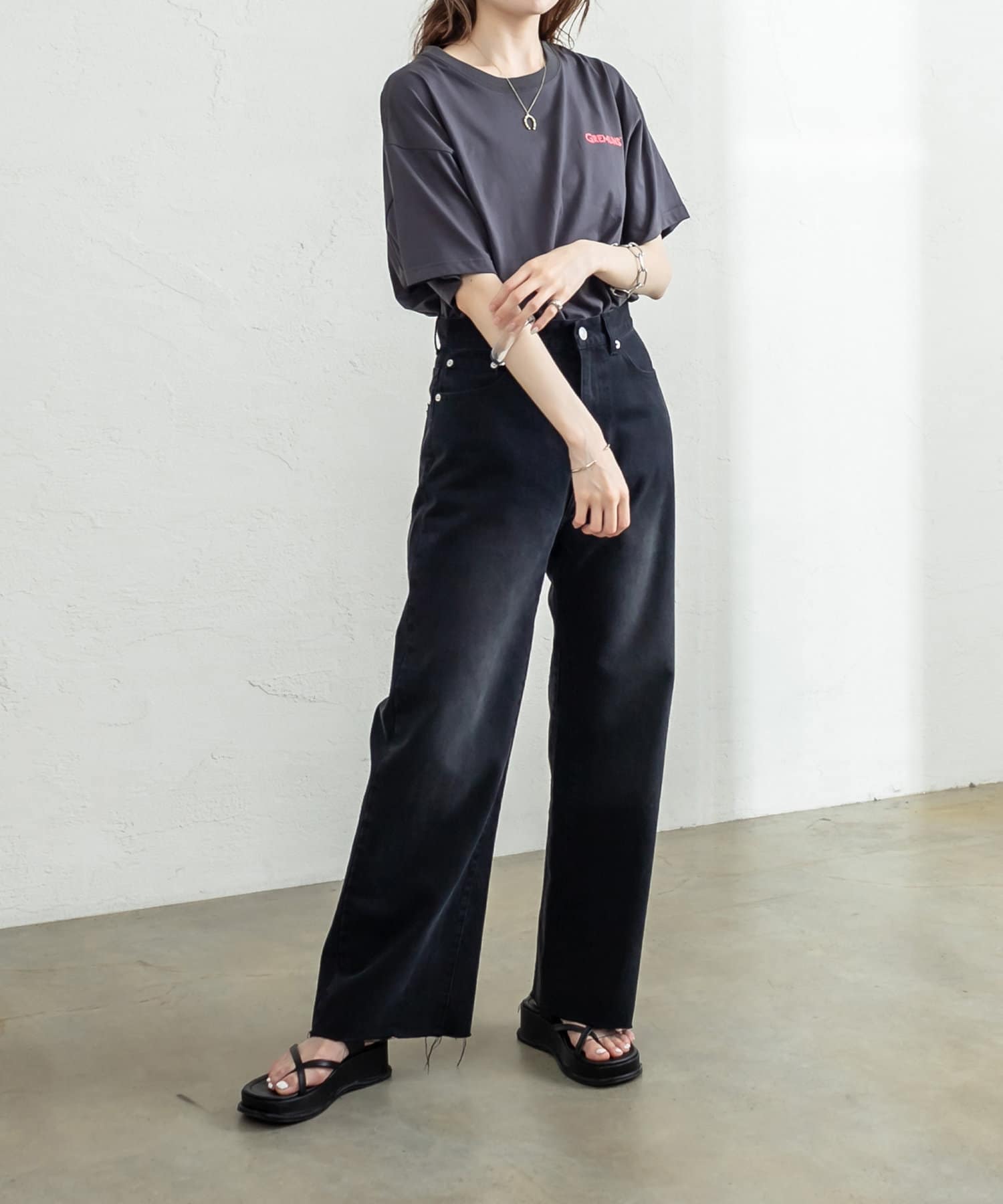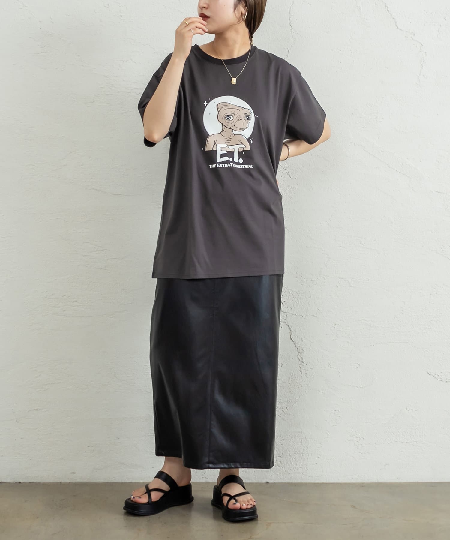 ・長めの丈感なので、アウトスタイルで合わせるとこなれたシルエットに。