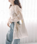 購入場所:パルクローゼット軽い荷物の時はリボンを肩にかけて、重たい時は取手の部分で持っています。ポーチが付いていたり、うちポケットも付いていて使いやすいです☺︎