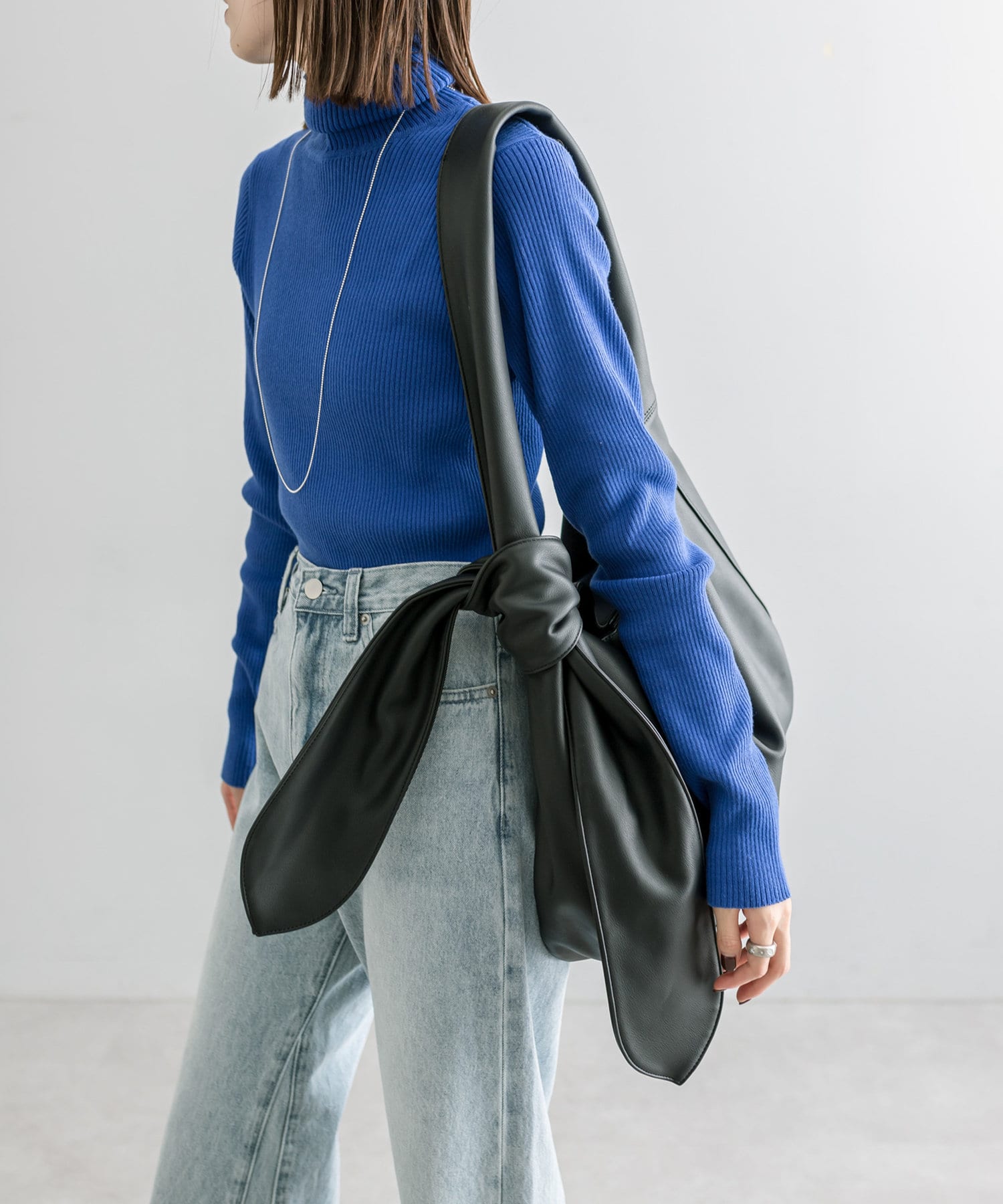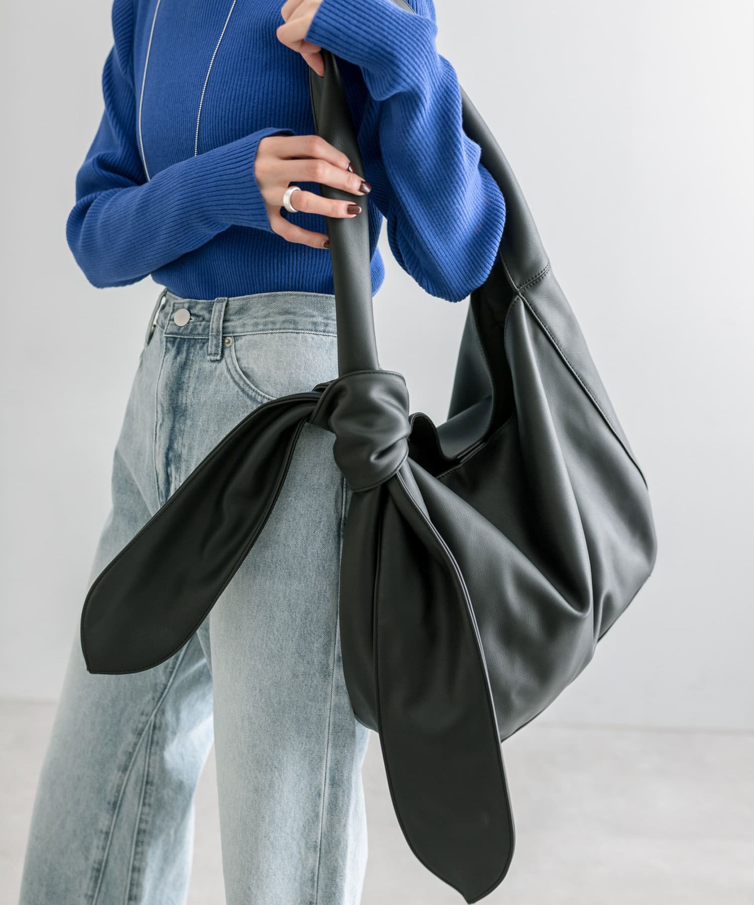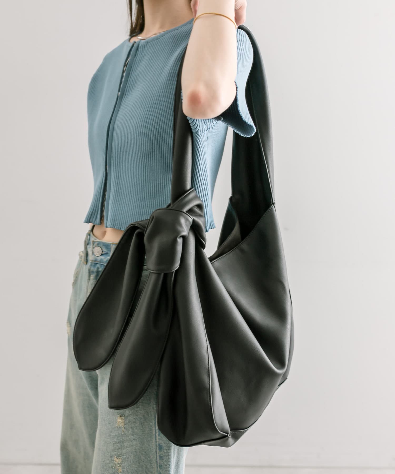 ・少し大きめの結び目がスタイリングのアクセントになるバッグ。