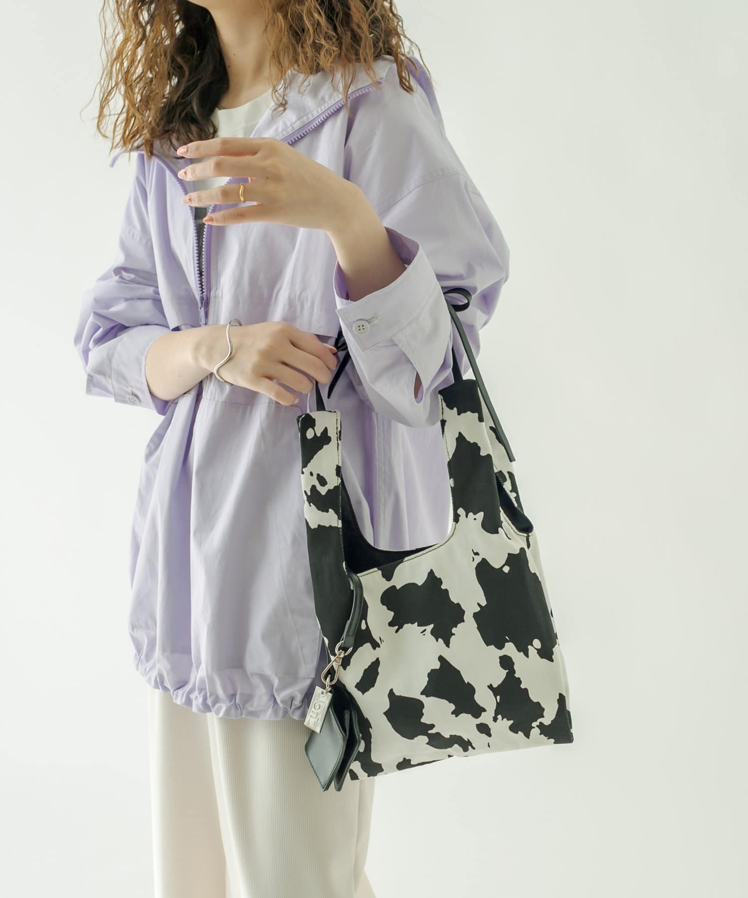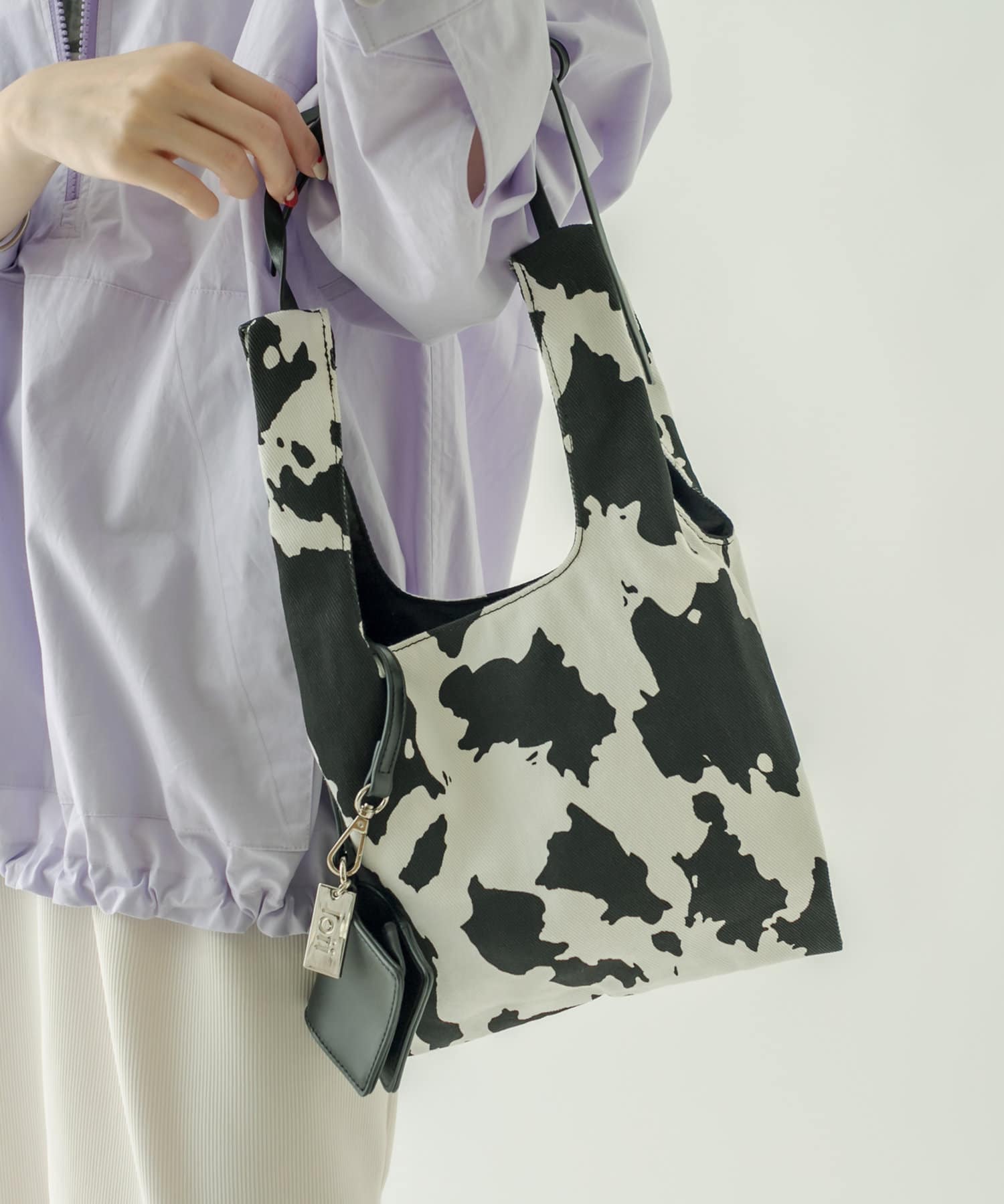 購入場所:店舗大きい方の黒を持っていたので普段選ばない柄にしました。小さいサイズなのでモノトーンのお洋服のポイントとなります。